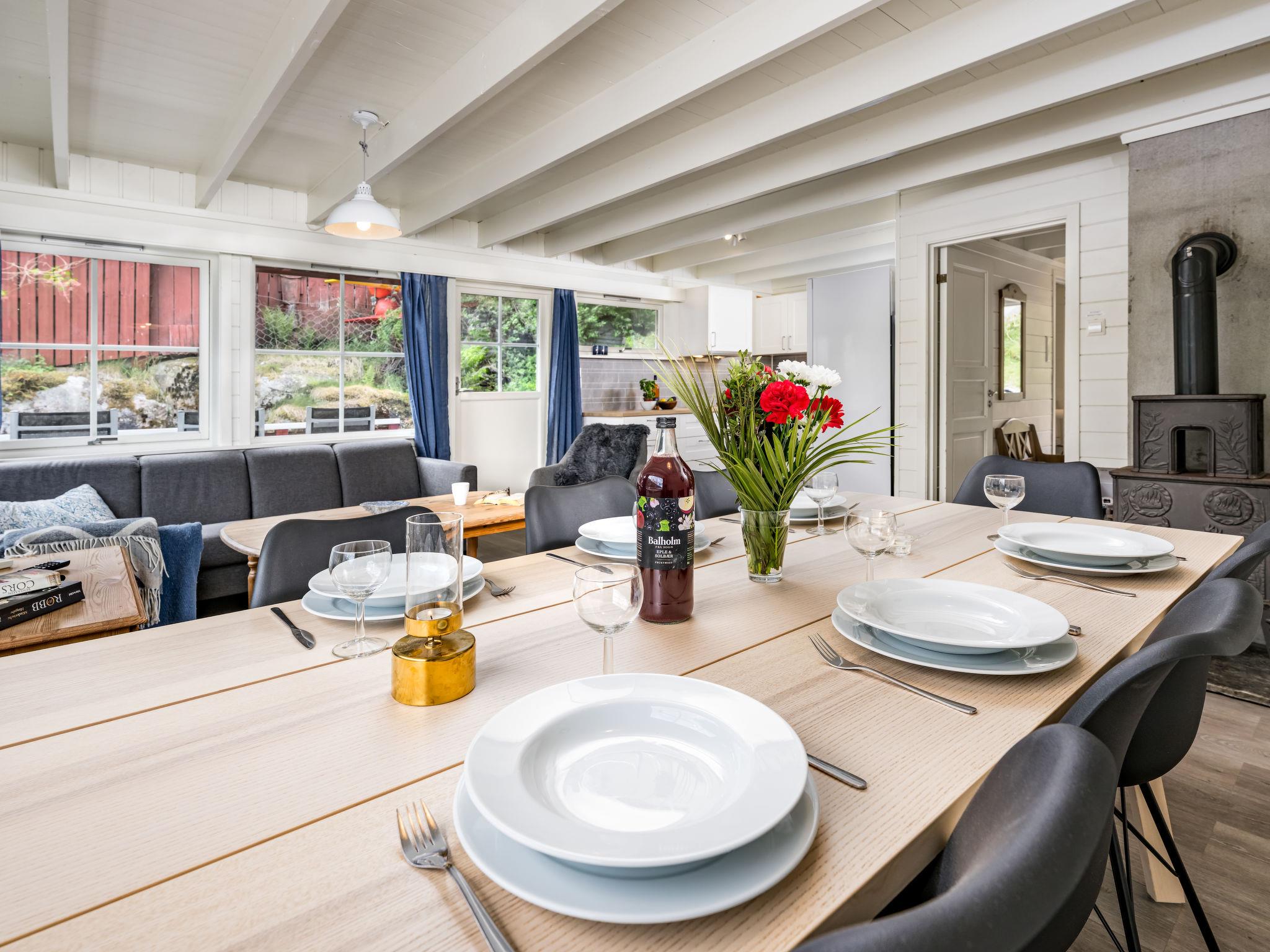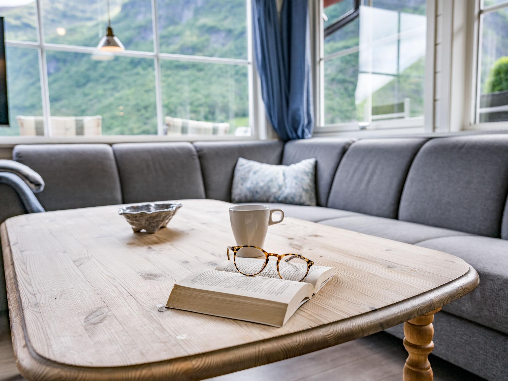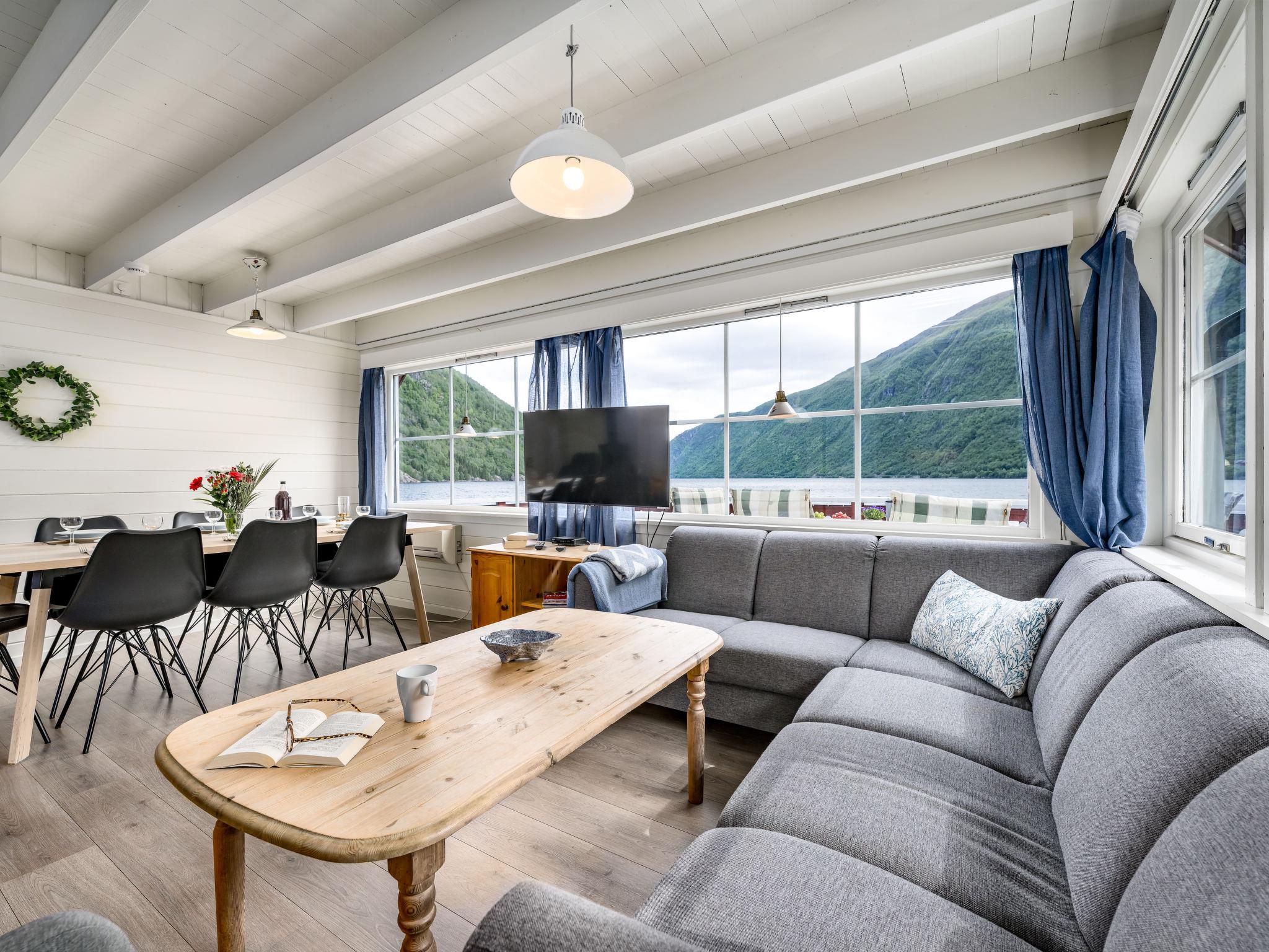 "Balder", 5-room house 110 m2 on 3 levels. Cosy furnishings: living/dining room with Scandinavian wood stove, dining table and TV. Open kitchen (4 hot plates, oven, dishwasher, microwave, freezer, electric coffee machine). Shower/WC. On the lower ground floor: 1 room with 1 double bed. 1 room with 1 double bed. Shower/WC, Sauna. Upper floor: 1 room with 1 bed (75 cm), 1 double bed. 1 room with 2 beds (75 cm). Electric heating, underfloor heating. Beautiful view of the sea, the mountains and fjord. Facilities: washing machine. Internet (WiFi, extra). Please note: maximum 1 pet/ dog allowed. Smoke alarm, fire extinguisher. No internal connecting door between the floors. Freezer approx. 300 l. TV via WIFI. Bed layout is flexible. There are more sleeping options available than the maximum number of people allowed which may, however, not be exceeded. 924531169