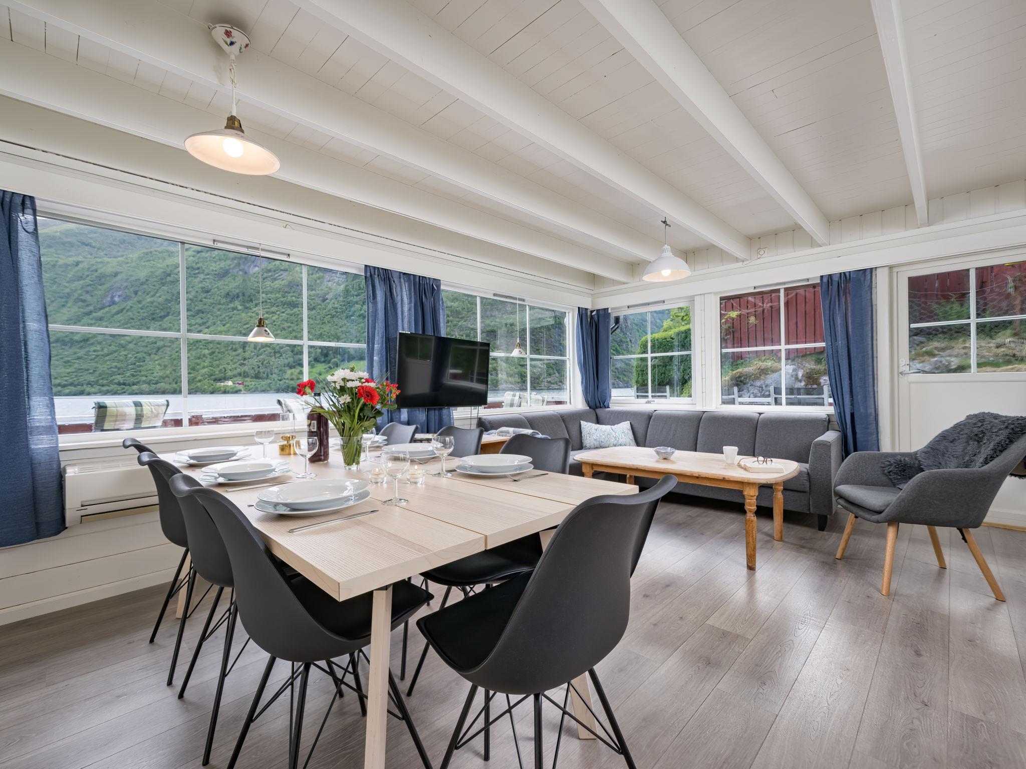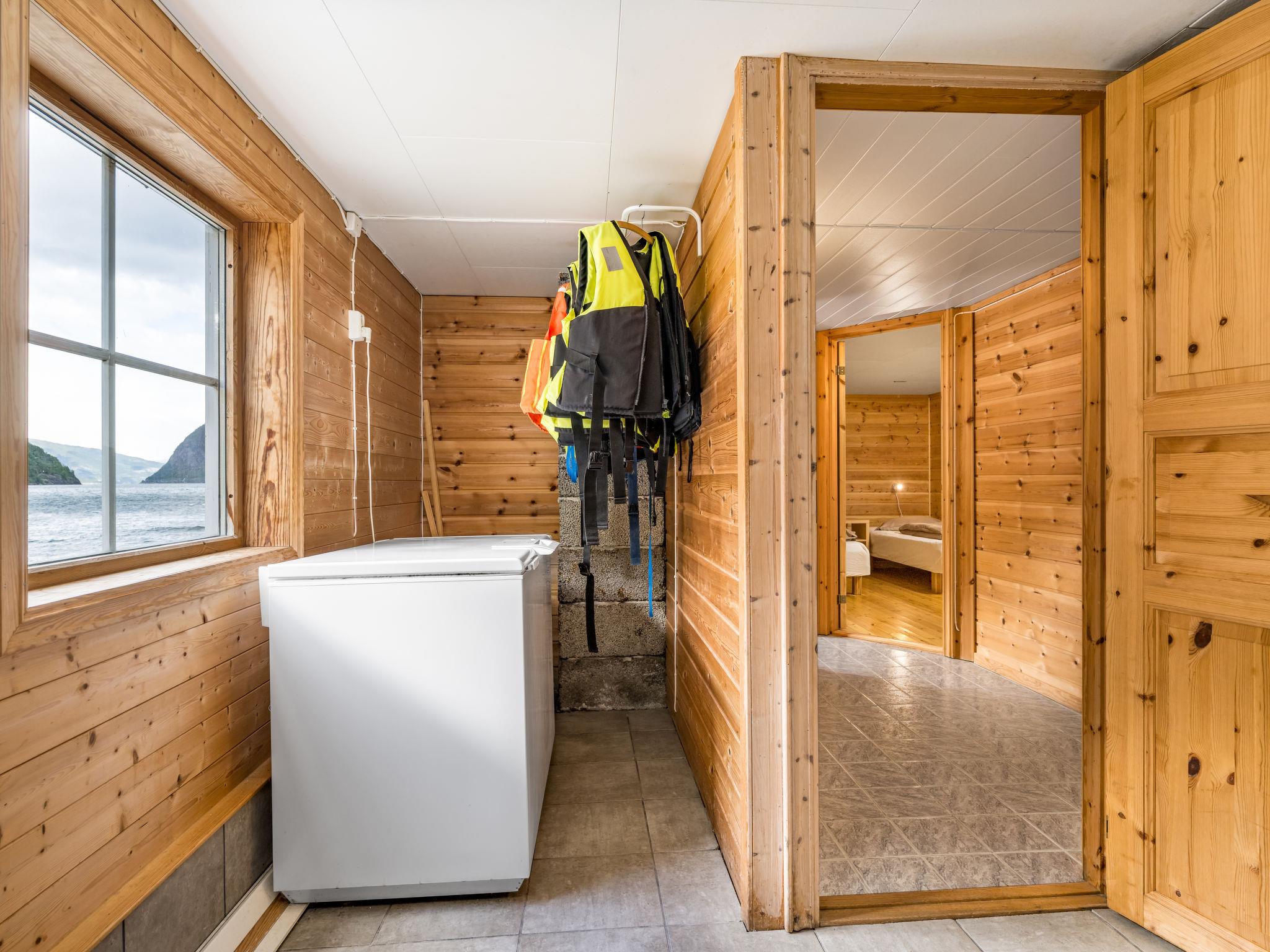 Certified fishing house "Balder". 8 km from the centre of Framfjord, 76 km from the centre of Sogndal, 96 km from the centre of Voss, 5 m from the fijord. Fish-processing table. Private: natural state property. Terrace, garden furniture, barbecue. Motor boat (on order). 50 m footpath to the house. Parking at the house at 50 m. E-charging station. Shop 8 km, supermarket 27 km, bus stop 80 m, ferry "Bergen" 195 km. Fishing possibilities 5 m.