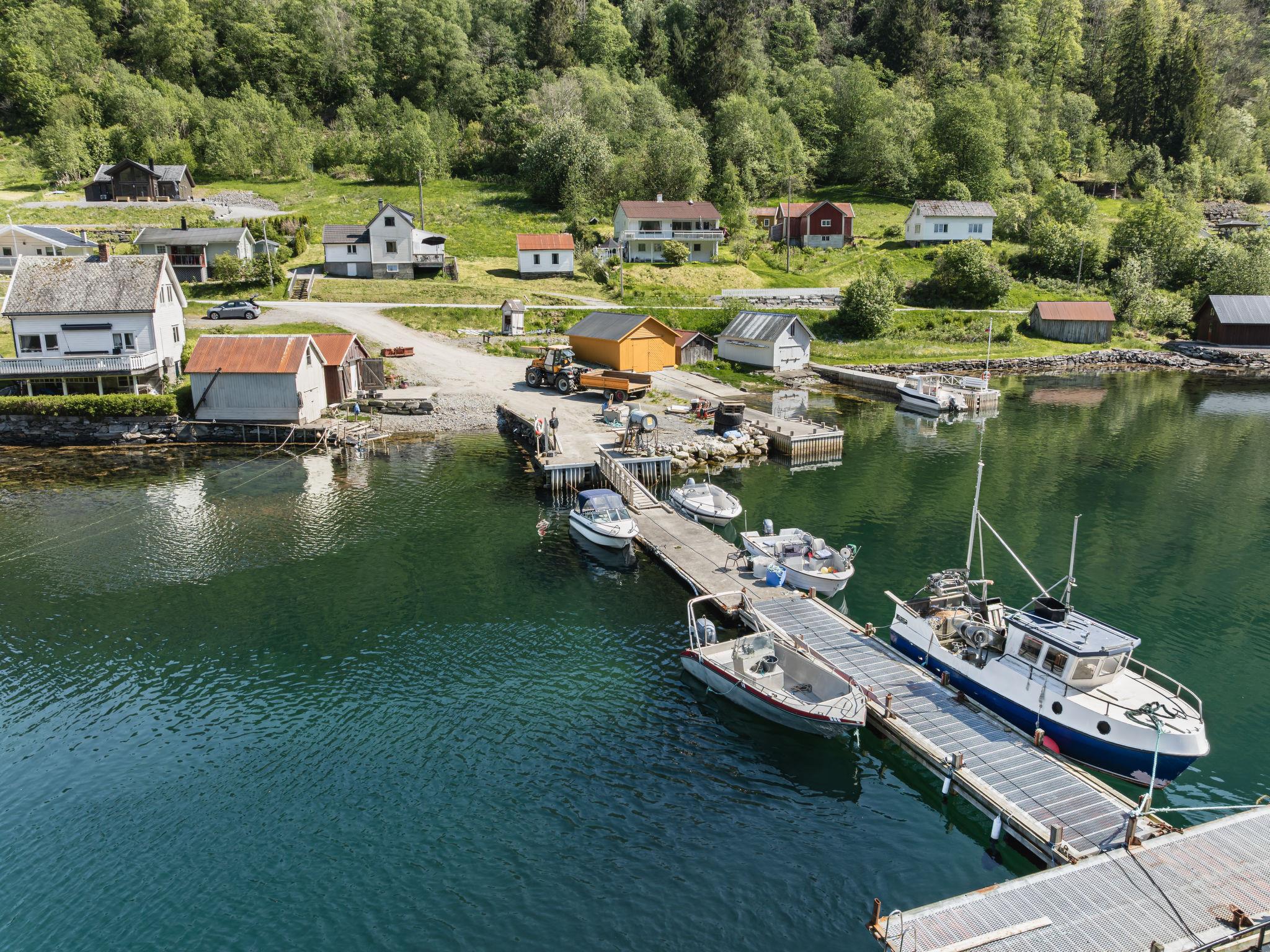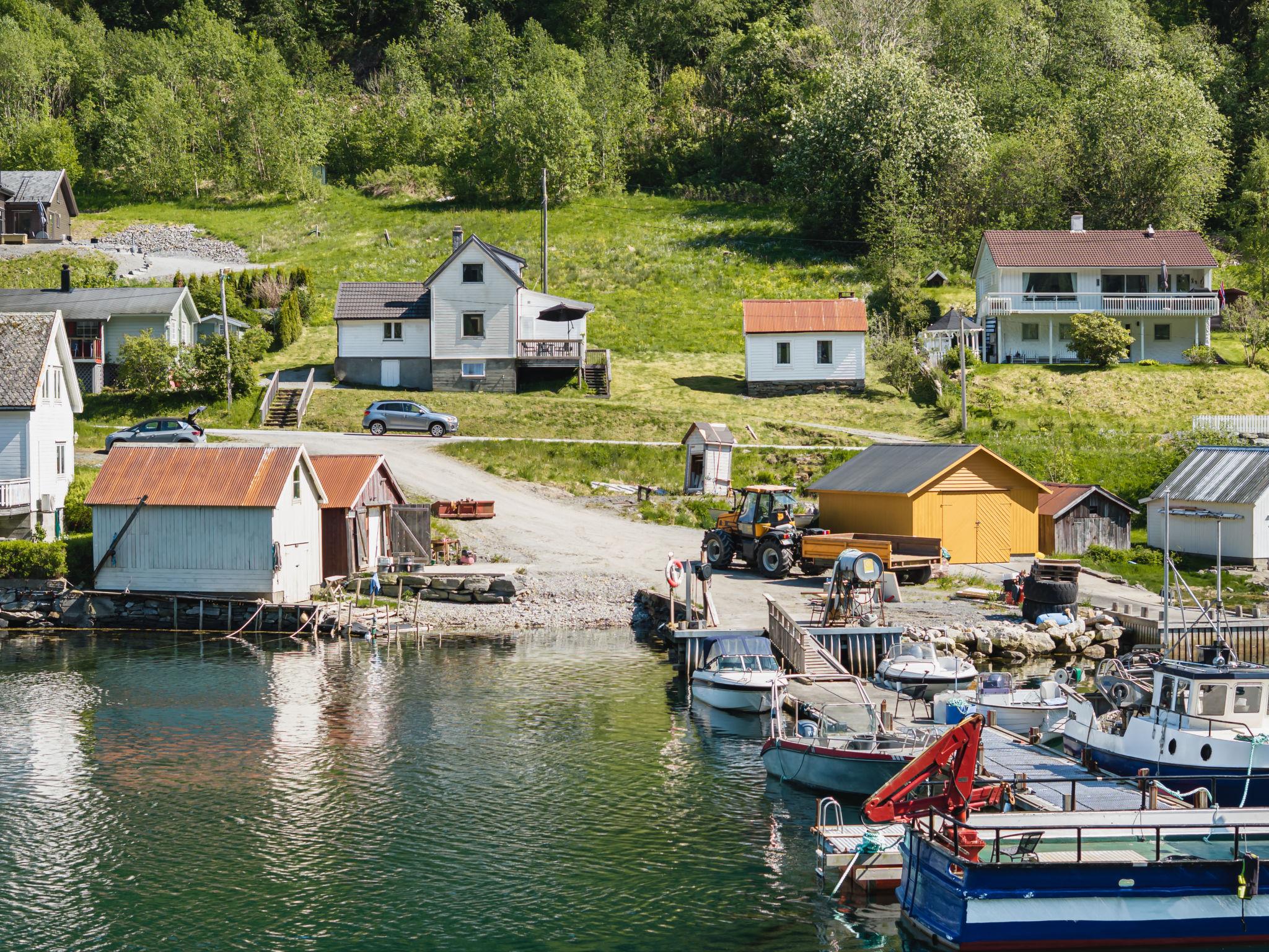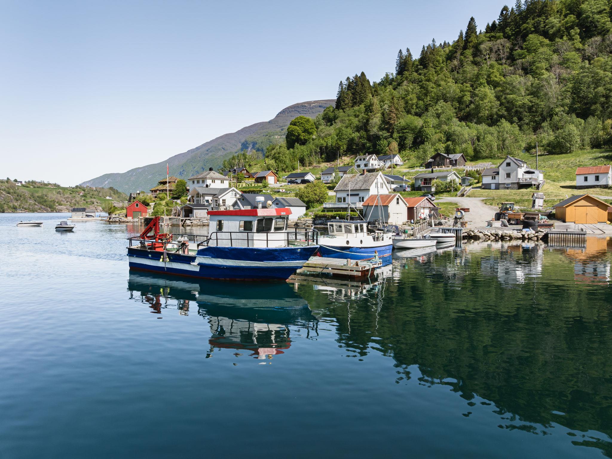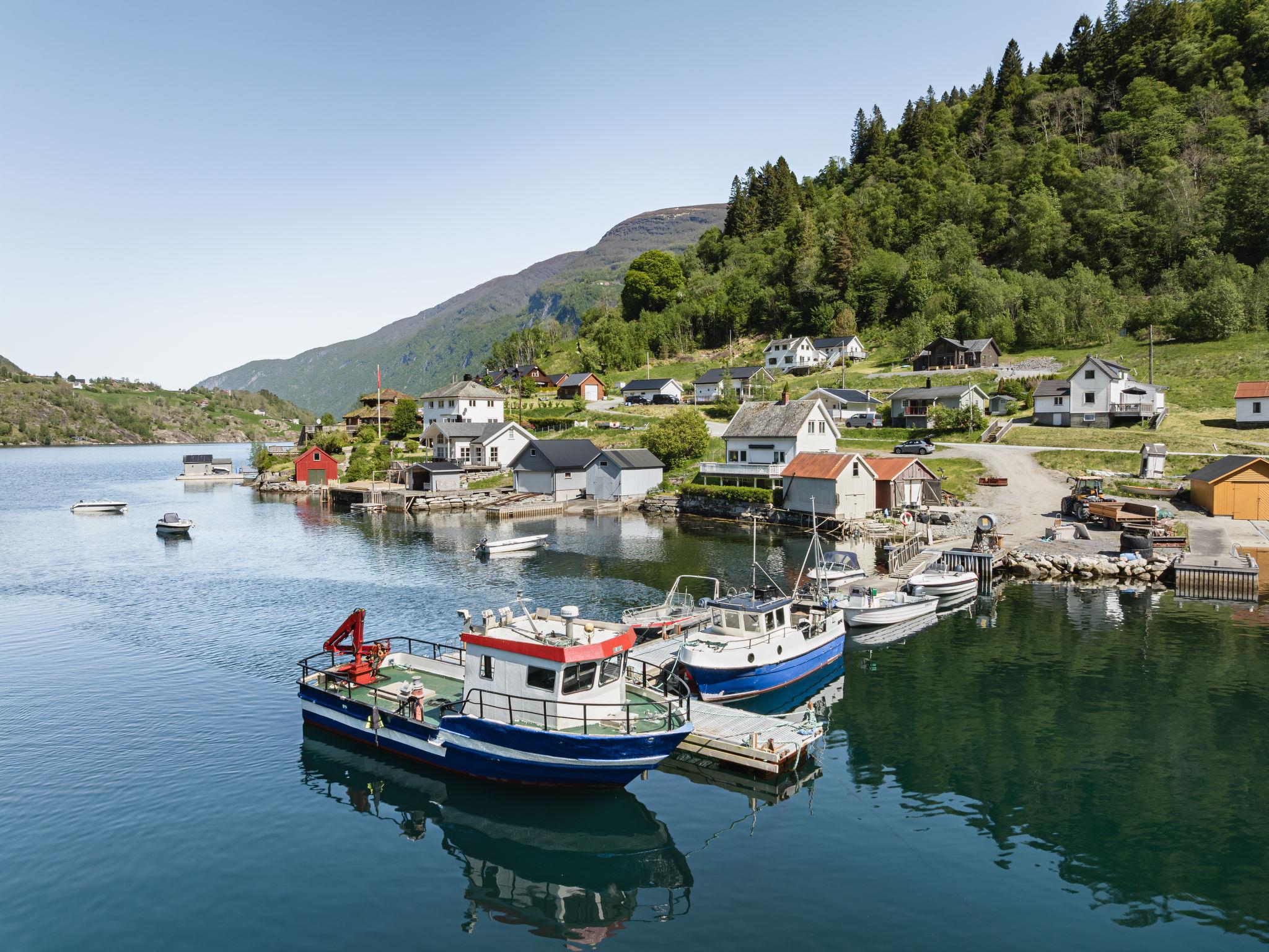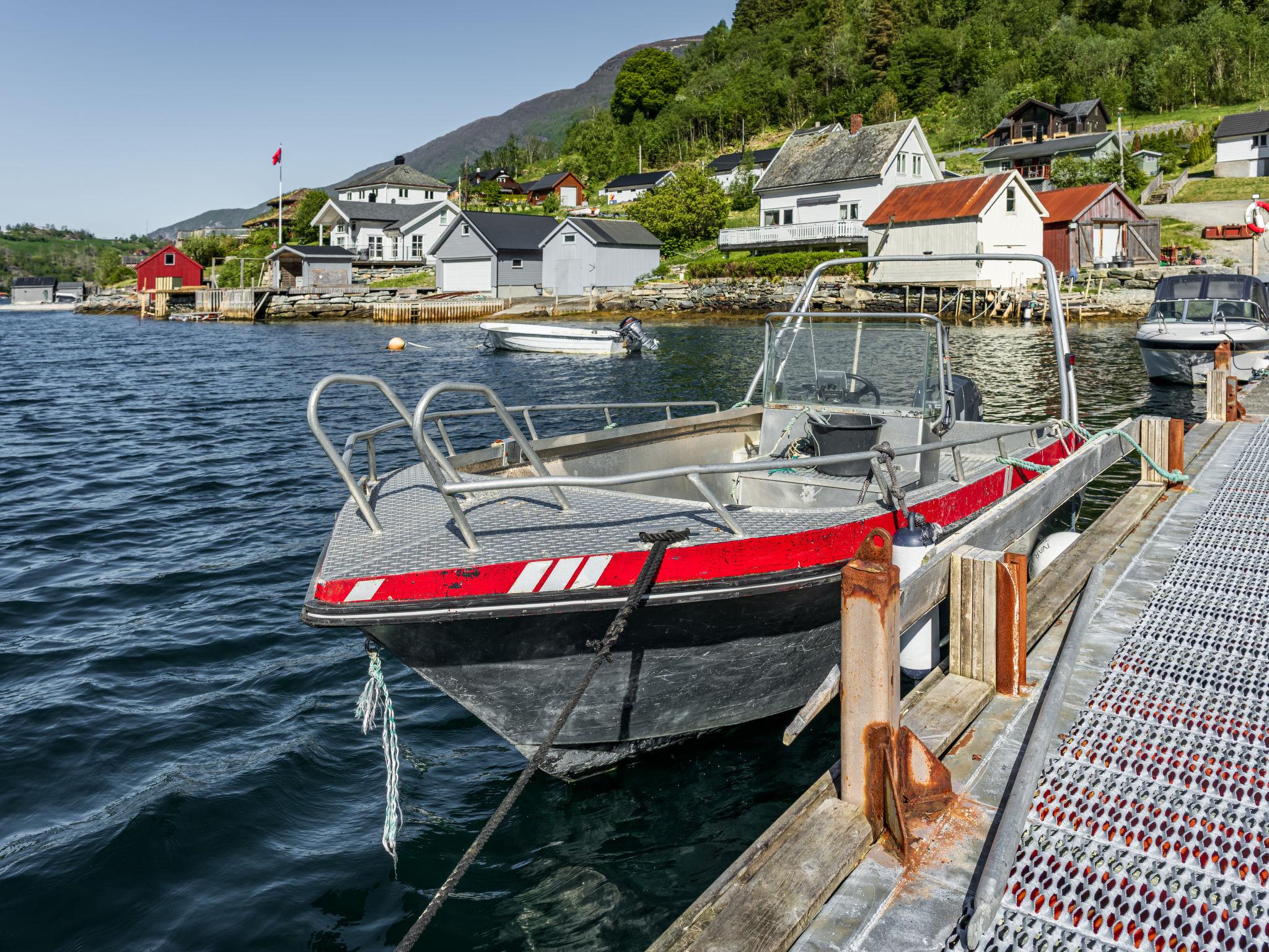 Certified fishing house "Indresfjord". 3 km from the centre of Framfjord, 71 km from the centre of Sogndal, 91 km from the centre of Voss, 50 m from the fijord. Private: property with meadow. Terrace, garden furniture, barbecue, bathing jetty, fish-processing table. Motor boat (on order). 30 m long bumpy motor access. Parking on the premises. Shop 3 km, supermarket 22 km, bus stop 50 m, railway station "Voss" 91 km, ferry "Bergen" 190 km. Fishing possibilities 50 m. Table for fish gutting with running water available, fish smiking oven on request.