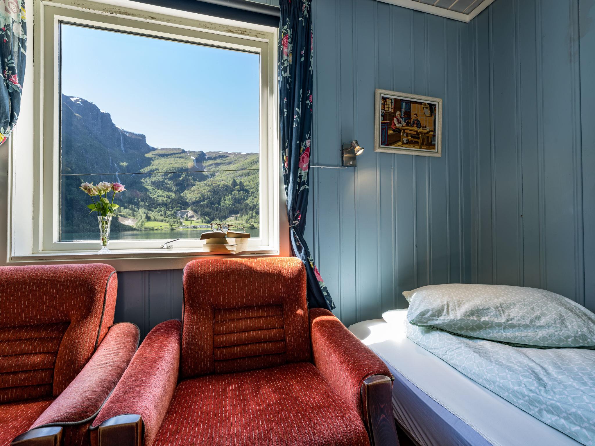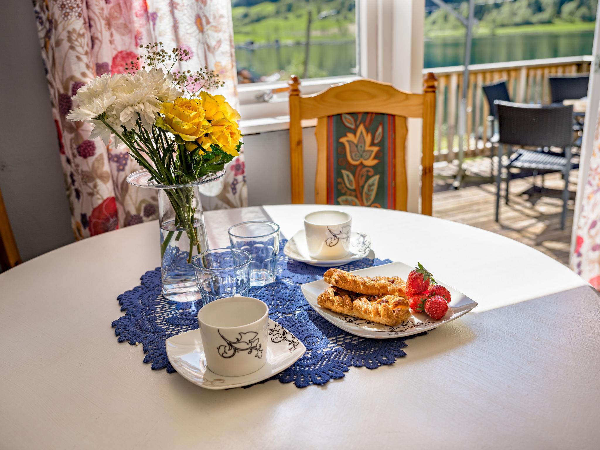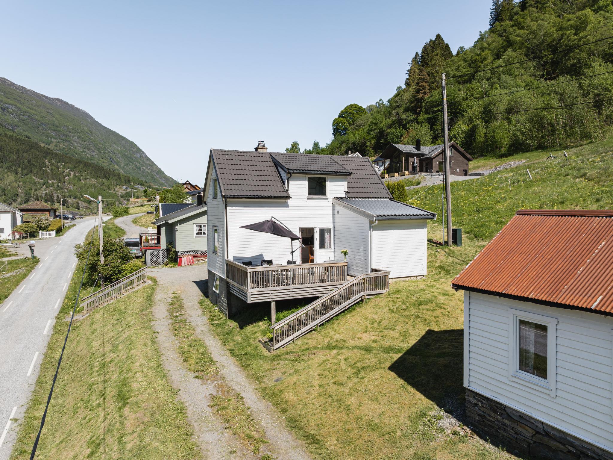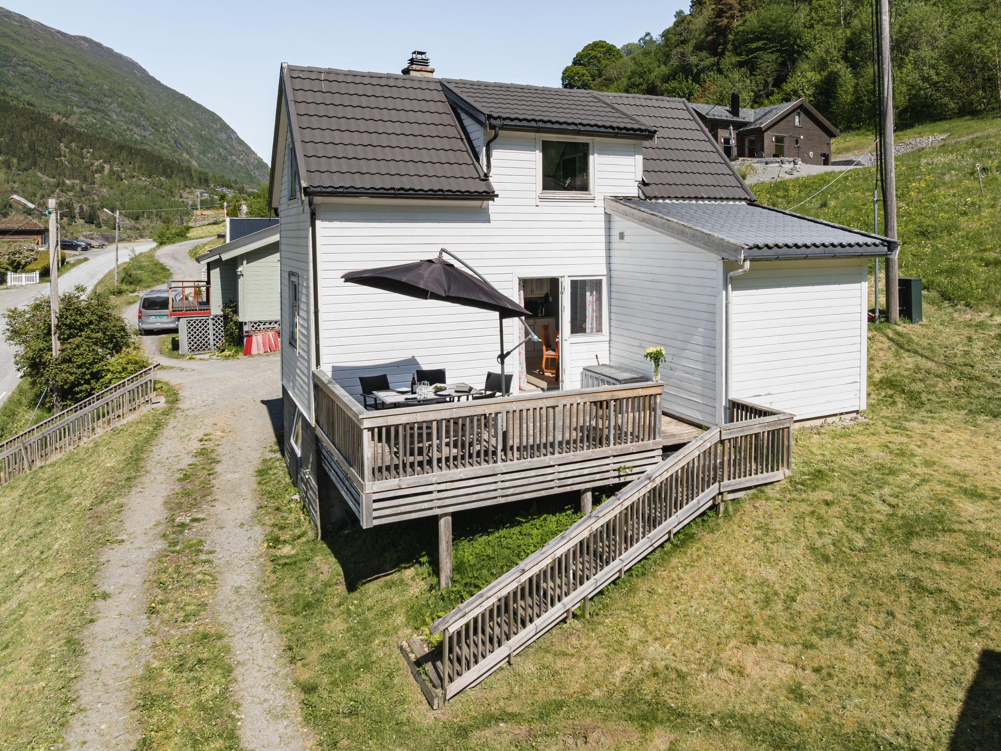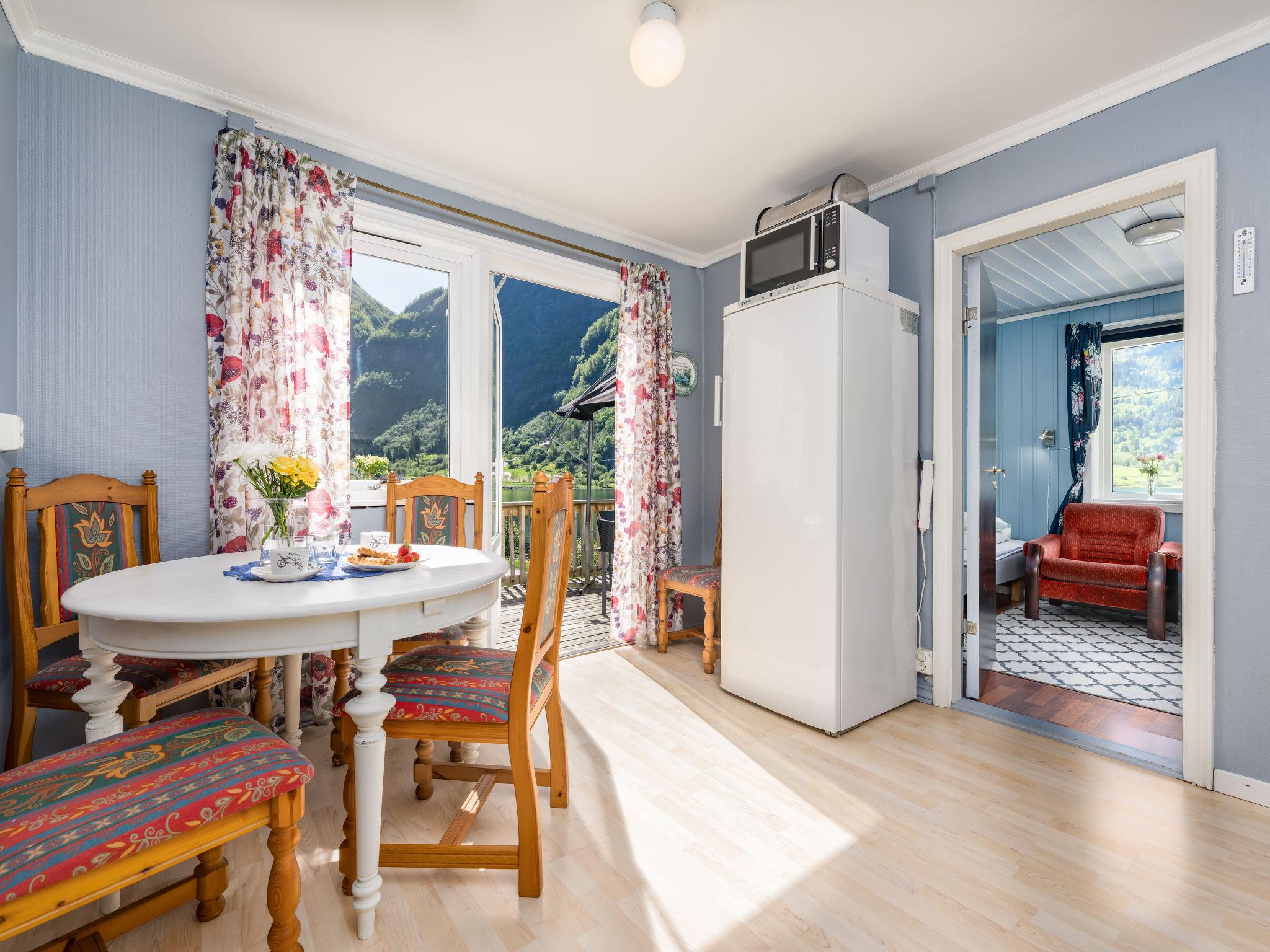Certified fishing house "Indresfjord". 3 km from the centre of Framfjord, 71 km from the centre of Sogndal, 91 km from the centre of Voss, 50 m from the fijord. Private: property with meadow. Terrace, garden furniture, barbecue, bathing jetty, fish-processing table. Motor boat (on order). 30 m long bumpy motor access. Parking on the premises. Shop 3 km, supermarket 22 km, bus stop 50 m, railway station "Voss" 91 km, ferry "Bergen" 190 km. Fishing possibilities 50 m. Table for fish gutting with running water available, fish smiking oven on request.