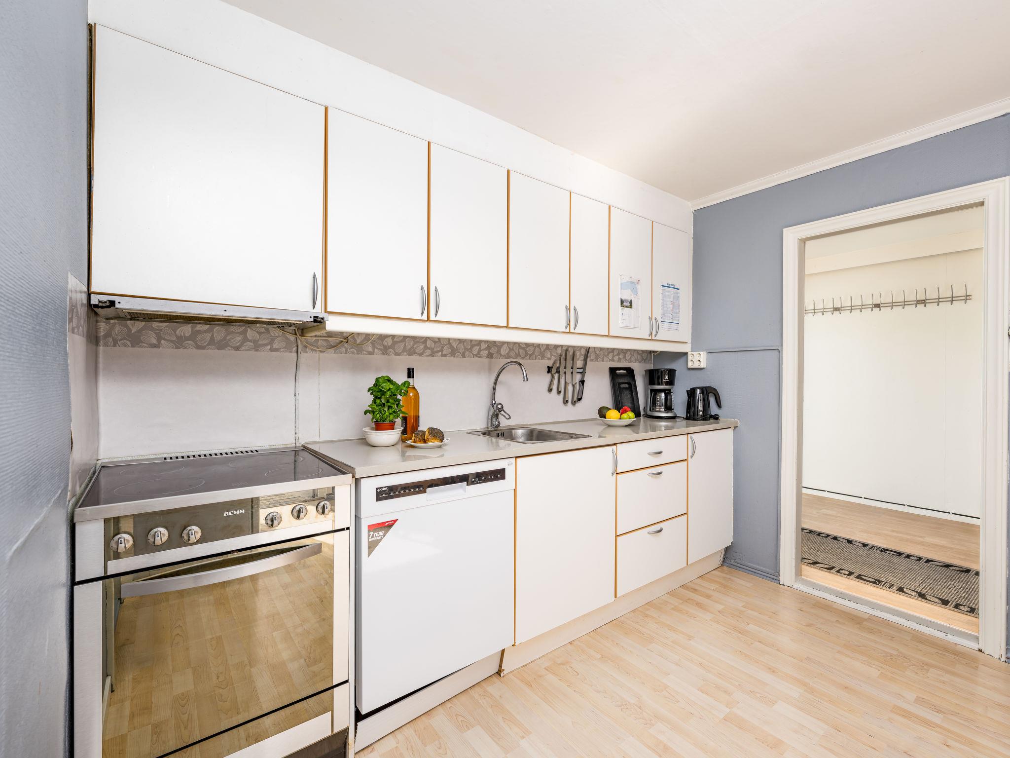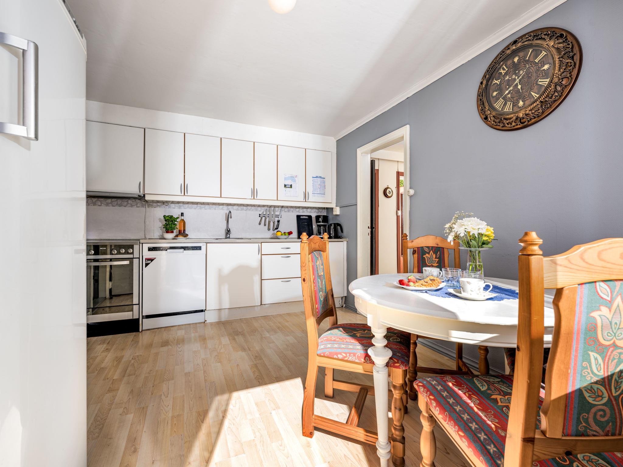 "Indresfjord", 4-room house 100 m2 on 3 levels. Renovated in 2007, cosy furnishings: living/dining room with dining table, TV and DVD. 1 room with 2 beds (90 cm, length 200 cm). Kitchen (oven, dishwasher, 4 ceramic glass hob hotplates, toaster, kettle, microwave, freezer, electric coffee machine). Exit to the balcony. Shower/WC, hydro massage bath. On the lower ground floor: Sauna. Upper floor: 1 room with 1 double bed (180 cm, length 200 cm). 1 room with 2 beds (90 cm, length 200 cm). Sep. WC. Electric heating, underfloor heating. Beautiful view of the sea, the mountains and fjord. Facilities: washing machine. Internet (WiFi, free). Please note: maximum 1 pet/ dog allowed. Smoke alarm, fire extinguisher. Freezer approx. 400 l. Steep stairs to the sauna in the basement. 924531169