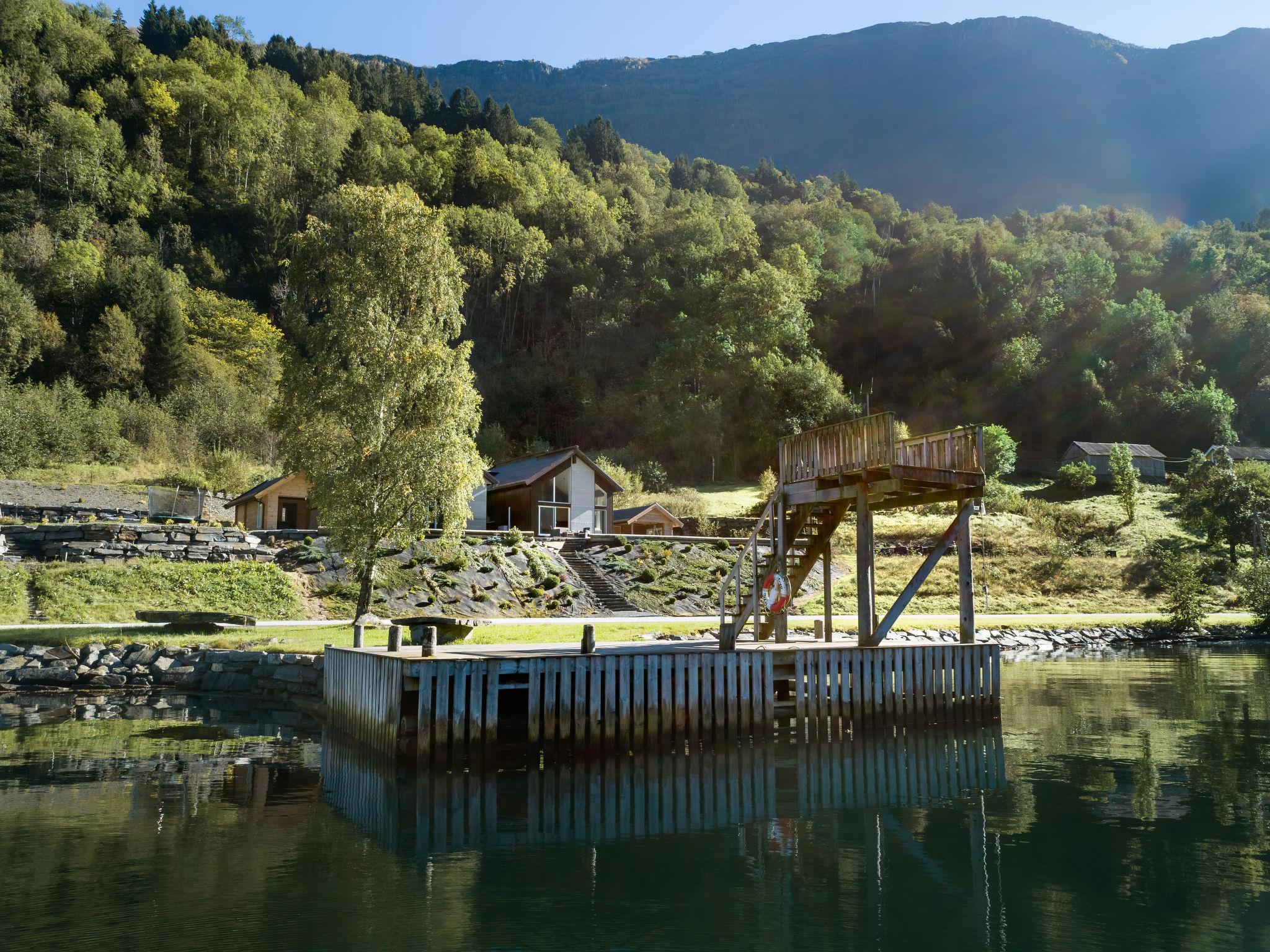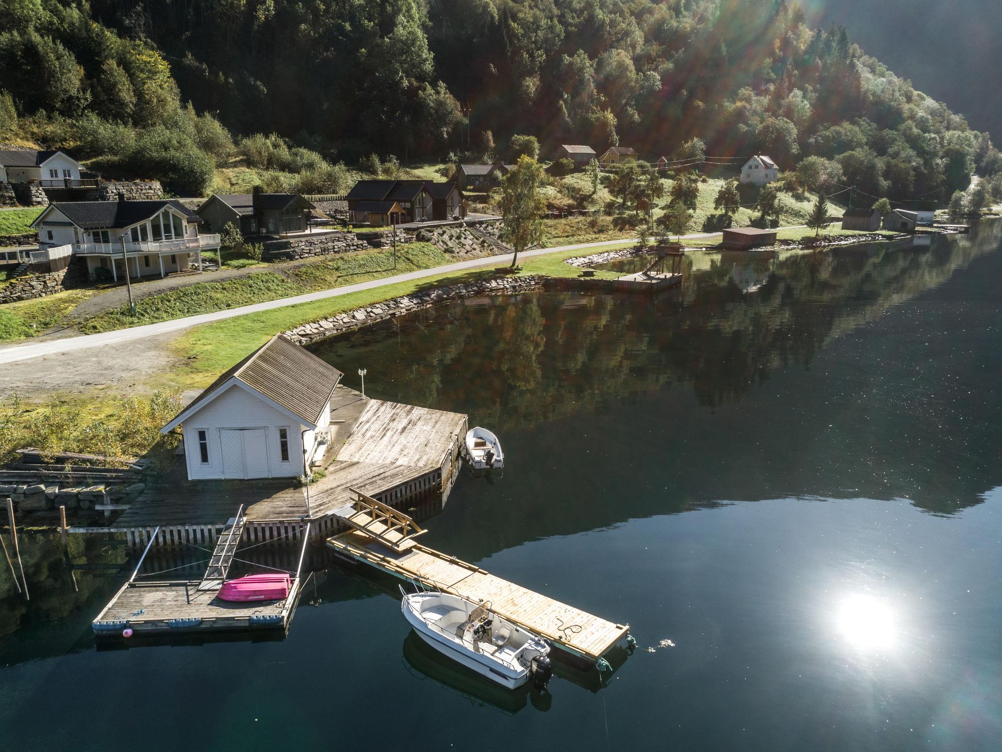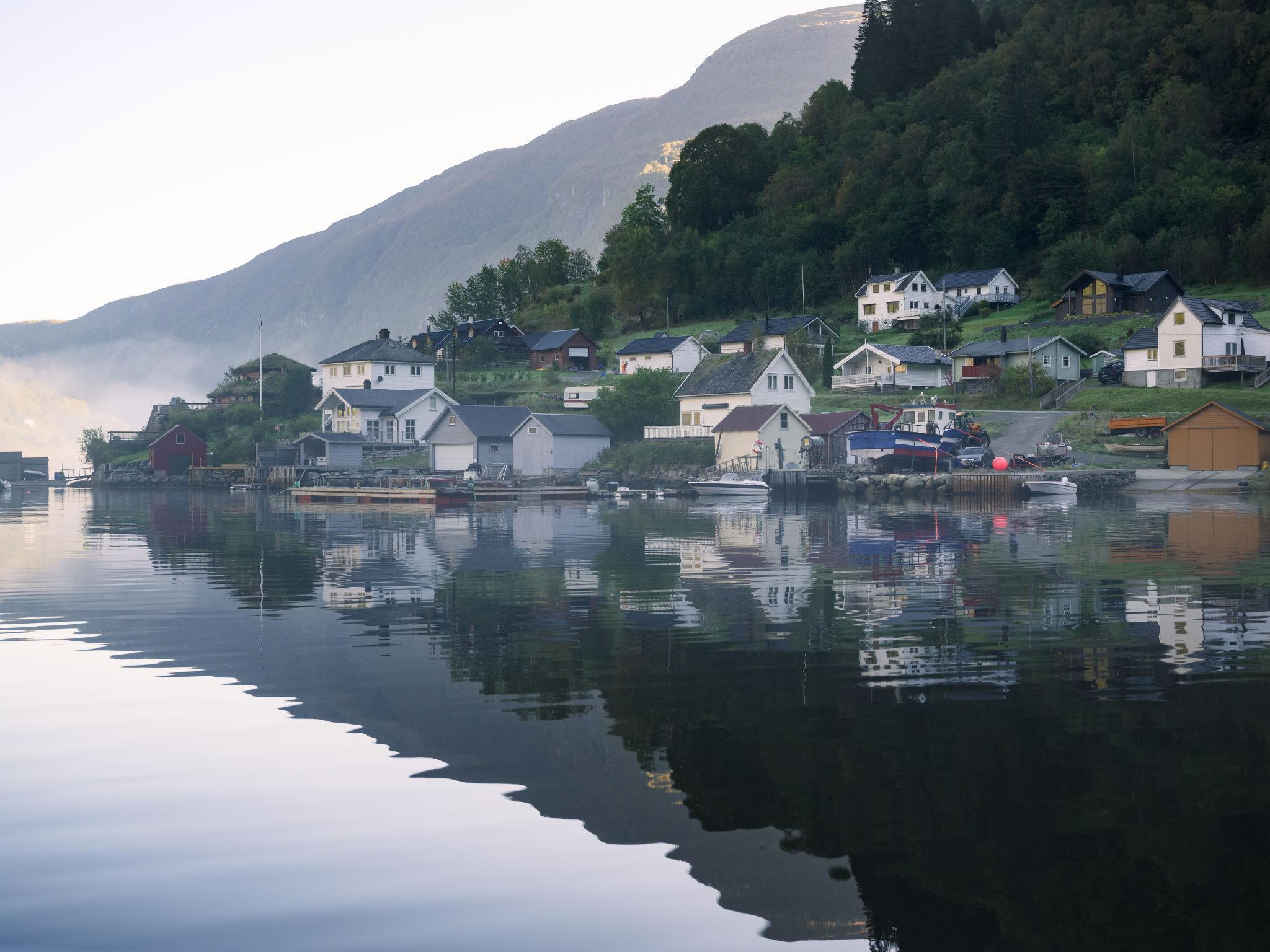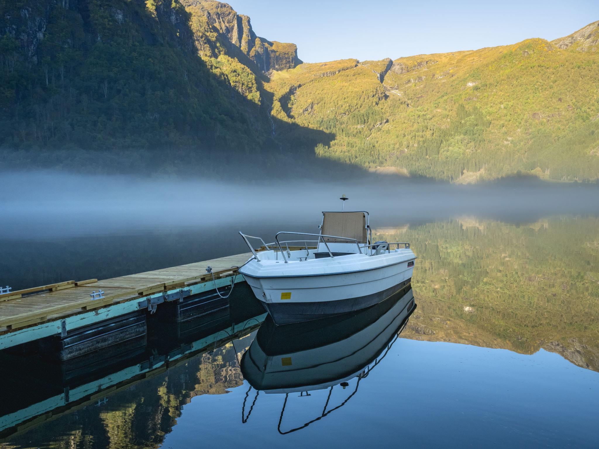 Very modern certified fishing house "Kaja", 4 m a.s.l., 2 storeys, semi-detached, built in 2022. 20 km from the centre of Vik, 190 km from the centre of Bergen, 30 m from the sea, 30 m from the fijord, road to cross. For shared use: property. Barbecue house, bathing jetty fish-processing table. Private: terrace (8 m2), garden furniture. Motor boat (on request). Motor access to the house. Parking (for 3 cars). Shop 3 km, supermarket 22 km, bus stop "Vikøyri" 21 km, sandy beach 30 m. Fishing possibilities 30 m. Nearby attractions: Gudvangen 92 km, Flåm 112 km. Please note: Property ref. NO1881.615.1 is situated on the same property.