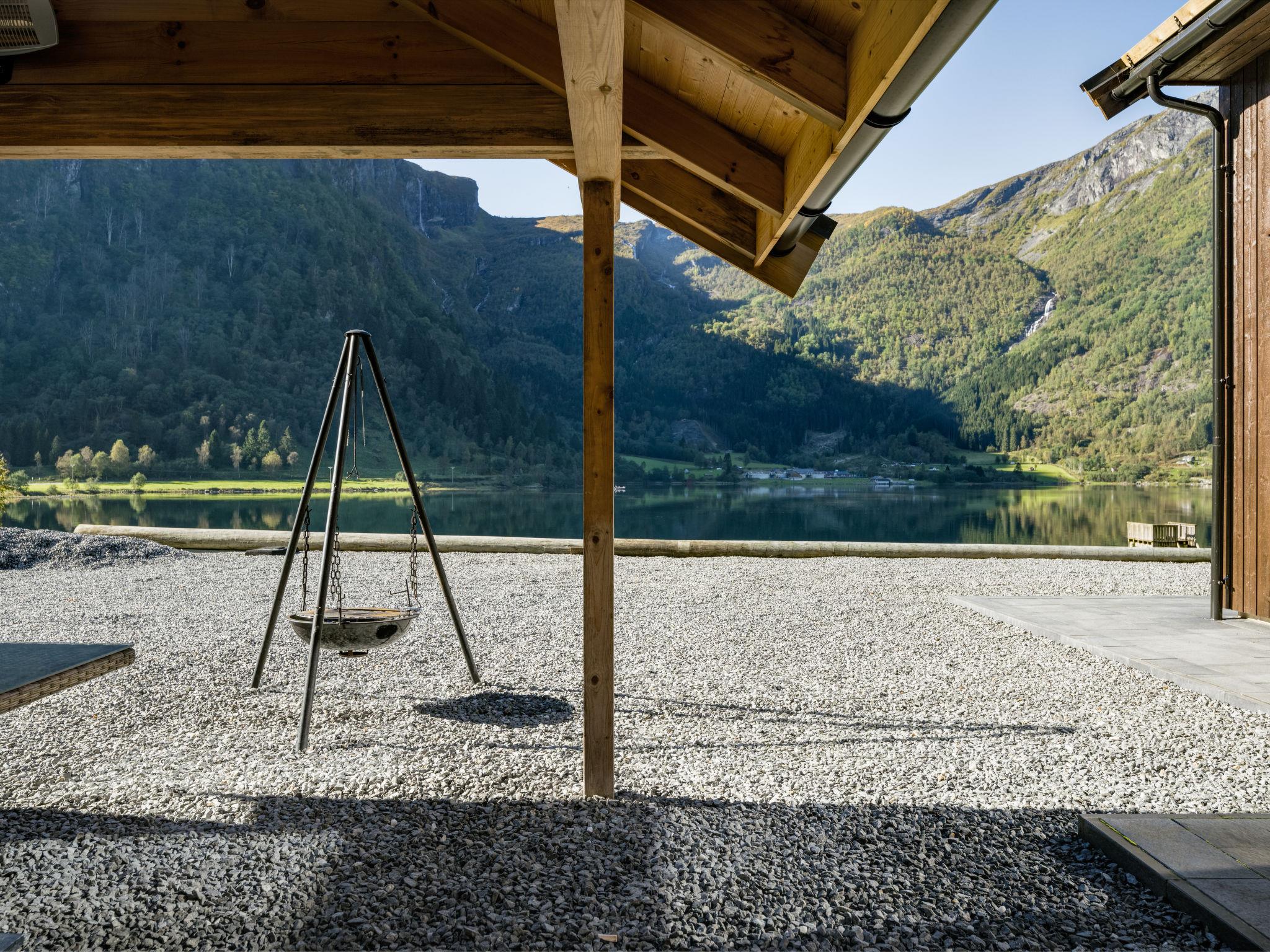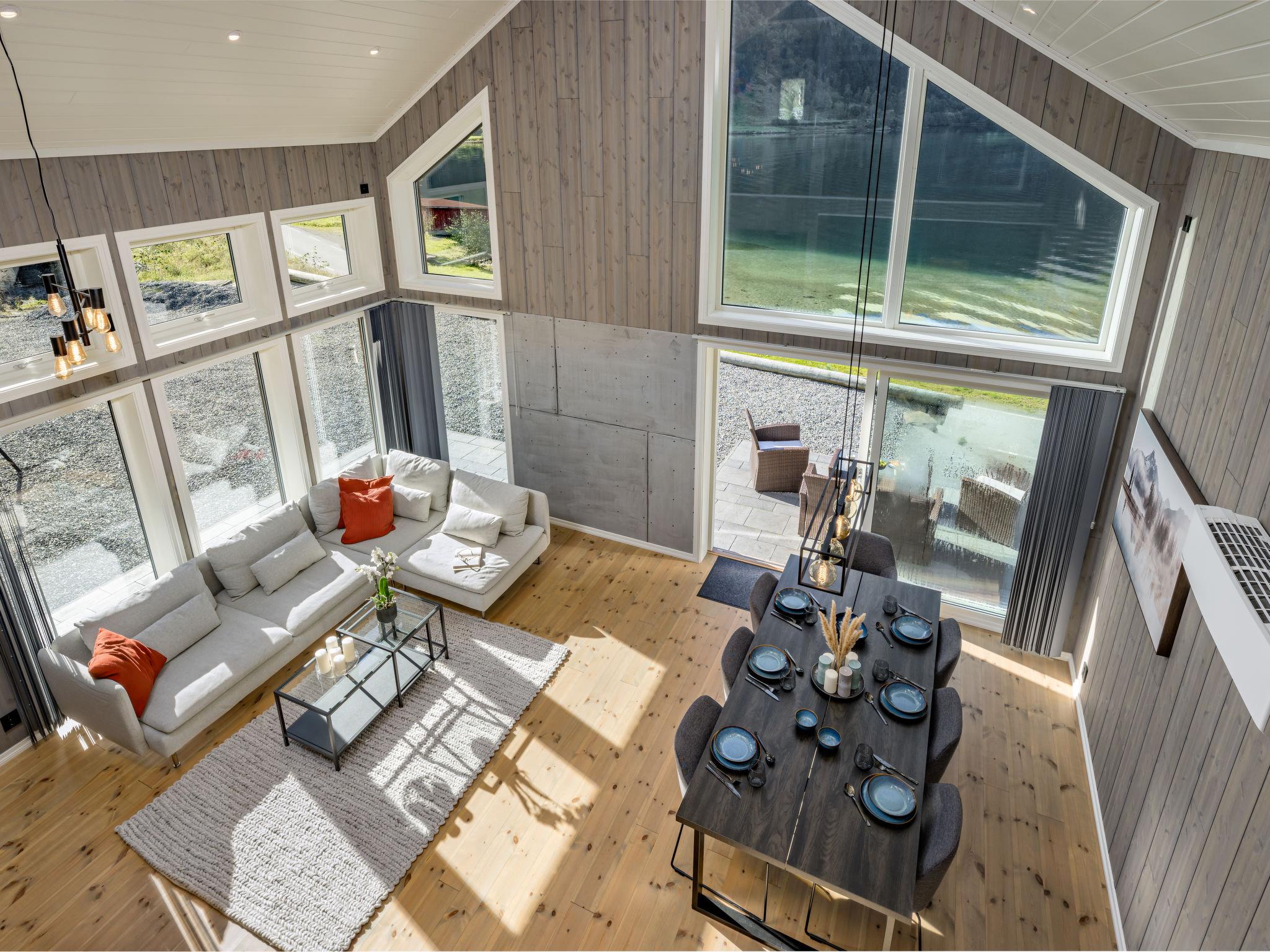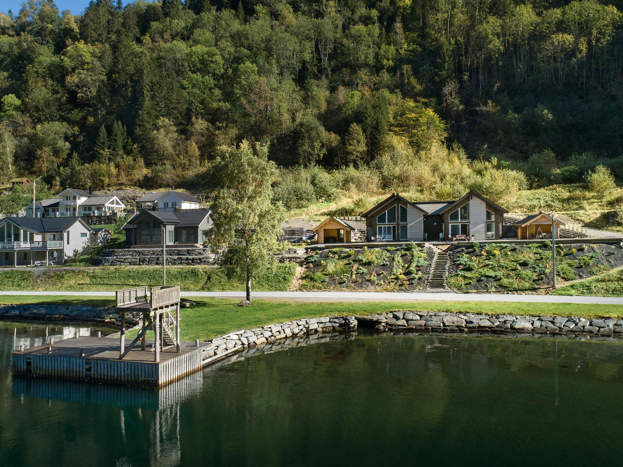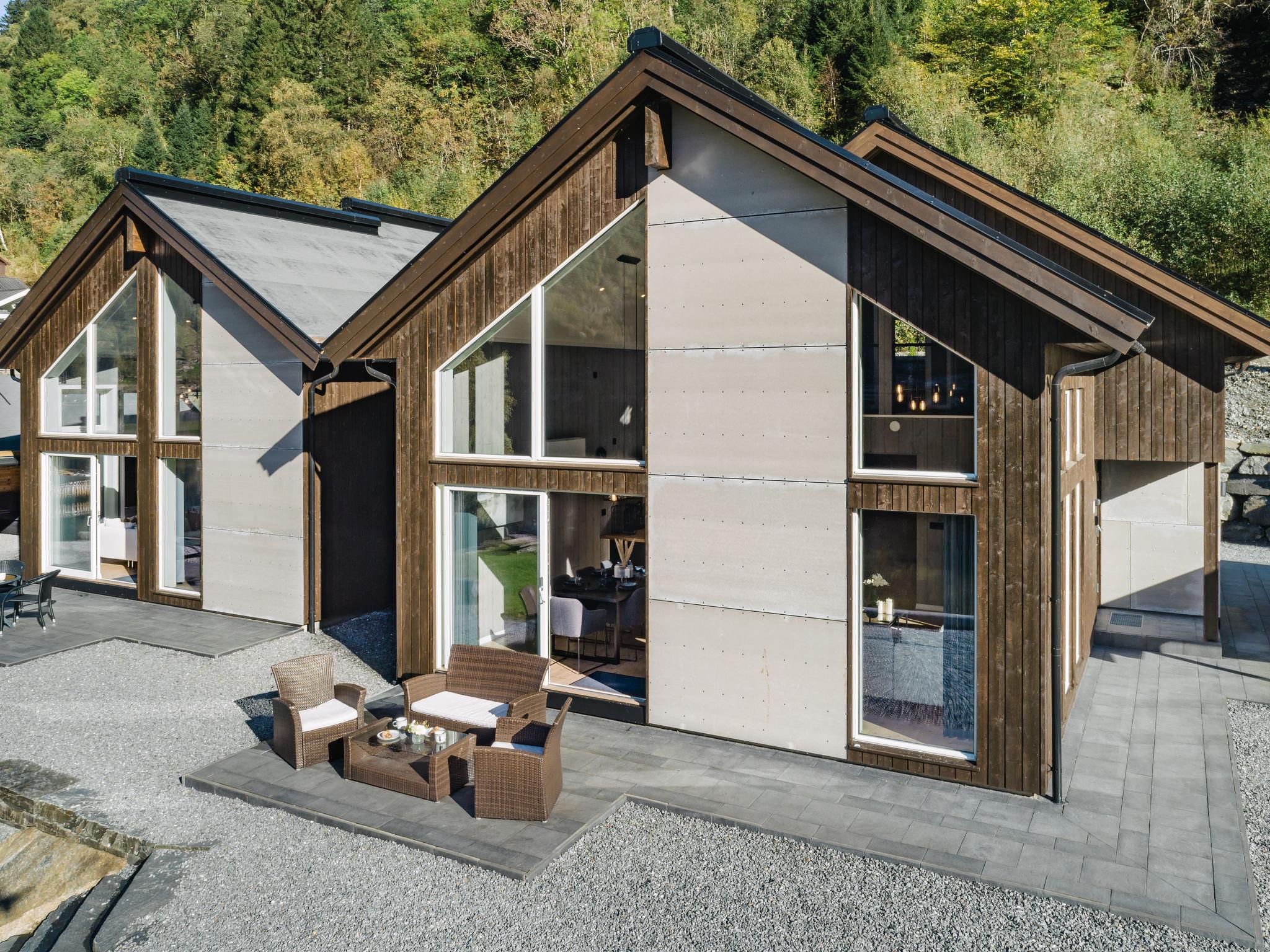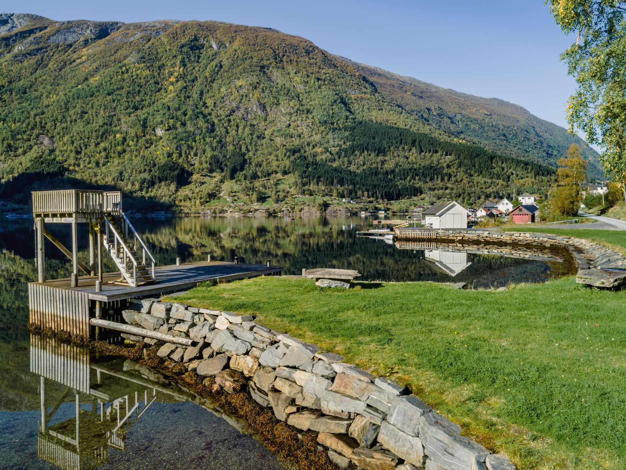 Very modern certified fishing house "Kaja", 4 m a.s.l., 2 storeys, semi-detached, built in 2022. 20 km from the centre of Vik, 190 km from the centre of Bergen, 30 m from the sea, 30 m from the fijord, road to cross. For shared use: property. Barbecue house, bathing jetty fish-processing table. Private: terrace (8 m2), garden furniture. Motor boat (on request). Motor access to the house. Parking (for 3 cars). Shop 3 km, supermarket 22 km, bus stop "Vikøyri" 21 km, sandy beach 30 m. Fishing possibilities 30 m. Nearby attractions: Gudvangen 92 km, Flåm 112 km. Please note: Property ref. NO1881.615.1 is situated on the same property.