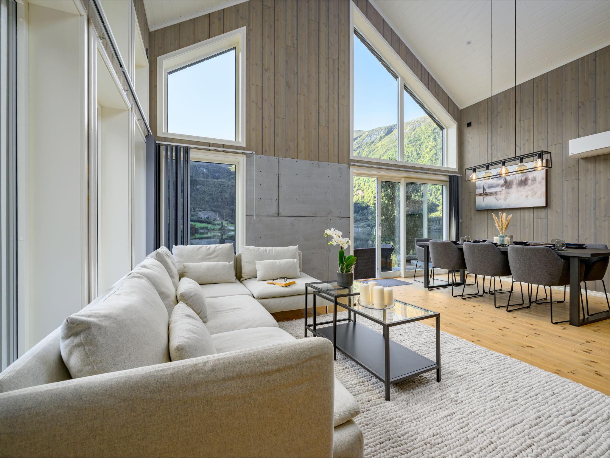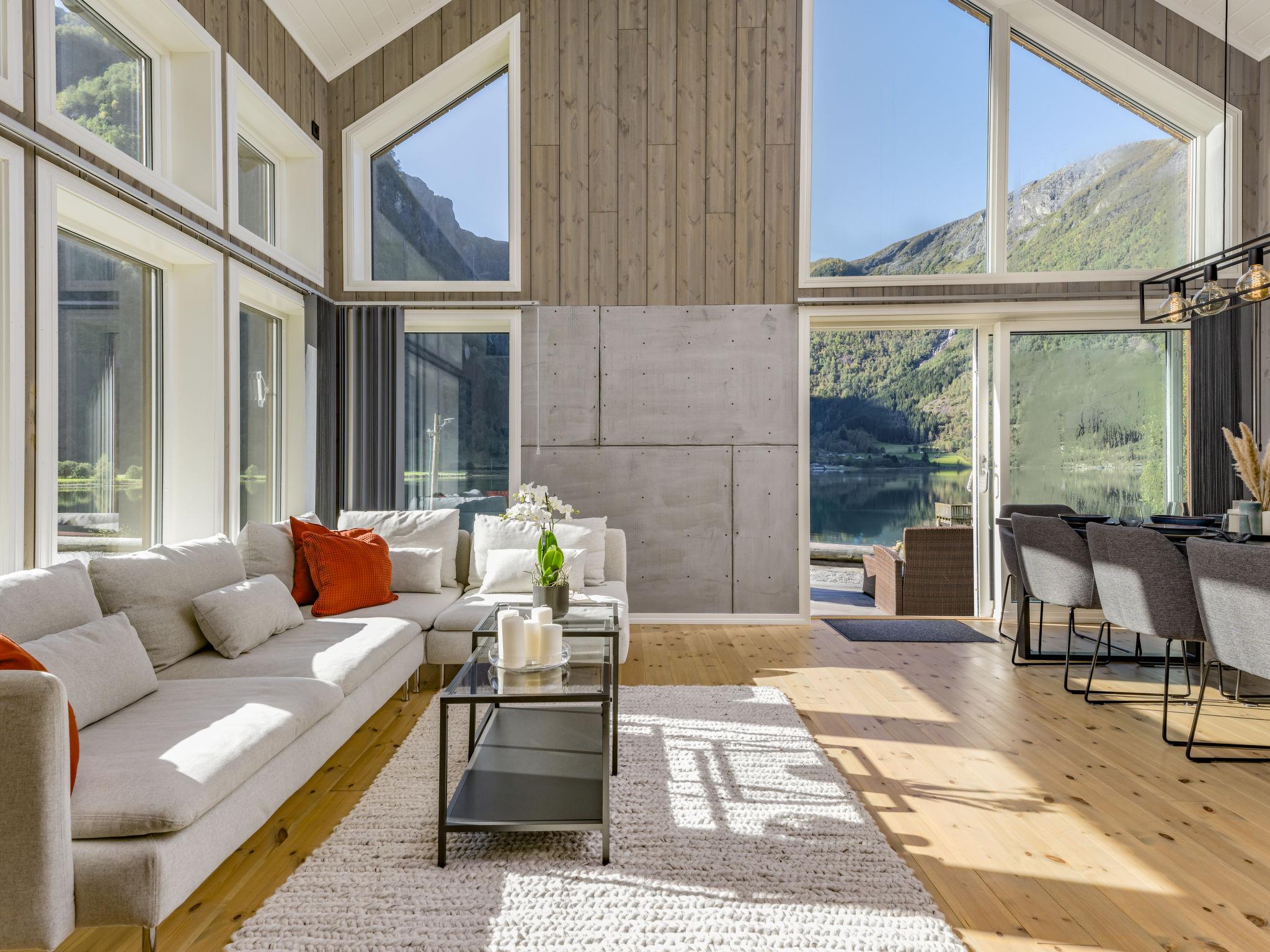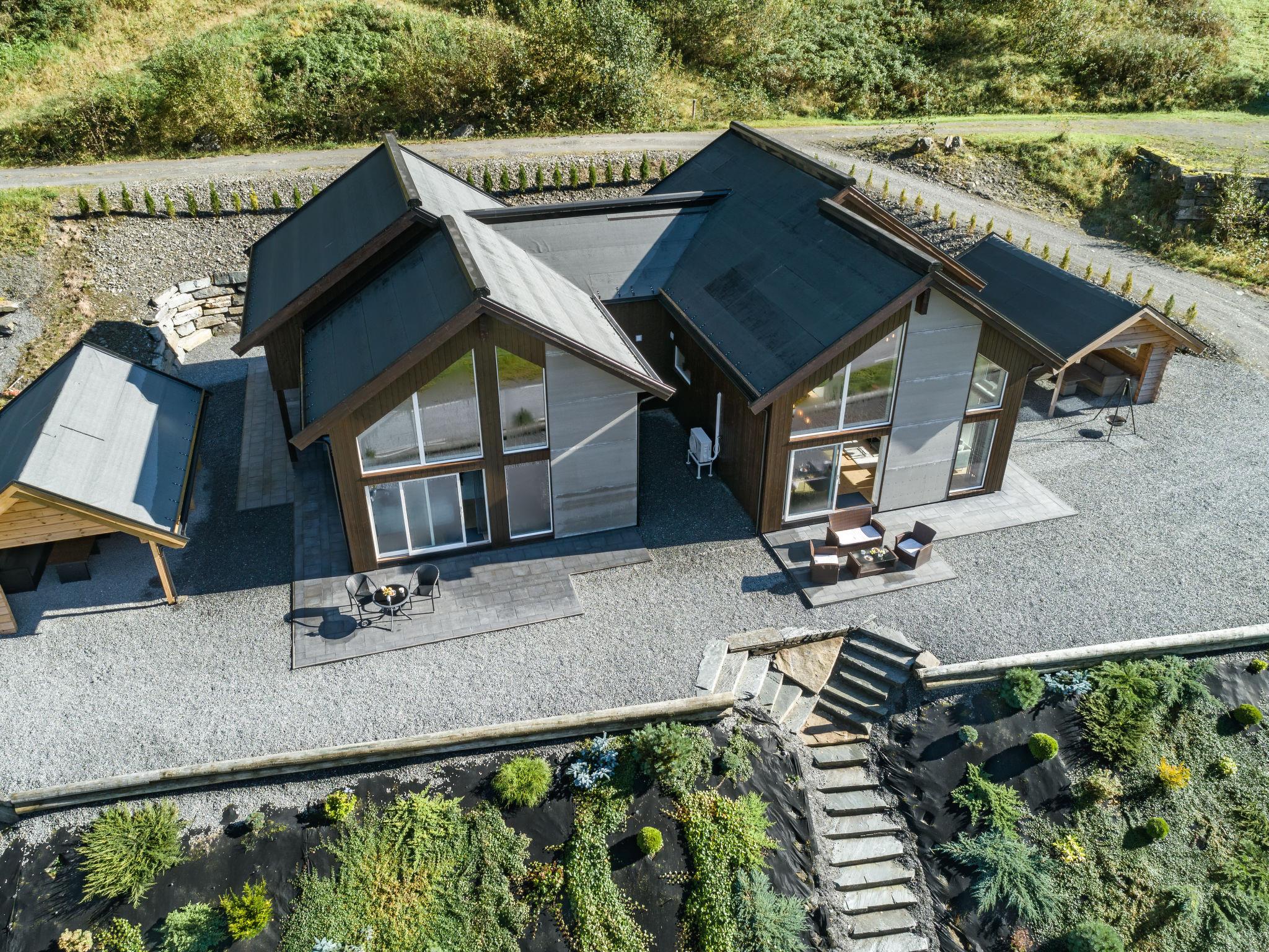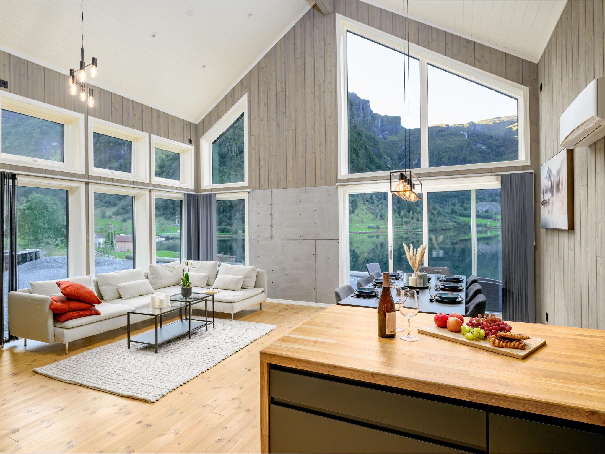 Very modern certified fishing house "Kaja", 4 m a.s.l., 2 storeys, semi-detached, built in 2022. 20 km from the centre of Vik, 190 km from the centre of Bergen, 30 m from the sea, 30 m from the fijord, road to cross. For shared use: property. Barbecue house, bathing jetty fish-processing table. Private: terrace (8 m2), garden furniture. Motor boat (on request). Motor access to the house. Parking (for 3 cars). Shop 3 km, supermarket 22 km, bus stop "Vikøyri" 21 km, sandy beach 30 m. Fishing possibilities 30 m. Nearby attractions: Gudvangen 92 km, Flåm 112 km. Please note: Property ref. NO1881.615.1 is situated on the same property.