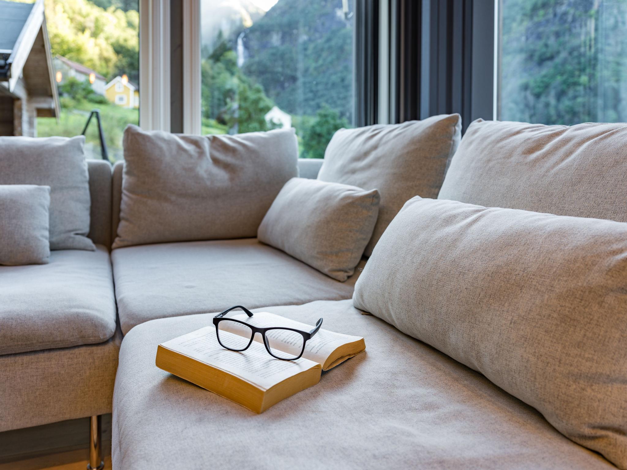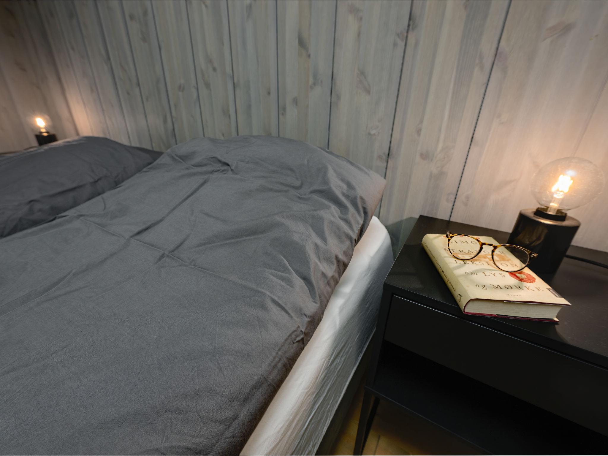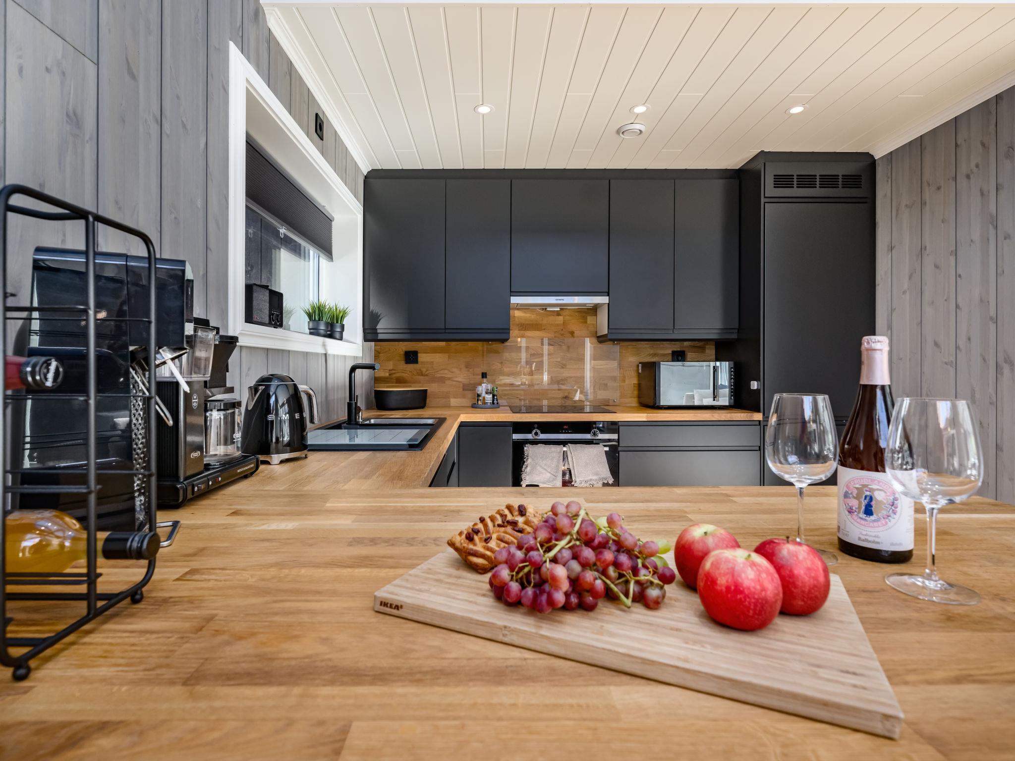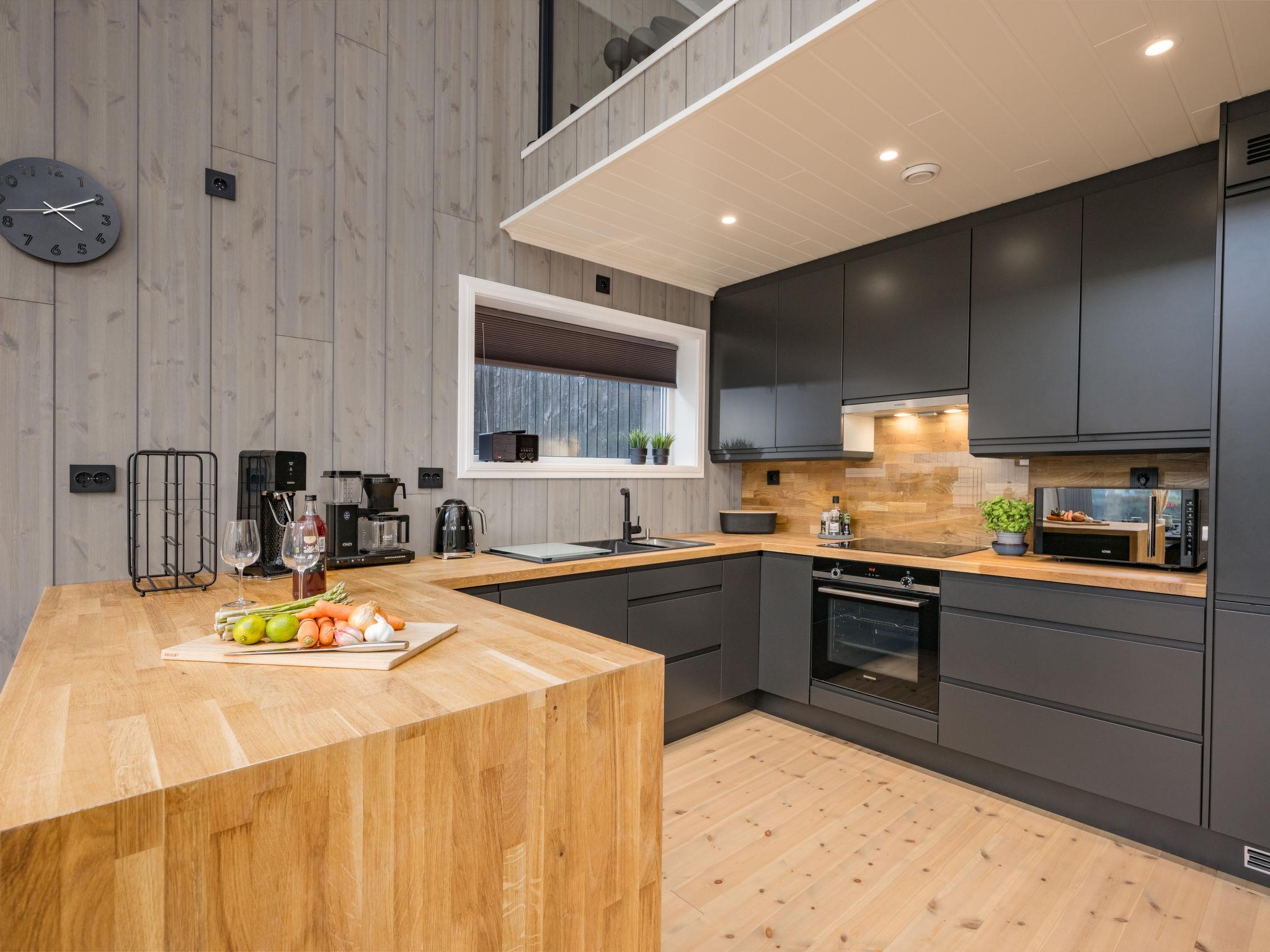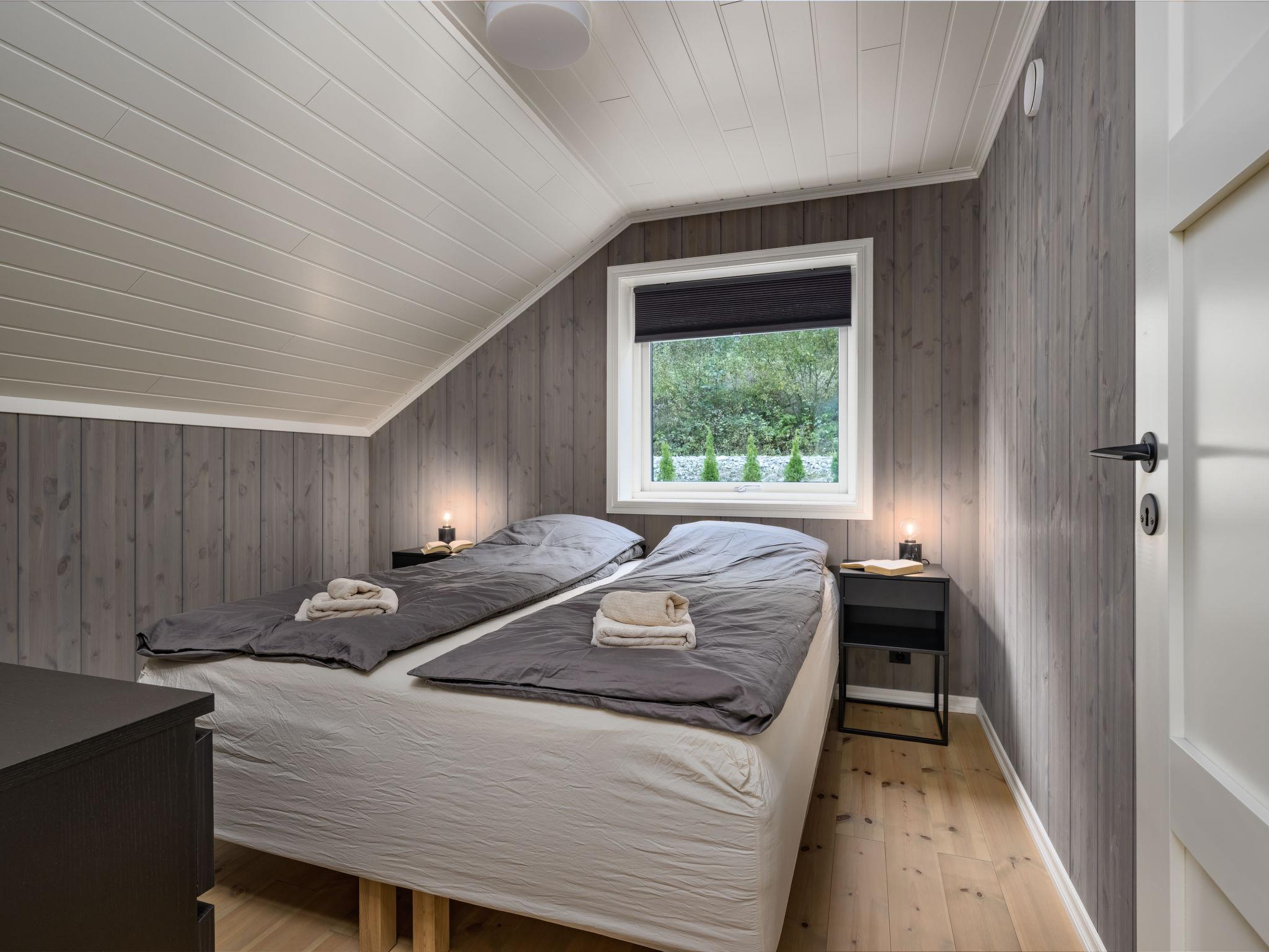 "Kaja", 6-room chalet 115 m2 on 2 levels. Bright, tasteful furnishings: open living/dining room with TV and heating stove. 1 room with 1 double bed (160 cm, length 200 cm). 1 room with 1 bed (90 cm, length 200 cm). Open kitchen (oven, dishwasher, 4 induction hot plates, toaster, kettle, microwave, freezer, electric coffee machine) with dining table. Shower/WC. Upper floor: open living room. 1 room with 1 double bed (160 cm, length 200 cm). 1 room with 2 beds (80 cm, length 200 cm). Beautiful panoramic view of the sea, the mountains and fjord. Facilities: washing machine, sauna. Internet (WiFi, free). Please note: non-smokers only. 924531169