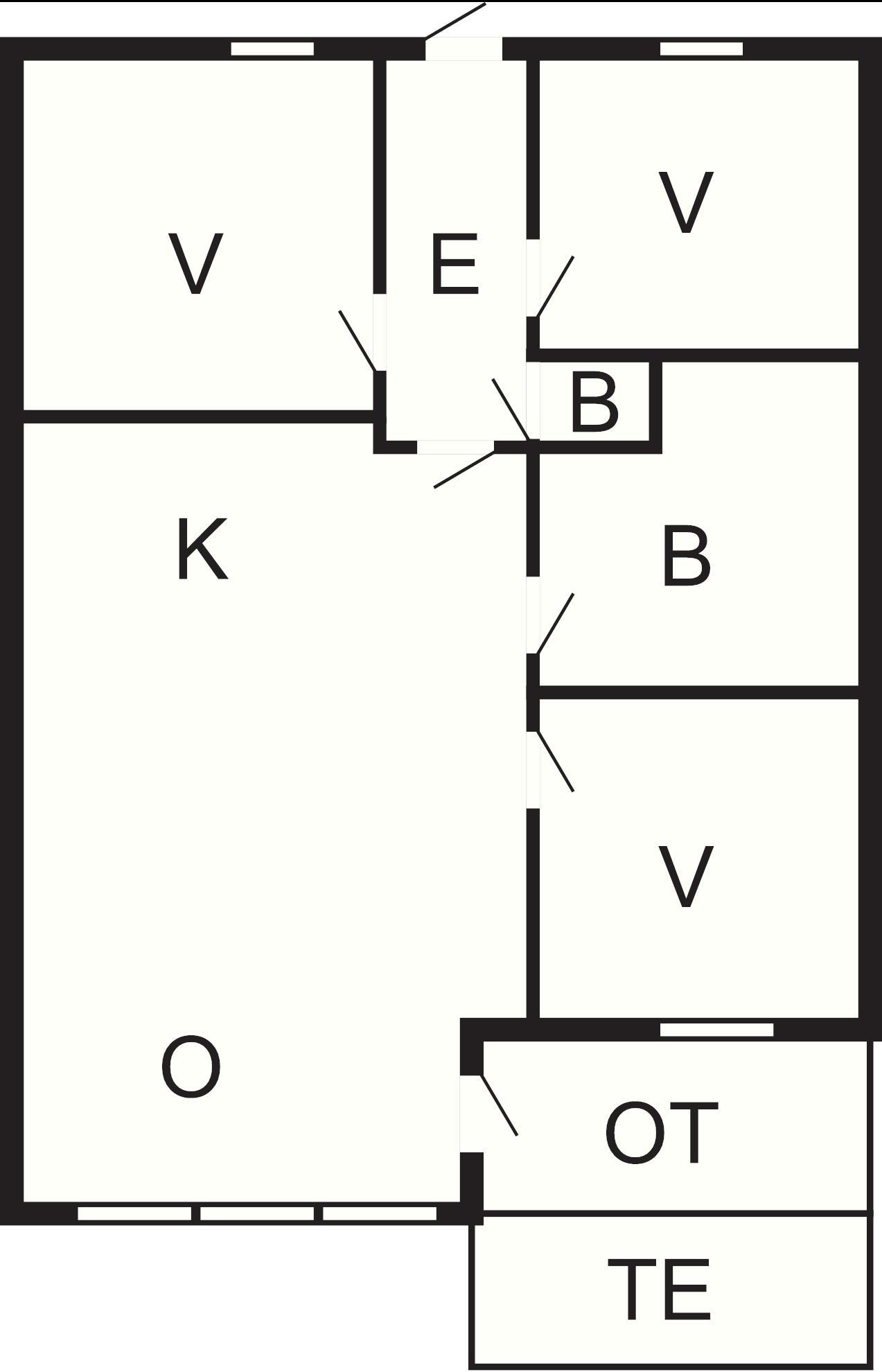 3 Soveværelser: (1DS)+(2S)+(2S), barneseng