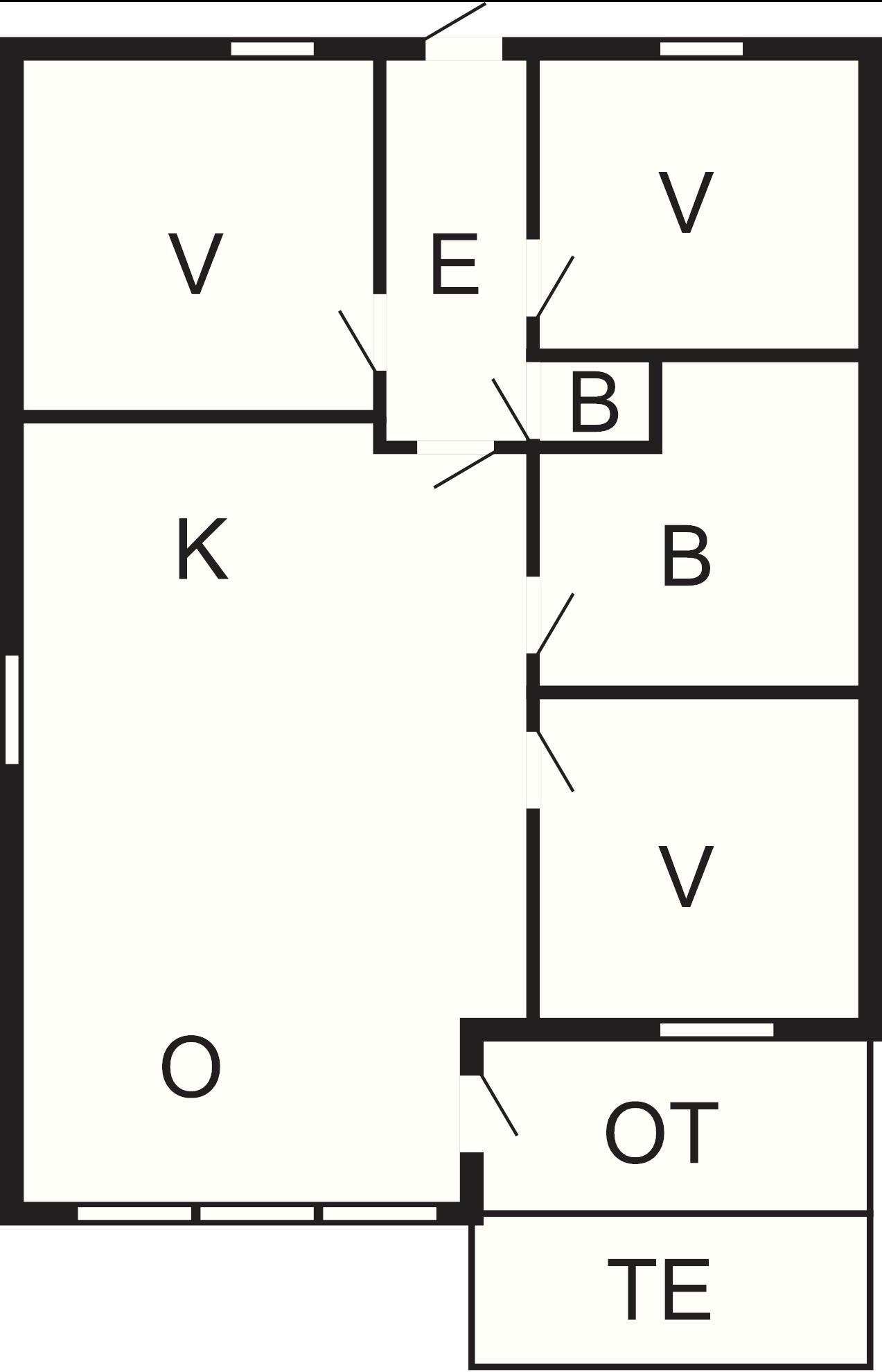 3 Soveværelser: (1DS)+(2S)+(2S), barneseng