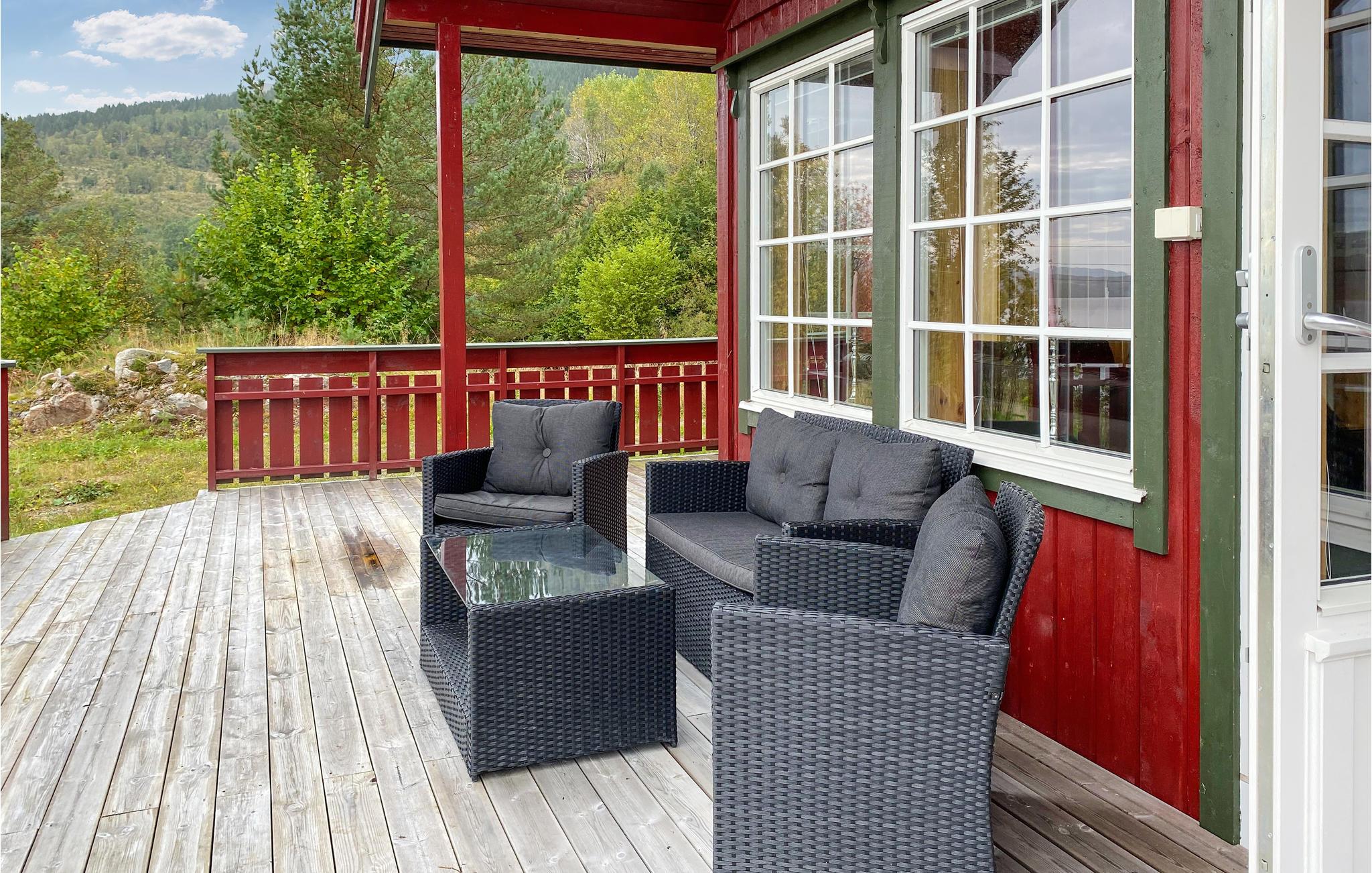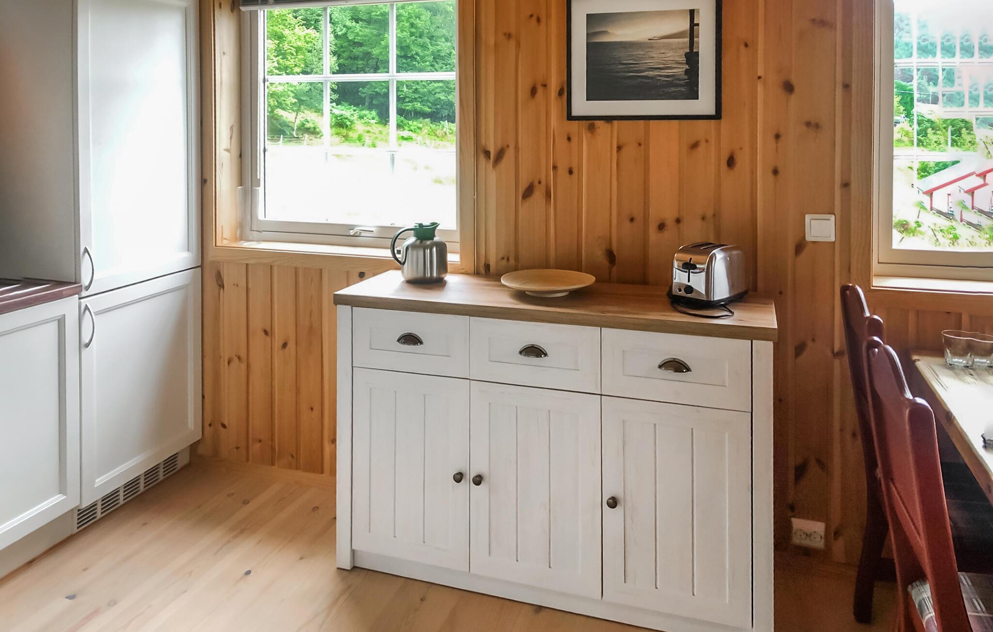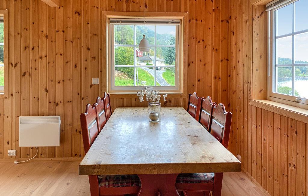 Beliggende i naturskønne omgivelser med udsigt over den glitrende fjord og ikke langt fra Arasvika-Hennset færgehavn, garanterer dette hus en afvekslende ferie. Inde i huset giver naturligt træ et varmt udtryk og de høje lofter og mange sprosservinduer skaber en rummelig, luftig og lys atmosfære, hvor alle vil føle sig godt tilpas. Efter en begivenhedsrig dag kan I lægge fødderne op i sofaen eller holde en spilleaften ved spisebordet. Mens I spiser har I en smuk udsigt over det grønne.