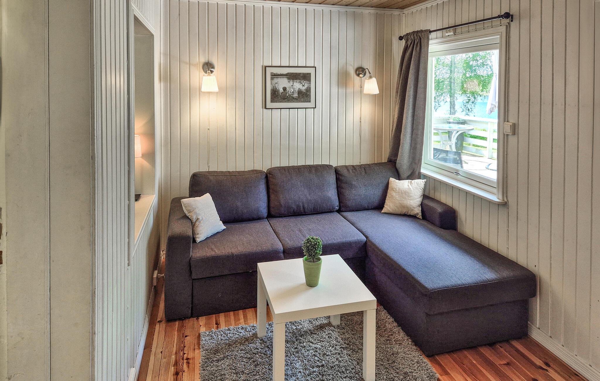 Et hyggeligt feriehus i stille og rolige omgivelser. Her kan I nyde naturen og virkelig slappe af i det naturskønne område. Fra terrassen er der en flot udsigt over vandet. Grunden er stor og har en trampolin og en træhytte til de mindste gæster.