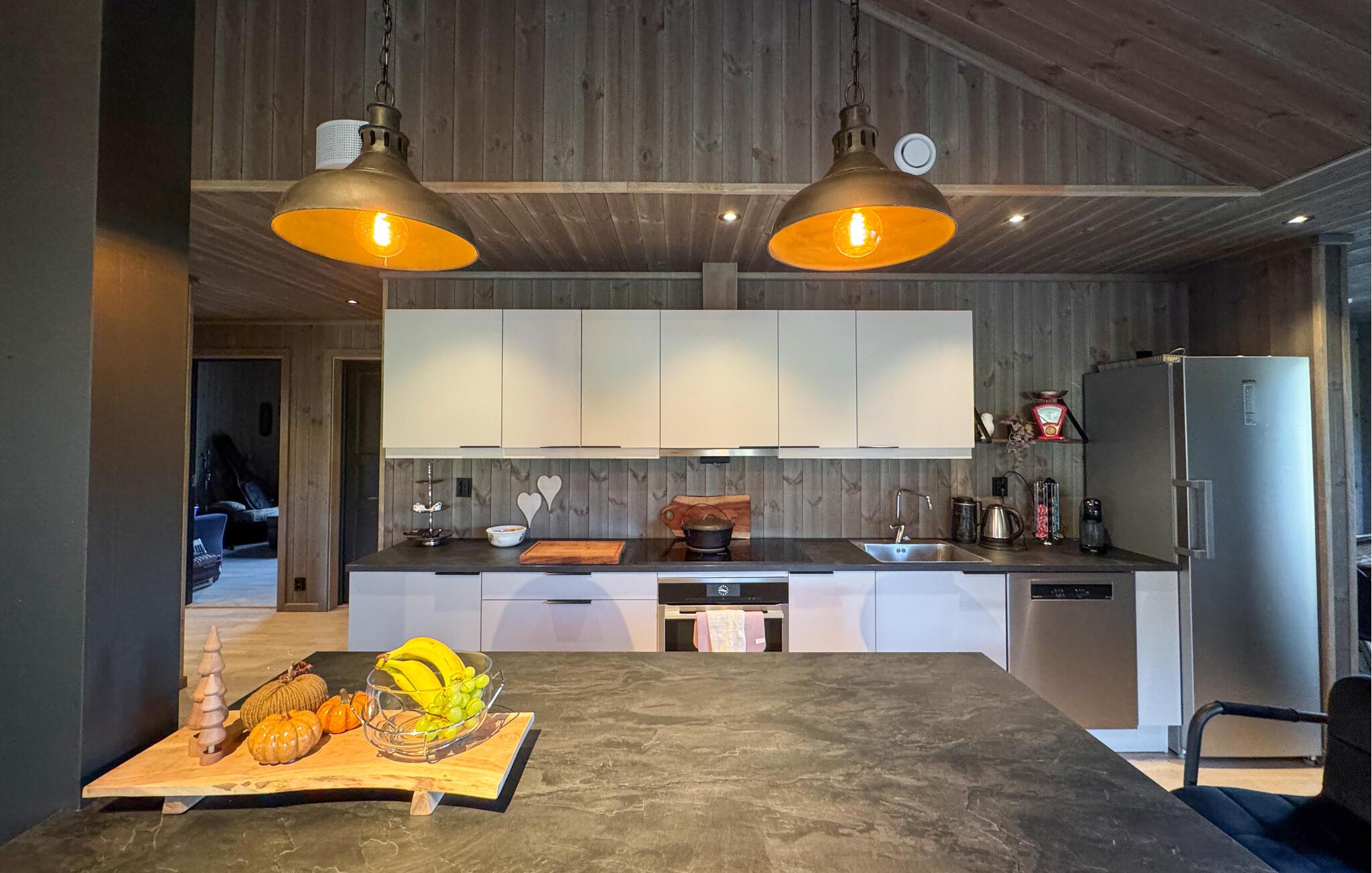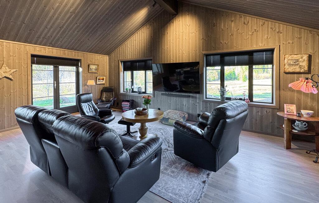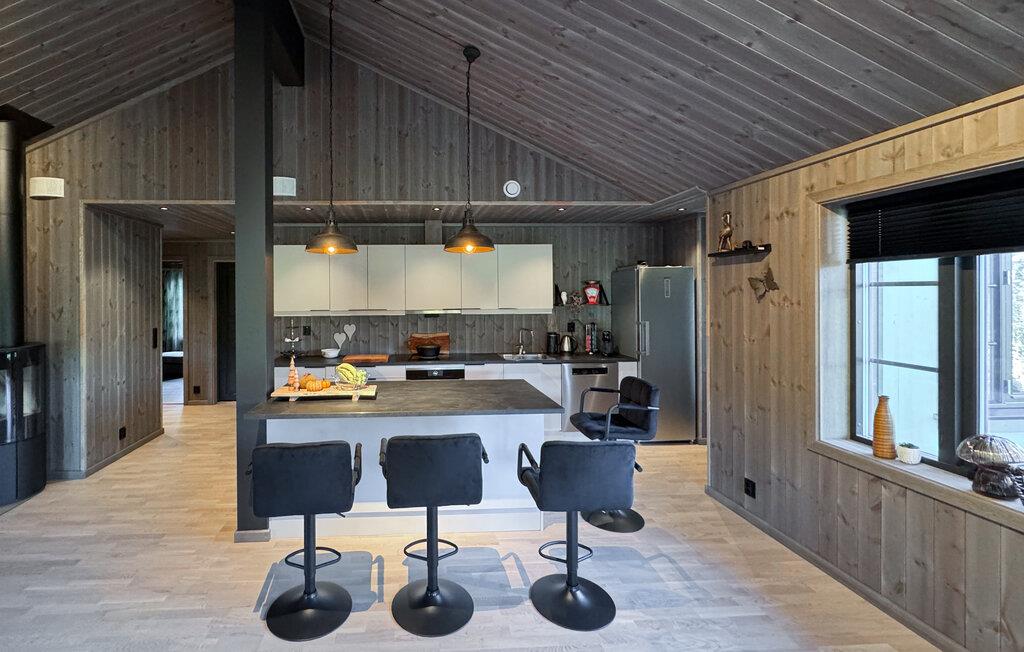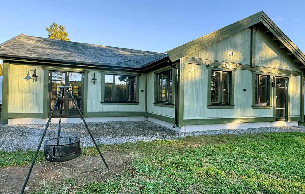 Nyd en afslappende ferie i dette moderne feriehus med udsigt over enge, skov og vand. Tilbring afslappende dage i dette stilfulde feriehus, der ligger tæt på en flod og en sø. Omgivet af uspoleret natur vil I opleve fred, komfort og utallige muligheder for aktivt at nyde det smukke landskab. Lad jer betage af de moderne møbler og den rummelige atmosfære. Det smukke træinteriør, de høje lofter og de store vinduer skaber en åben og indbydende atmosfære. Slap af i den hyggelige opholdsstue med komfortable lænestole og nyd udsigten over naturen gennem de store vinduer. Tilbered jeres måltider i det moderne køkken udstyret med apparater af høj kvalitet og nyd dem ved spisebordet med panoramavindue. Efter en aktiv dag inviterer saunaen jer til at slappe af. Gå udenfor og mærk roen i omgivelserne. Sid i havestolene ved den lille bæk, lyt til vandets blide rislen, og se aftensolen gå ned over skovene. Brug bålstedet til hyggelige aftener eller tag på vandreture i skoven direkte fra hoveddøren. Udforsk regionen omkring Austmarka og Utgardsjøen. Tag på kanosejlads eller vandreture, oplev de omkringliggende søer og floder, eller tag på ture til de nærliggende naturreservater. Om vinteren byder området på fantastiske forhold for langrend.