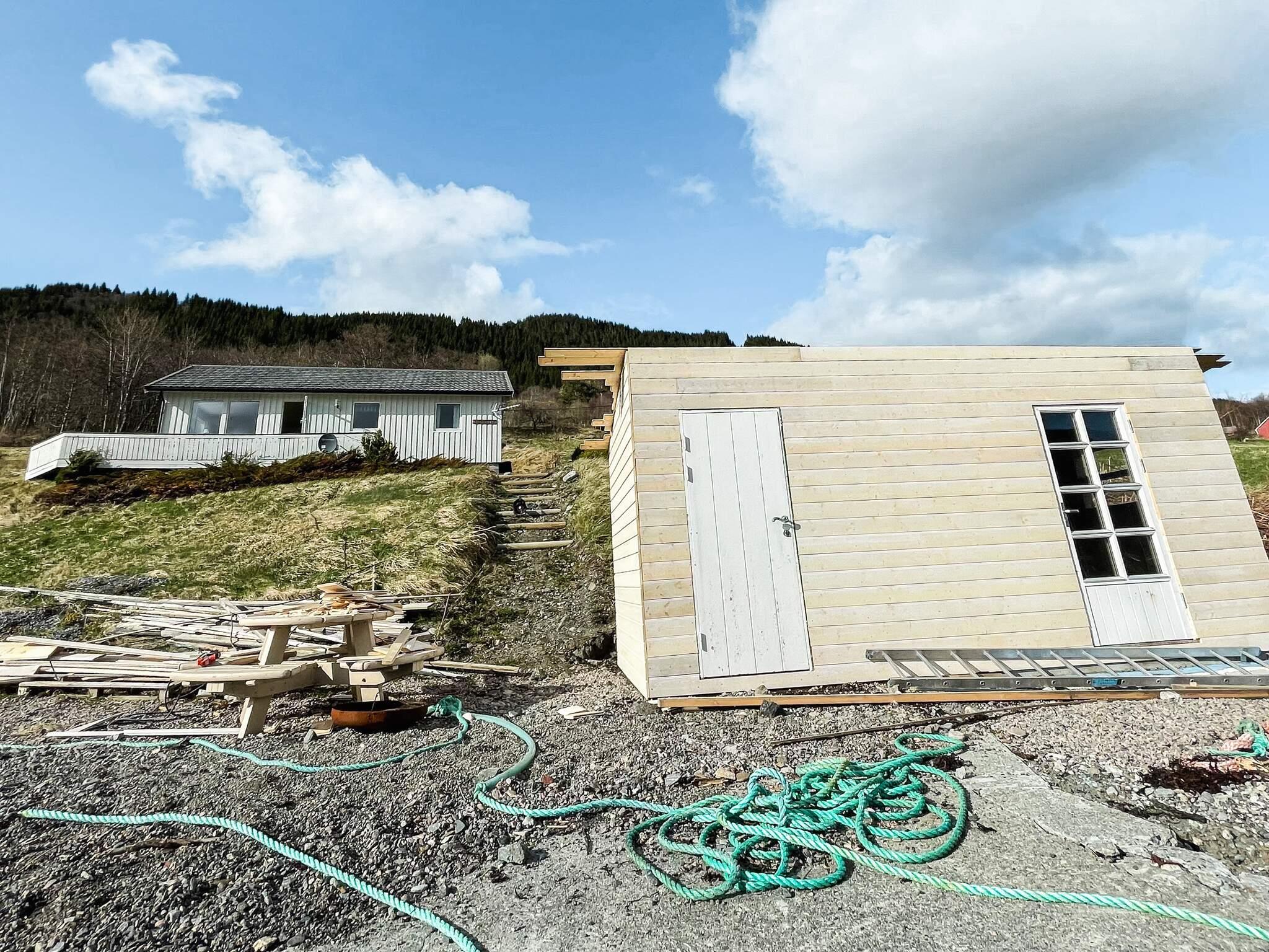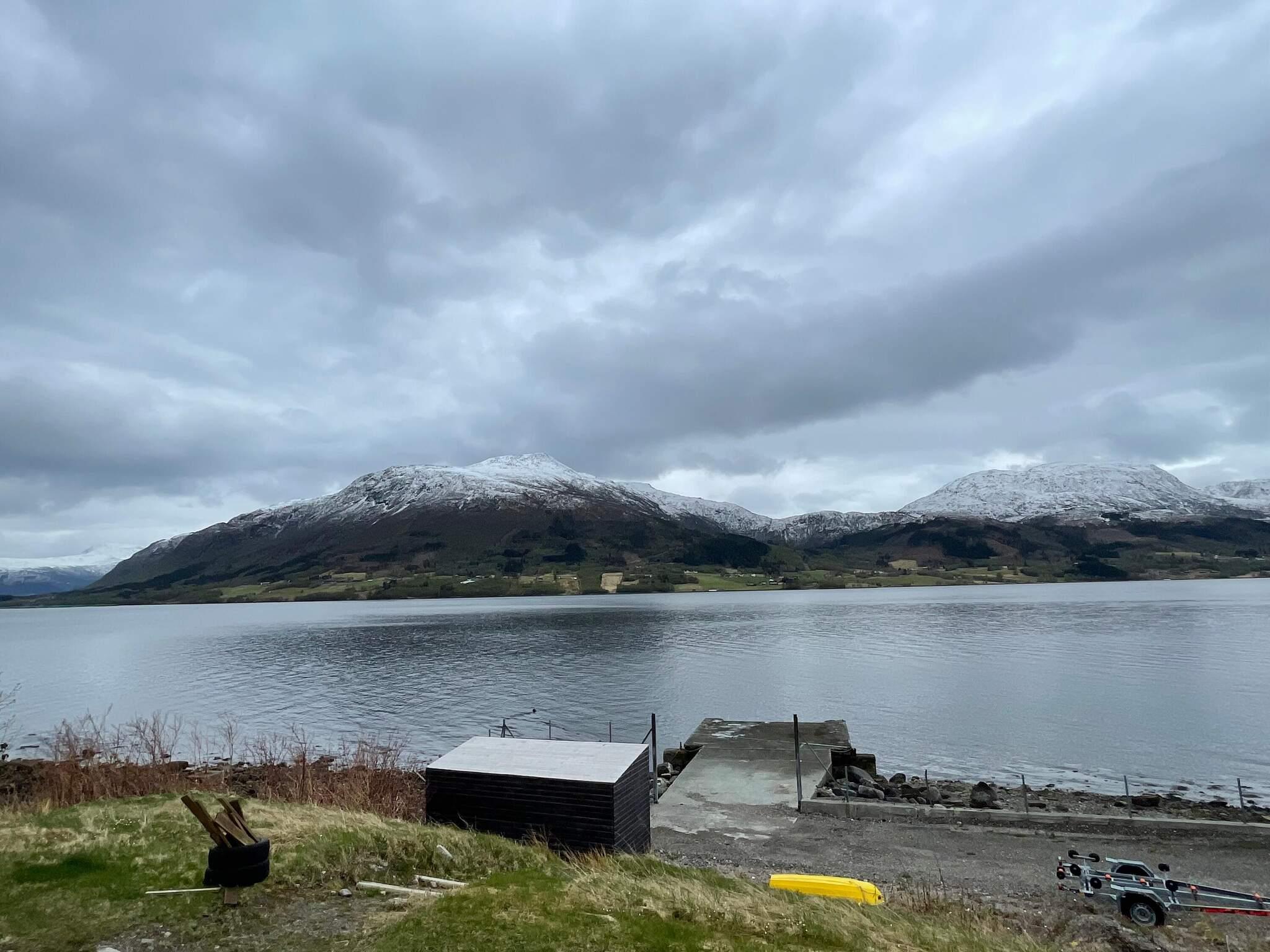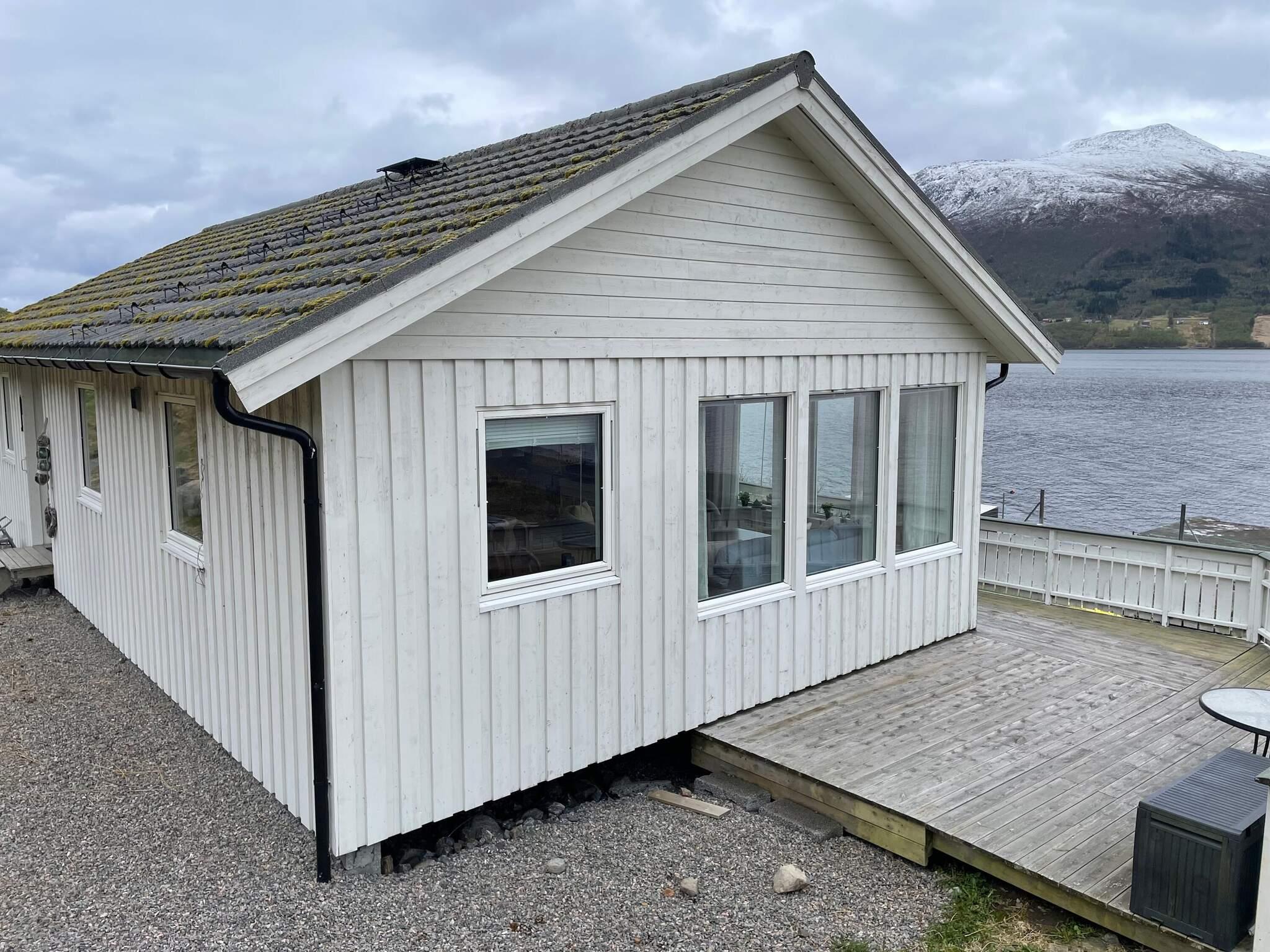 Flott feriehus sydvendt og avskjermet beliggende 30 m fra Kvernesfjorden, stedet for hobbyfiskere, familier og par.