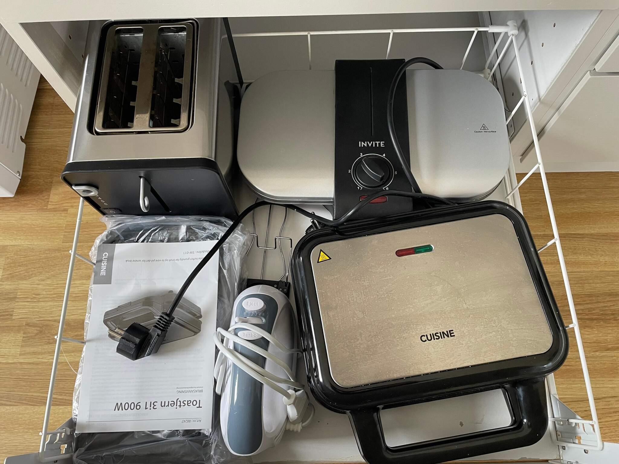 Køkkenafd.: høj stol, køleskab, fryser 200 - 249 l, mikroovn, emhætte, kaffemaskine, opvaskemask., vaskemaskine, kaffetragt