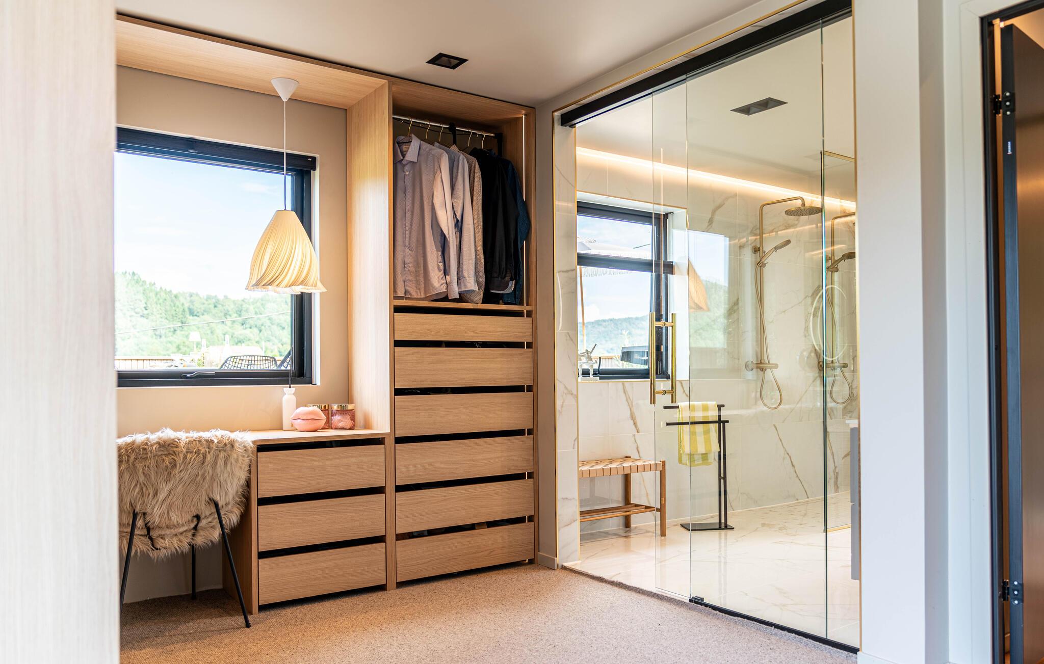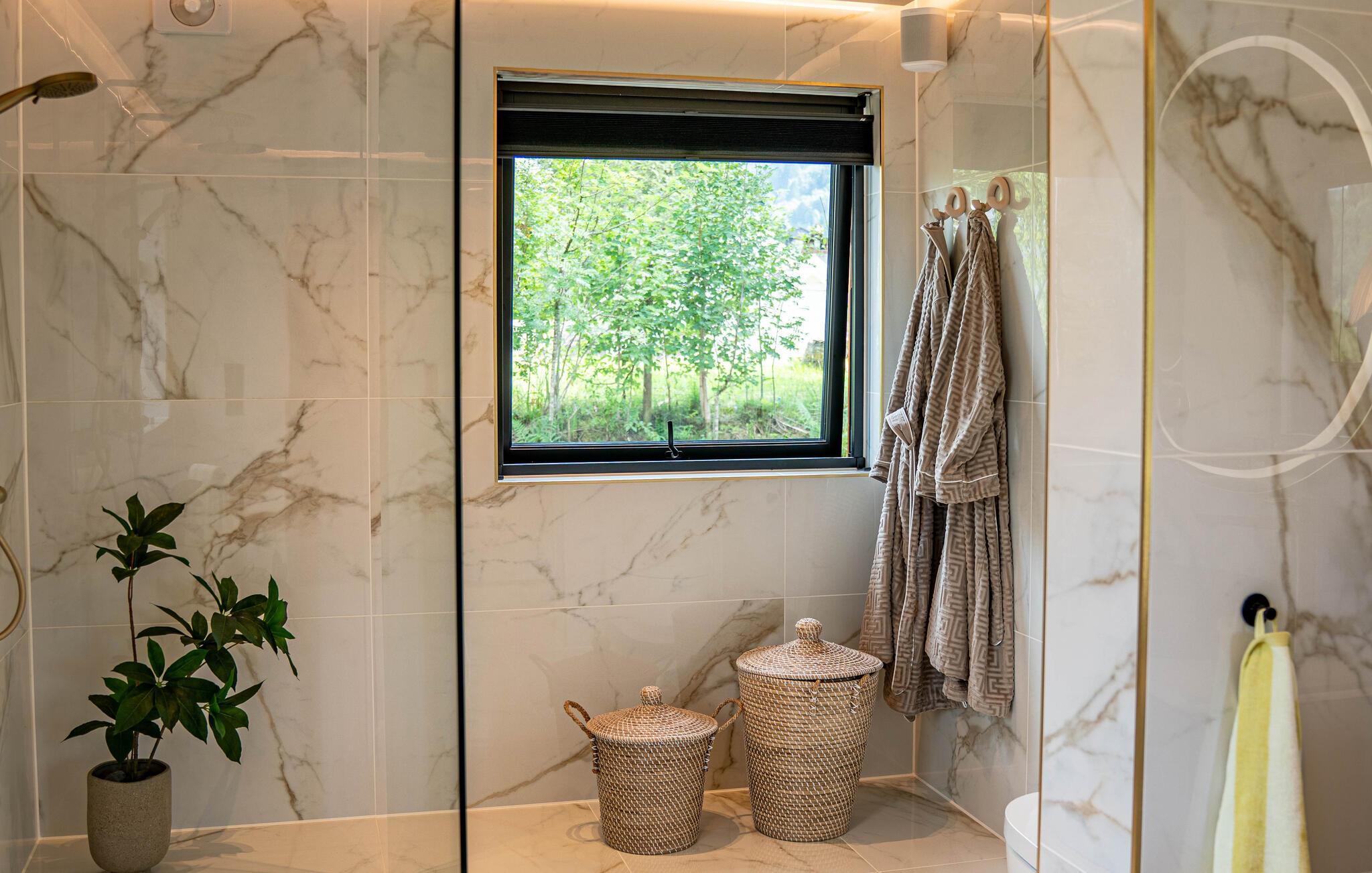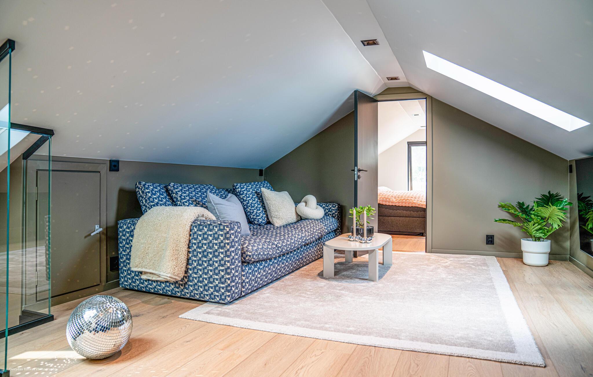 Dette træhus med sine store glasfacader lægger op til en afslappende pause fra hverdagen. lad batterierne op, mens I nyder panoramaudsigten over landskabet, og fordyb jer fuldt ud i feriefølelsen. Læn jer tilbage i den behagelige sofa, lyt til de seneste hits eller stream en god serie. Tilbered lækre måltider sammen og server dem med et glas vin.