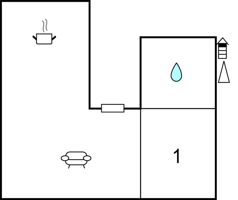 Opholdsstue/køkken - 1 Soveplads. (Sofa, madras eller lignende).
