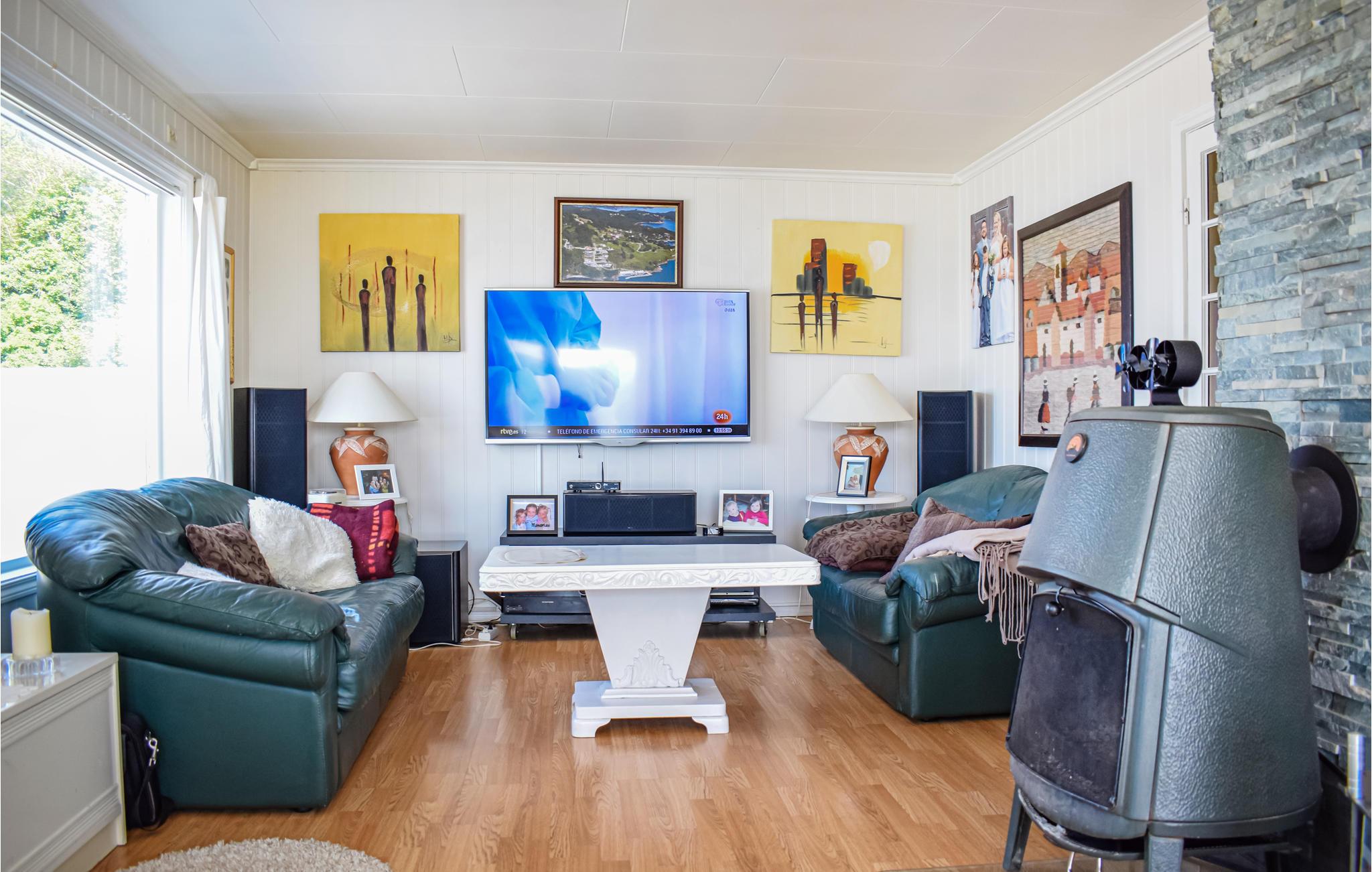 Huset tilbyder en stor, solrig terrasse mod syd og øst, hvor du kan nyde en fantastisk panoramaudsigt over fjorden og de omkringliggende bjerge. De fremragende fiskeribetingelser har gjort området meget populær blandt hobby- og lystfiskere fra ind- og udland, så her er alt for dem, der vil prøve fiskelykken i løbet af ferien. Huset er også et godt udgangspunkt for dagsture til kulturbyerne Haugesund og Bergen.
