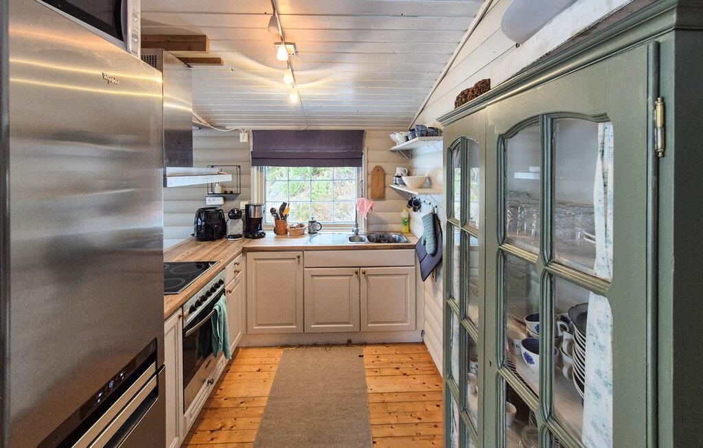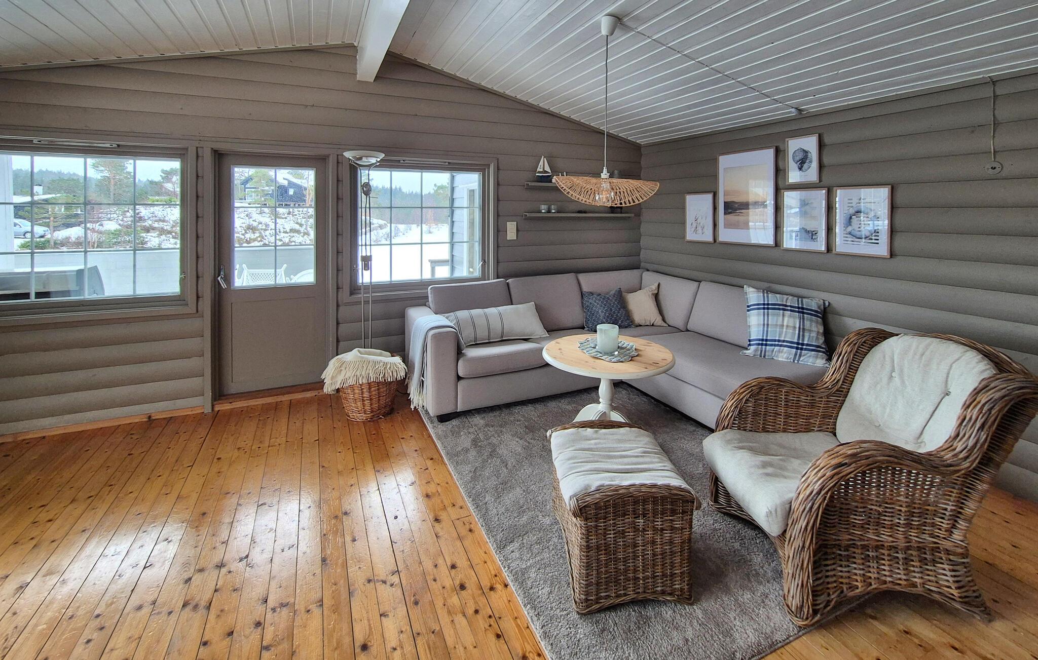 Dette hus tilbyder ikke kun smuk havudsigt, men også en hyggelig atmosfære med masser af træ og charmerende detaljer. Find jer til rette foran den knitrende brændeovn og nyd afslappende timer på sofaen. Lav mad sammen i køkkenet og afslut aftenen med en filmaften.