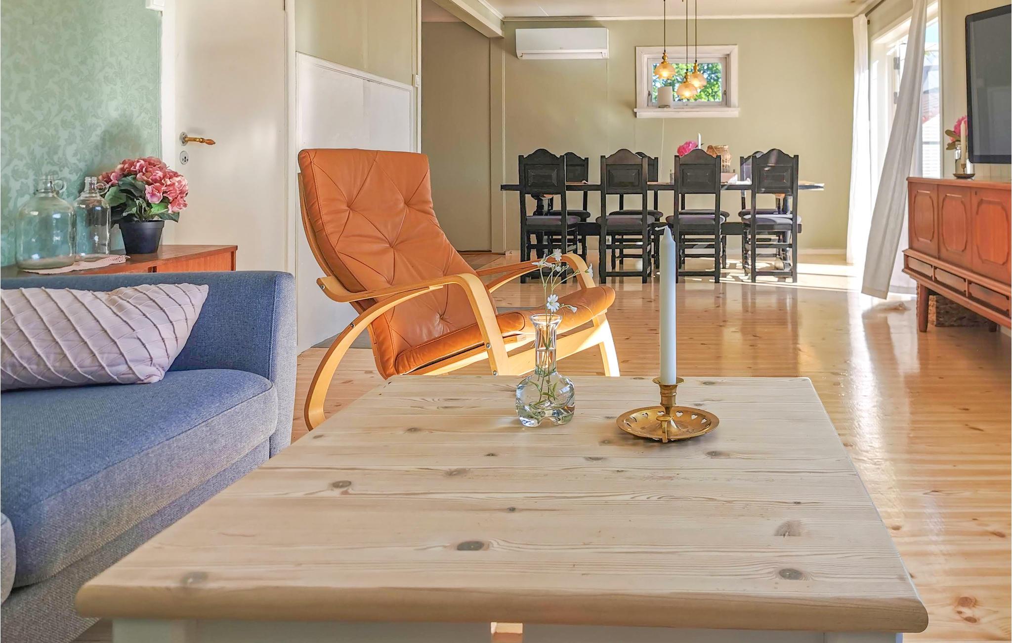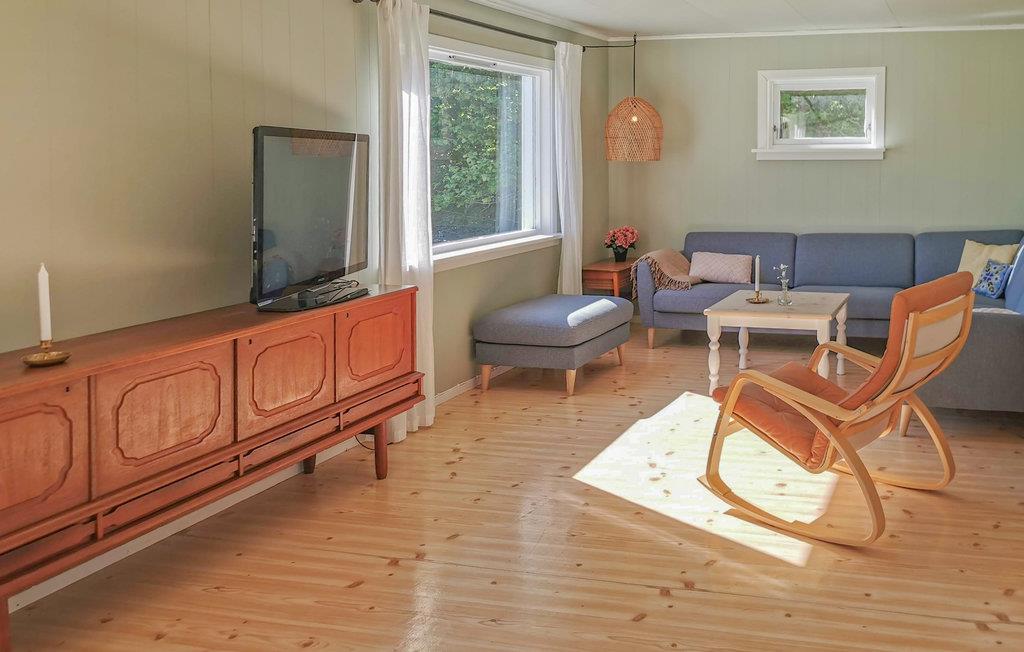 Dette feriehus er charmerende dekoreret med bløde farver og pæne møbler. Her går ny og ældre indretning hånd i hånd og skaber en fantastisk ramme. I stuen kan du se ud over omgivelserne og planlægge de næste dages aktiviteter.