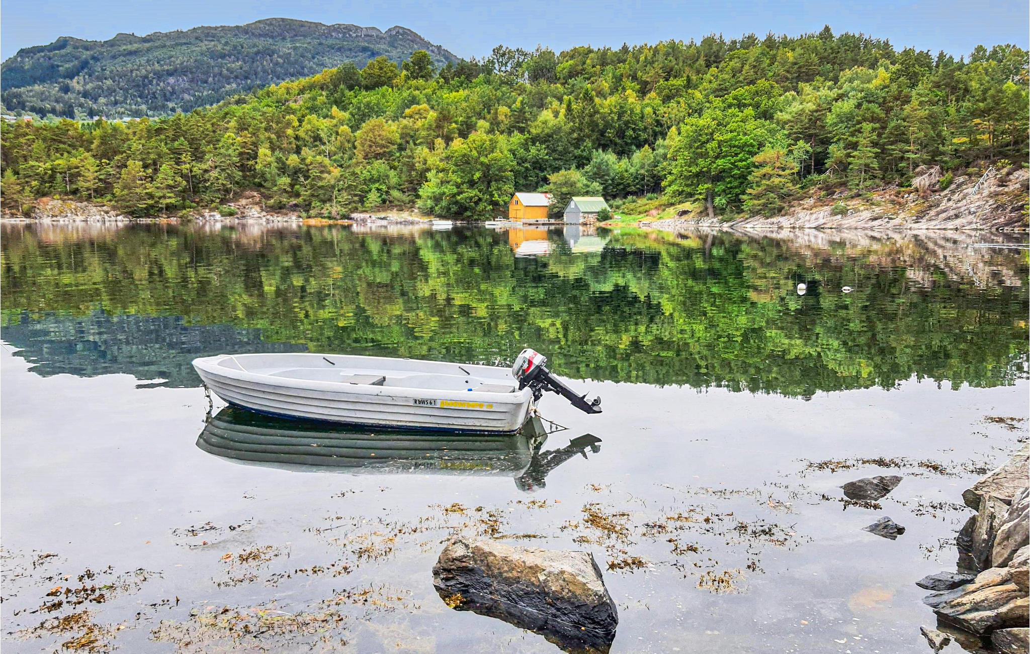 Fra feriehuset er der kun en kort gåtur til Gjerdvågen med gode svømmemuligheder. Det er også rart at prøve lykken med at fiske fra land i nærområdet. Ønsker du at tage på vandreture i ferien, er der gode vandremuligheder i kuperet terræn i både skove og marker samt topvandringer som Borgundnuten med en fantastisk udsigt til fjorde og bjerge. Ellers er der kun en kort køretur eller en længere gåtur til købmanden i havneområdet. En færgetur væk er den lille by Stord med butikker, golfbane og Sunnhordaland Museum. For flere oplevelser kan du tage færgen til Kvinnherad med attraktioner som Baroni Rosendal, Folgefonnsenteret og Bondhusbreen. Fortsæt til Hardangerfjorden på nationale turistveje i smukke naturlige omgivelser.