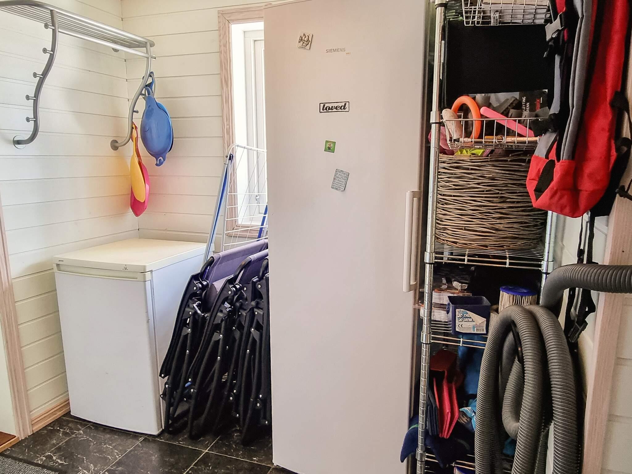 Når du entrer hytta, vil du finne stue med TV og salong inn til høyre. Kjøkkenet har alt nødvendig utstyr til selvhusholdning. Fra stuen går vi ut i gangen, hvor vi finner bad nr. 1 med dusj og badstue. Bad nr. 2 har dusj og vaskemaskin. Opp trappen til andre etg. er det en romslig tv-stue med utgang til liten terrasse. Hytta er bygd slik at 2 bad befinner seg mellom oppholdsrom og soverom.