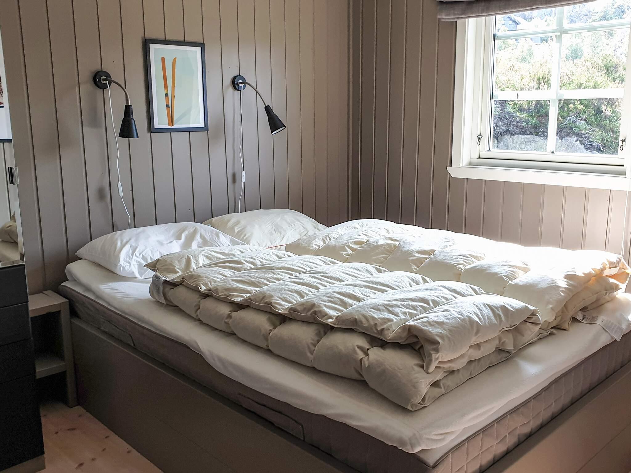Hytta inneholder hall, badstu, stue og kjøkken i åpen løsning. Velutstyrt til selvhusholdning. Soverom med dobbeltseng. To soverom i 1 etg. og tre i andre etg. Fra stuen er det direkte utgang til terrassen. Stuen inneholder salong og spisebord for 10 pers. I hyttens andre etg. er det en loftstue med TV. Totalt soveplass til 10 pers.