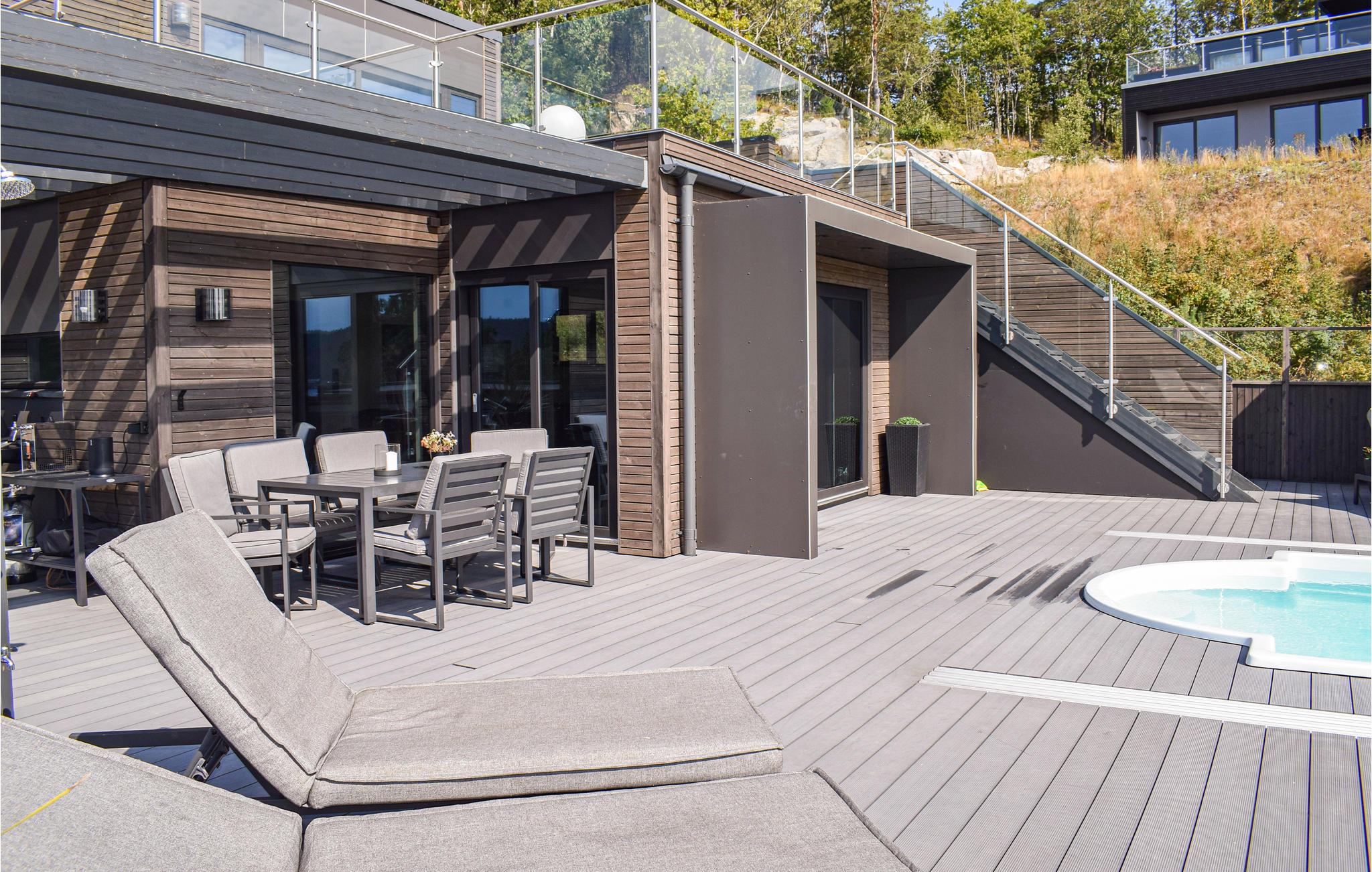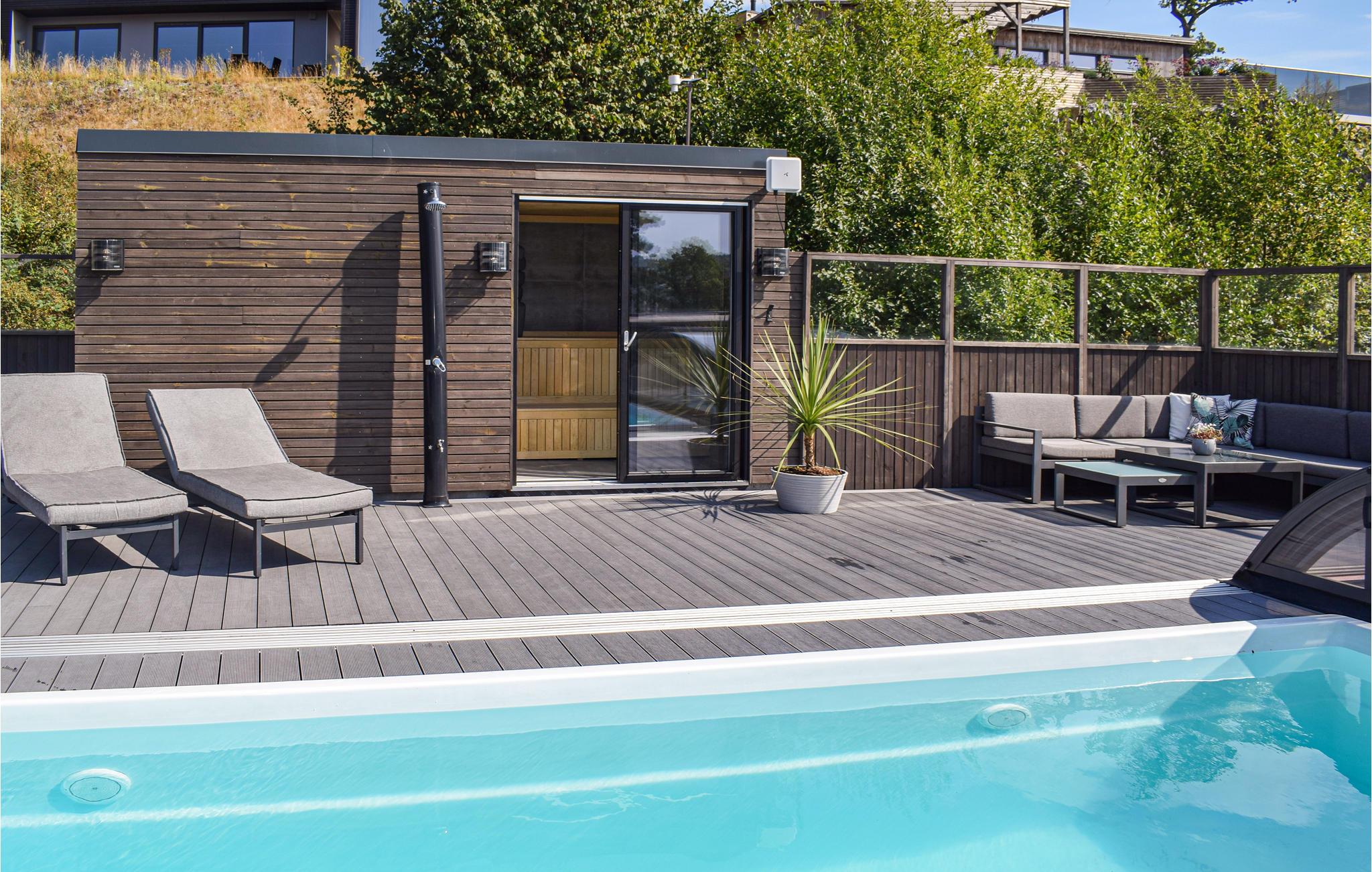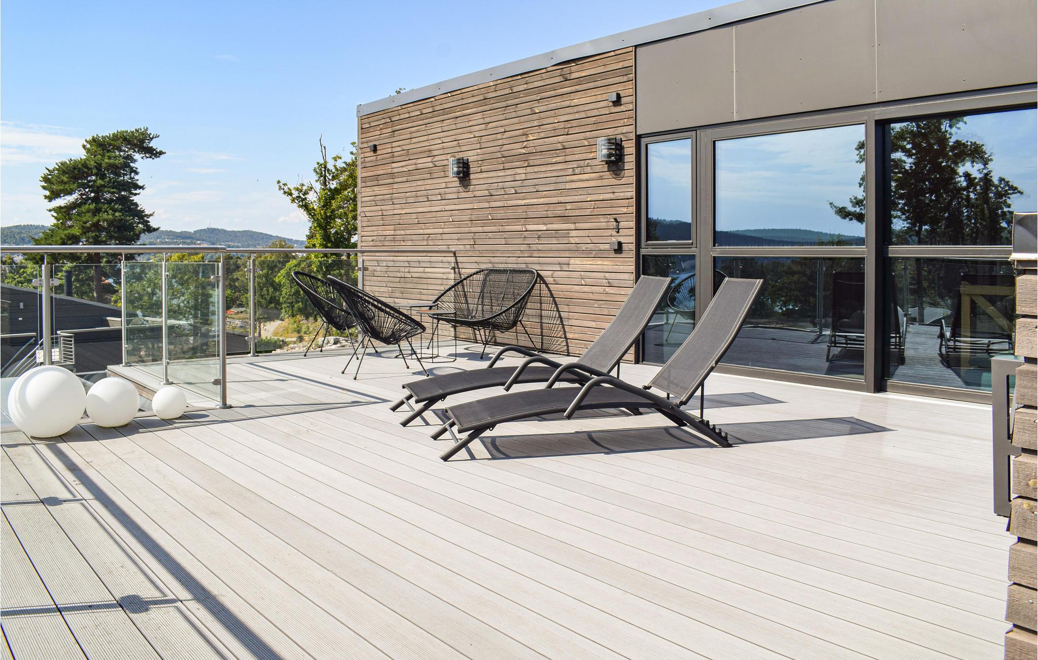 Et fantastisk udendørsområde med opvarmet pool venter også på jer. Tilbring mange timers sjov i vandet her. Der er også en sauna, hvor I kan få varmen efter en lang travetur. En stor tagterrasse er prikken over i'et. Herfra kan I nyde udsigten til havet og slappe af i de komfortable havemøbler.