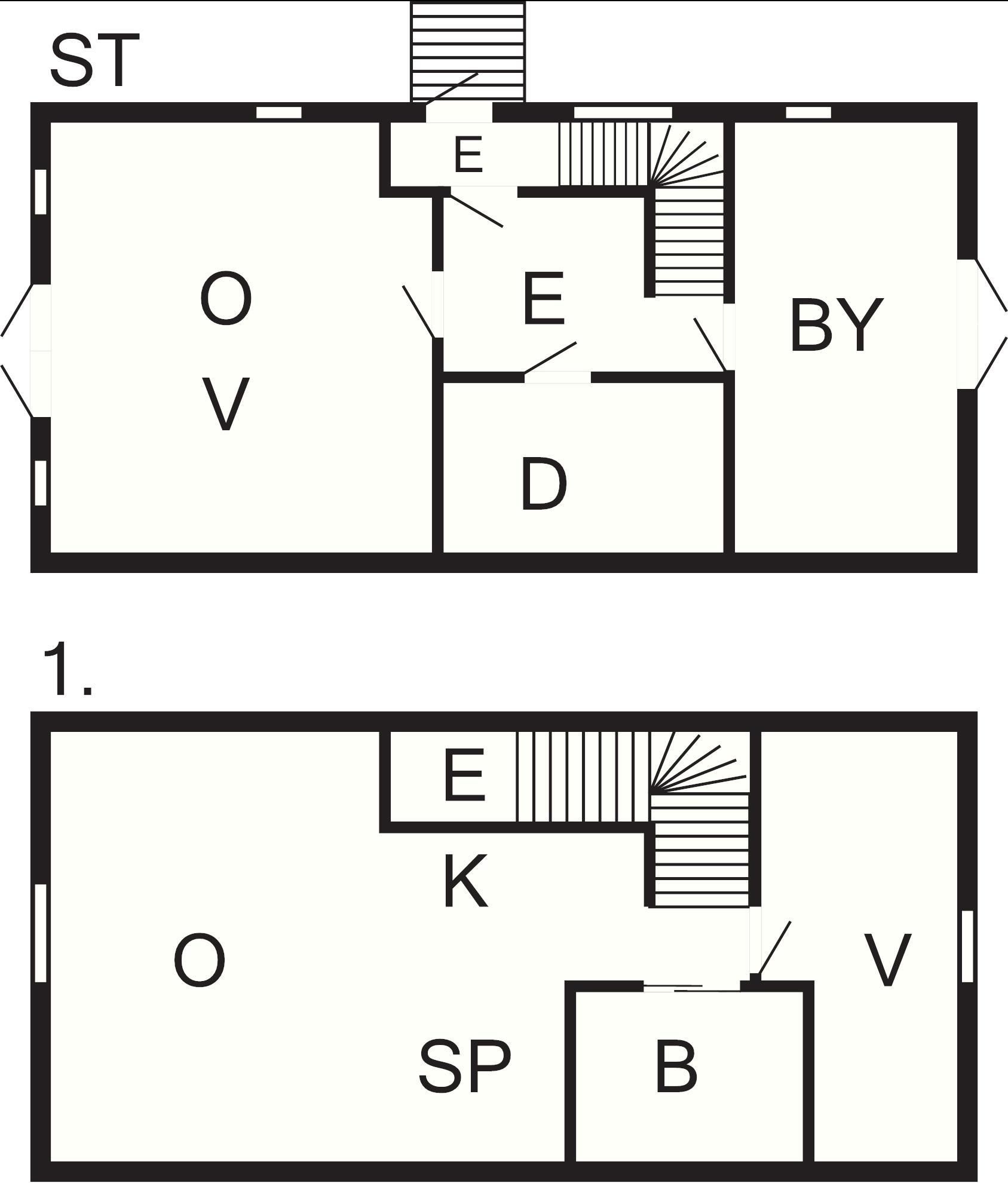 2 Soveværelser: (1DS+2S)+(1S+1DO), barneseng