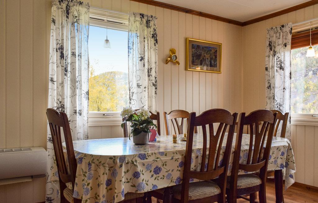 Nyd jeres næste ferie i uberørt natur og med kilometerlange stier, fiskesøer og rigt dyreliv. I Bygland hvor dette feriehus ligger, er det lige netop det I kan se frem til. Fra feriehuset er der en flot udsigt fra både terrasse, stue og køkken. Grunden huset ligger på er stor og ugenert og med en fantastisk udsigt over denne del af Setesdalen. Elva Otra slynger sig ned i dalens bund, med gode fiskemuligheder. Kør videre ad vejen der fører til huset og parker, og gå videre af herlige stier indover vidden, hvor der er elge, hjorte, rådyr og rovfugle. I kan også tage på jeeptur om sommeren og tur på snescooter om vinteren. Fra huset er der udsigt til Straumsfjellet med Via Ferrata, som er populært til klatreture. Der er kun ca. 20 minutter til Brokke skisenter hvis I kommer om vinteren.