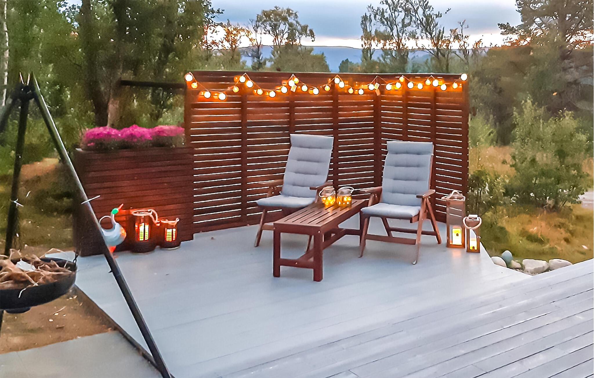 Start jeres dag på terrassen, når vejret er varmt, find et solrigt eller beskyttet sted til morgenmad, læsning eller blot afslapning. Nyd roen og observer de mange fuglearter. Om aftenen kan I samles omkring bålstedet eller bruge grillen til et måltid under åben himmel.