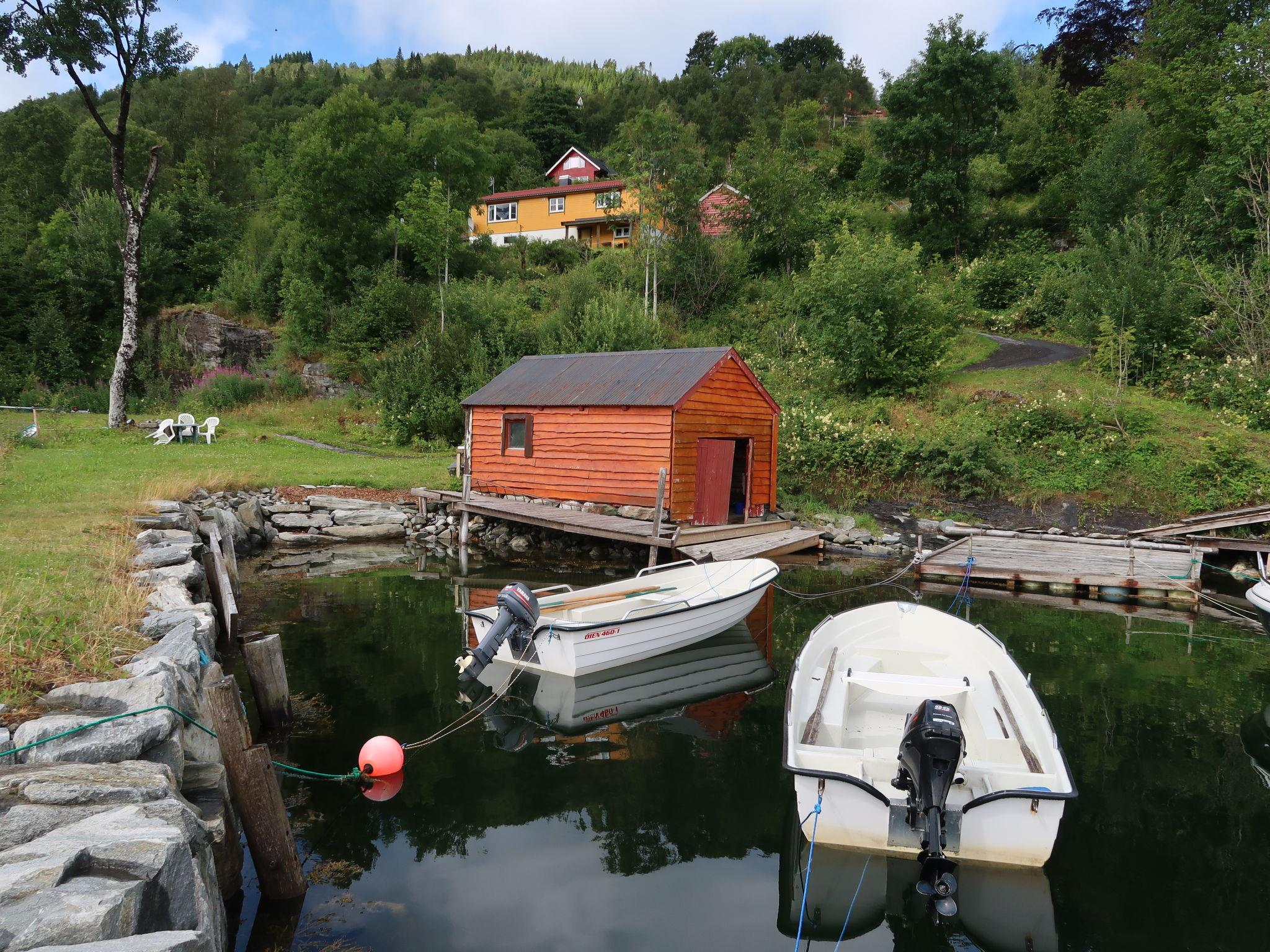 Certified fishing house "Nausthammar". 3 km from the centre of Davik, 32 km from the centre of Nordfjordeid, 40 km from the centre of Måløy, 25 m from the fijord. Bathing place, fish-processing table. Private: natural state property 2'500 m2 with meadow. Terrace, garden furniture, barbecue. Available: bicycles (2). Motor boat (on order). Motor access to 50 m from the house. 50 m footpath to the house. Single garage. E-charging station. Shop 3 km, supermarket 32 km, bus stop "Davik" 1.9 km, ferry "Bergen" 301 km. Ski lift 30 km, fishing possibilities 25 m. Well-known ski regions can easily be reached: Harpefossen 30 km.
