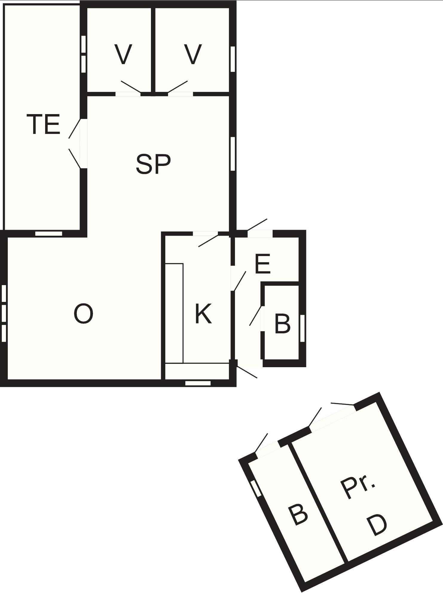 2 Soveværelser: (2K)+(1DS+1K)