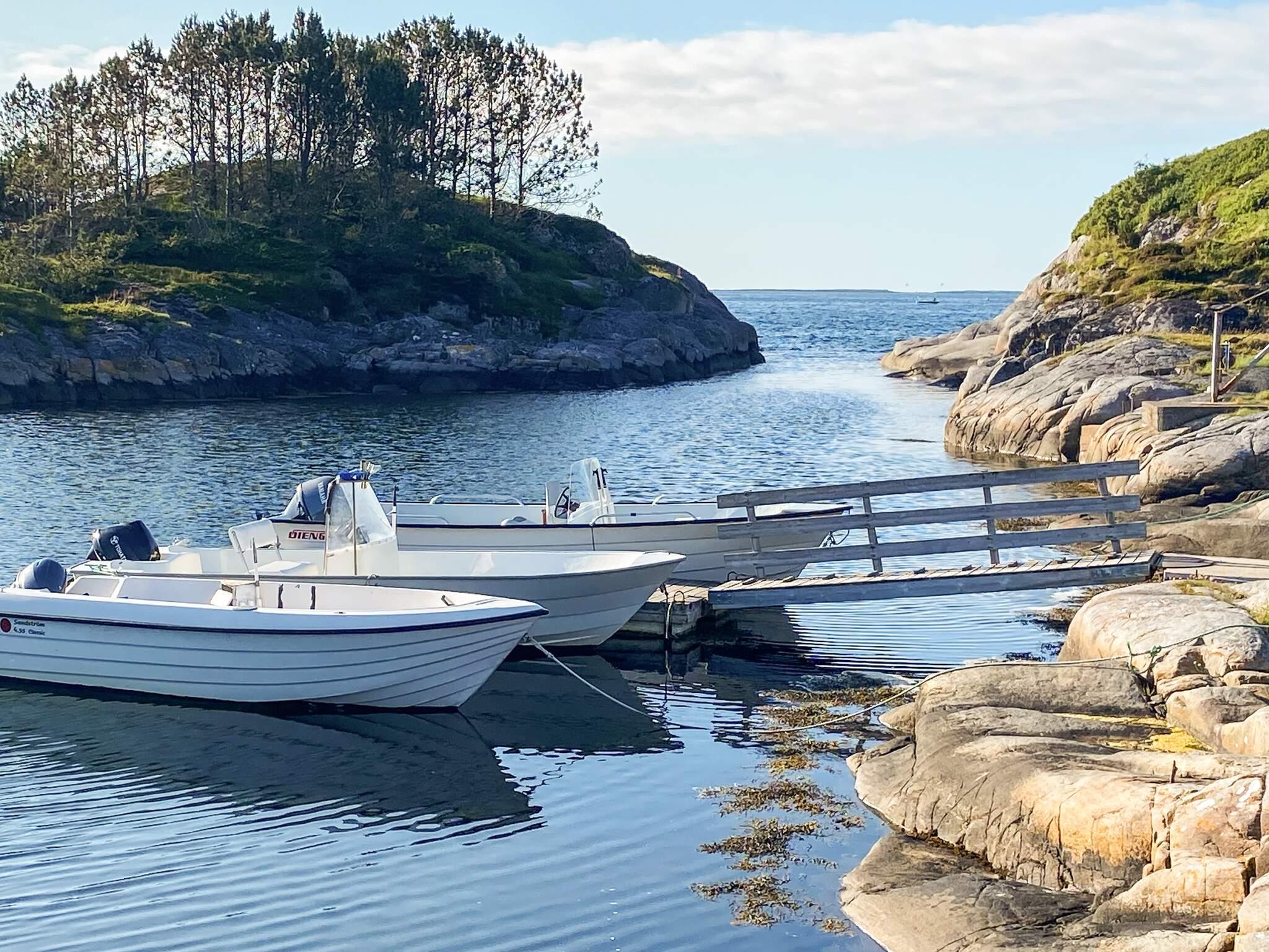 Alle båtene ligger ved flytebrygge 300 meter fra feriehuset. Flytevester kan leies.