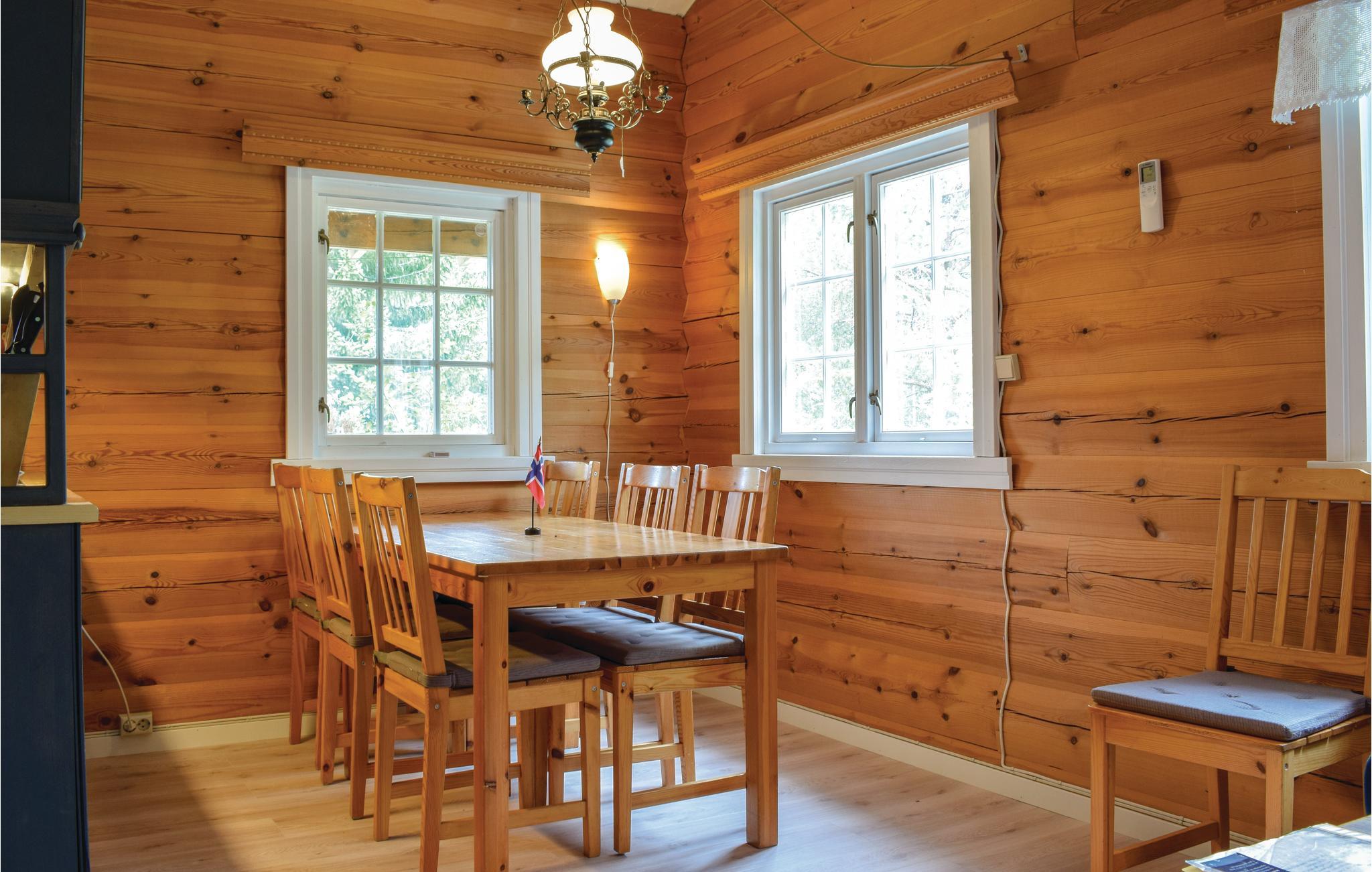 Pænt, veludstyret feriehus i træ med en fin beliggenhed kun 20 m fra Tveitevatnet og med en fantastisk panoramaudsigt. Udsigt over vandet og bakkerne bagved. Gode fiskemuligheder for de fiskeglade, der kan forsøge at få aftensmaden på krogen, og kun 100 m til badestrand. Godt udgangspunkt for bilture til Odda, Haugesund, Rjukan eller Hedda.