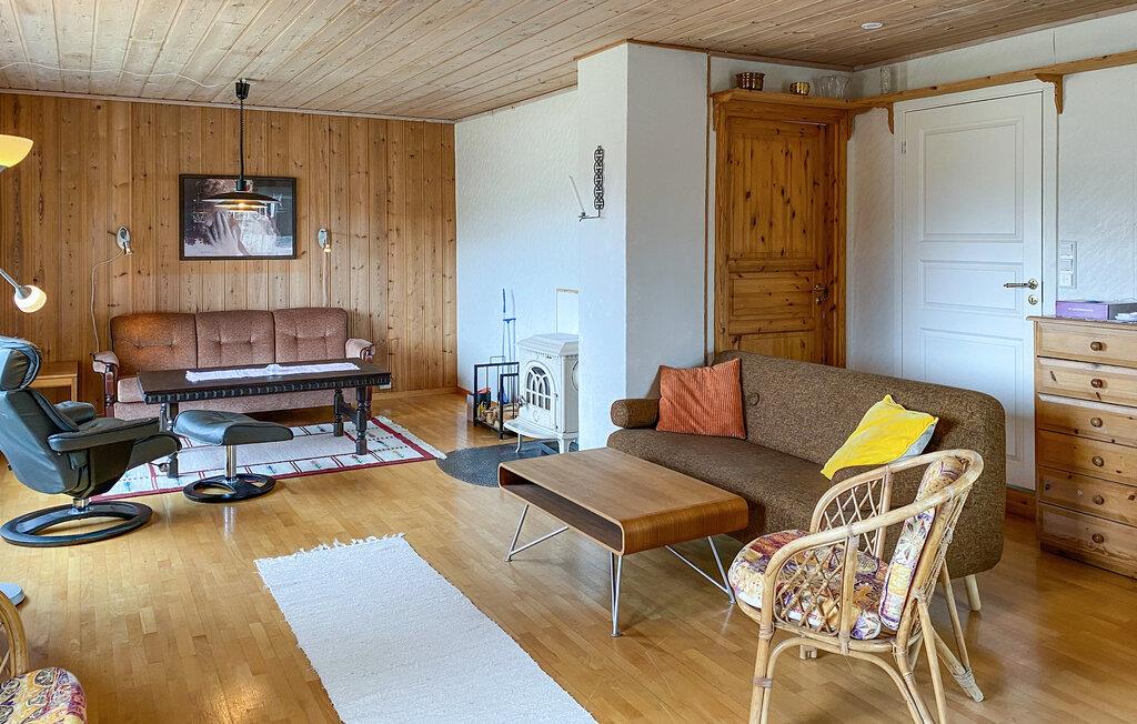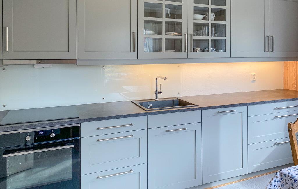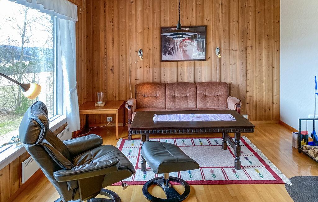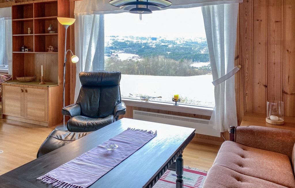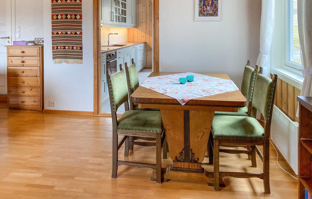 En ferie med fred, ro og masser af smuk natur. Det er, hvad der venter jer i denne indbydende bolig, der ligger tæt på Eidsvåg og har en enormt fin udsigt til bjergene. Indretningen fremtræder både lyst og venligt med let rustikke møbler og gode faciliteter, der gør det nemt at sænke skuldrene og bare nyde det lave ferietempo. Lad amatørkokkene kræse om madlavningen i det funktionelle køkken, mens andre dækker op til den store middag ved spisebordet. Senere kan I tænde op i brændeovnen og rykke over i sofaen med brætspil eller en god film, mens I lægger planer for de kommende dage.