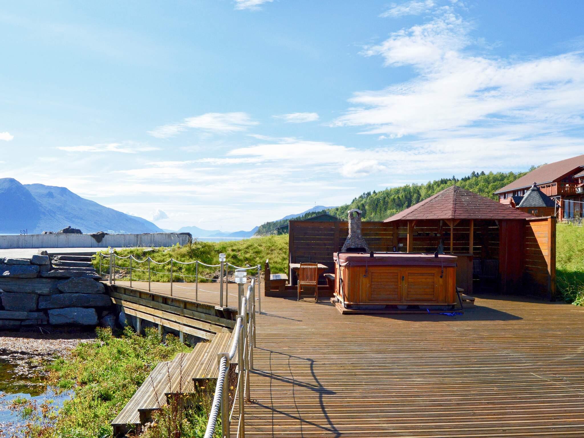 Fint feriested med felles svømmebasseng, direkte ved fjorden omgitt av et fantastisk fjord- og fjellandskap. Flott ferieleilighet med sauna, kombinert stue og kjøkken. I stuen er det bl.a. en dobbel sovesofa og soverommet har delbar dobbeltseng. Utenfor er det en 12 kvm terrasse, i tillegg til 4.000 m² fellesareal til ballspill og område med sandkasse og lekeapparater for småbarn. 50 m til felles 200 m² terrasse med badestrand, grill og grillhytte. På forespørsel kan grillhytte og boblebad leies. Felles utendørs 50 kvm svømmebasseng, åpent daglig kl. 12-18.00, i tiden 20.6-5.9. Temperatur 20-26 grader, væravhengig. Eidsvåg, 3 km, med alle servicetilbud. God lakseelv, Eira, 22 km. Ørretvannet Målsvatnet, 9 km. 5-10 min. med båt til de beste fiskeplassene. Fisketilberedningsplass i eget bygg, ca. 50 m unna.