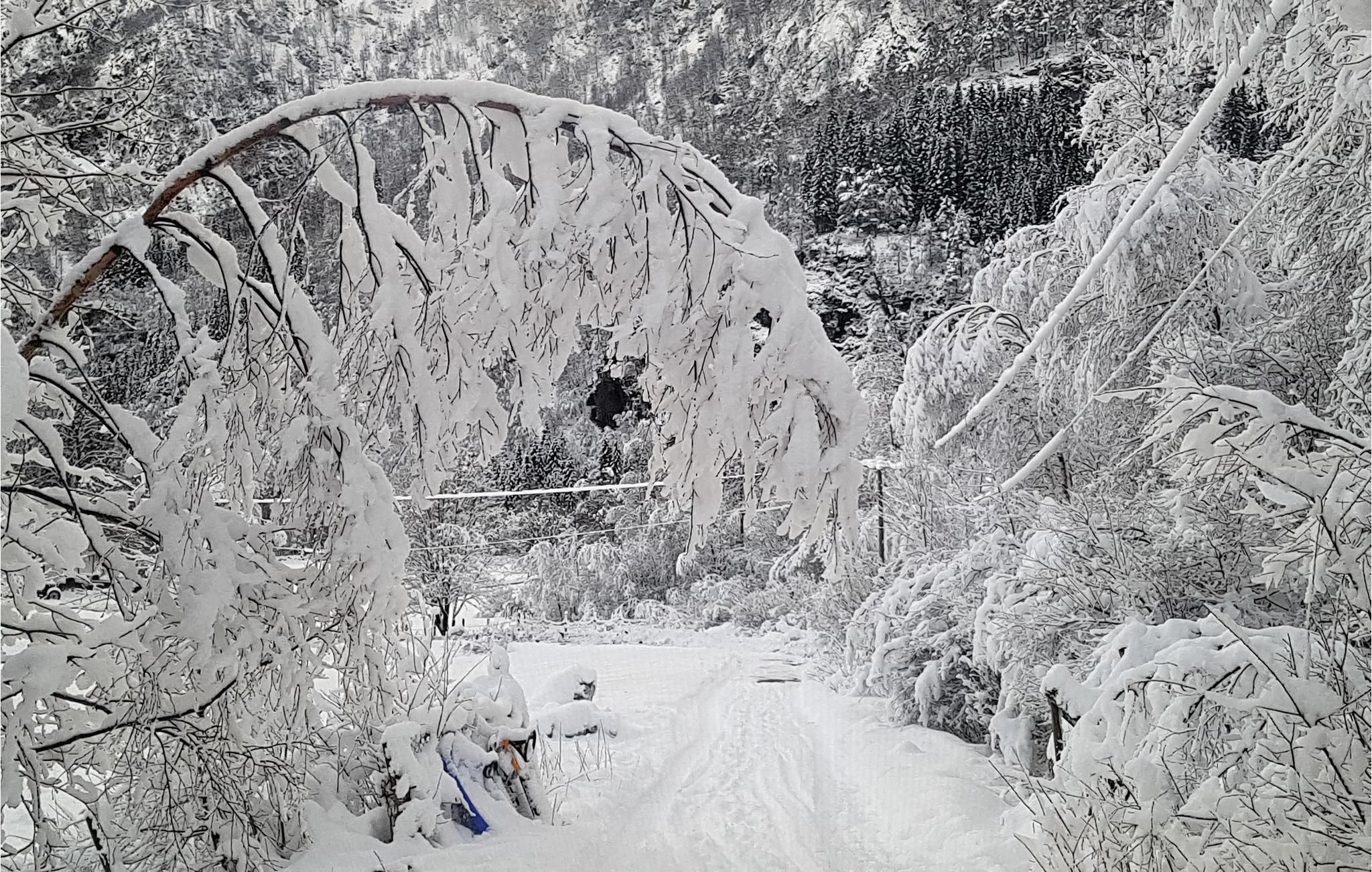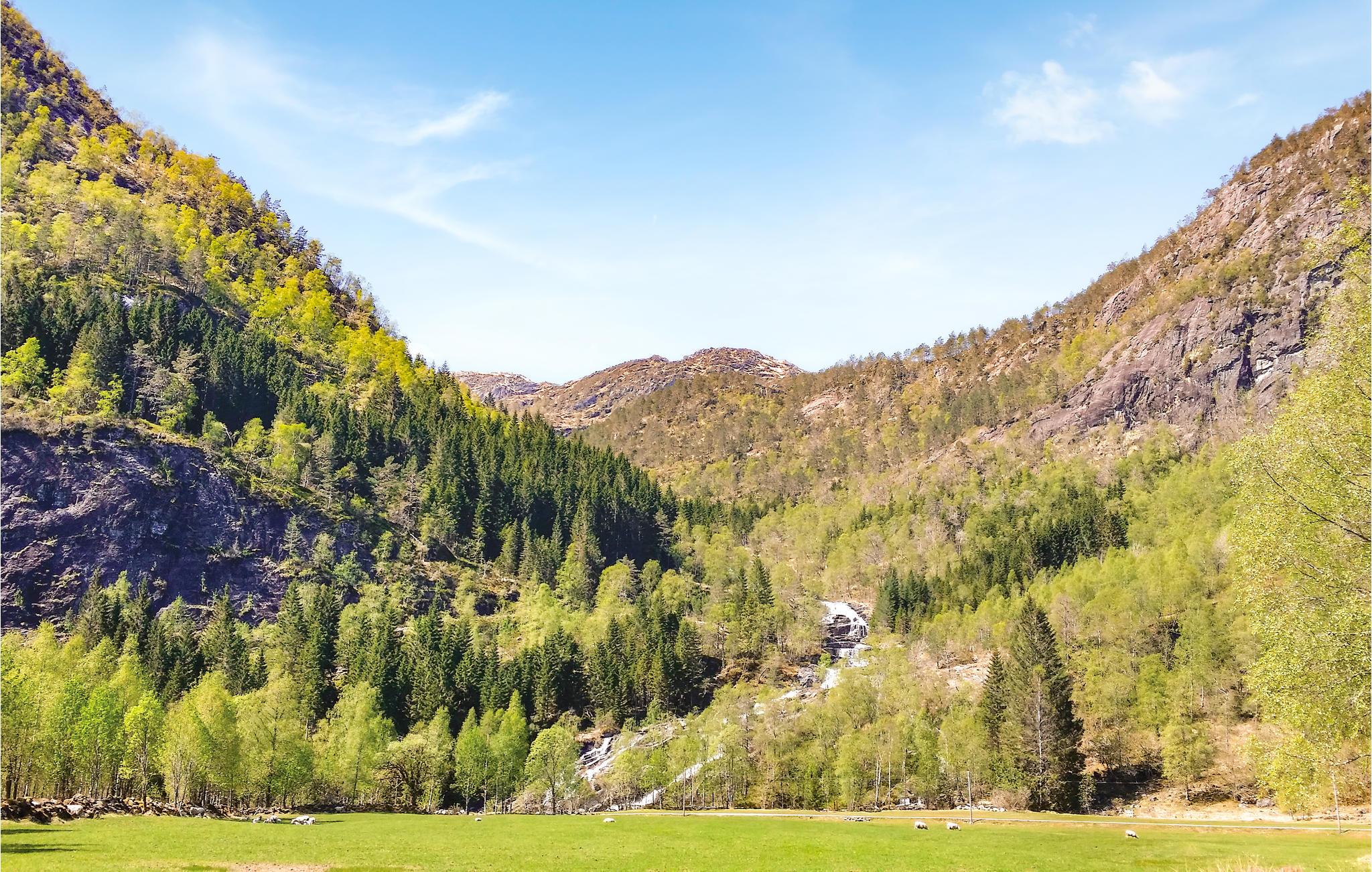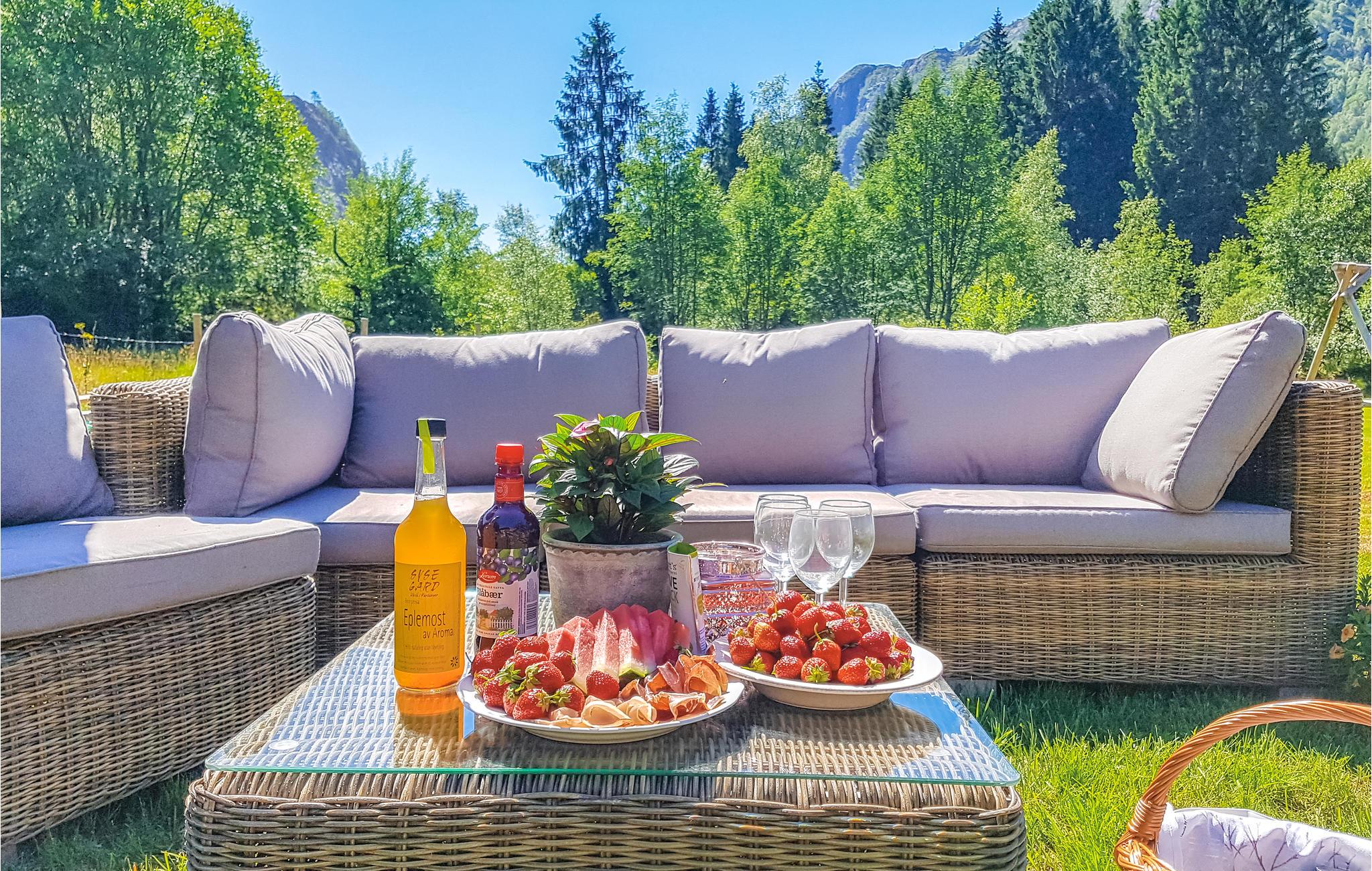 Dette giver huset en meget charmerende og næsten magisk atmosfære. Det ligger i lige så specielle omgivelser - lige midt mellem fjelde og en god fiskeelv. I elven er der fanget laks på over ti kilo. Der stilles ikke krav om fiskekort. De stejle fjelde er et yndet mål for erfarne klatrere om sommeren. Husets ejer har en sæter på fjeldet, som I kan benytte. Den ligger ca. en times vandring fra huset.