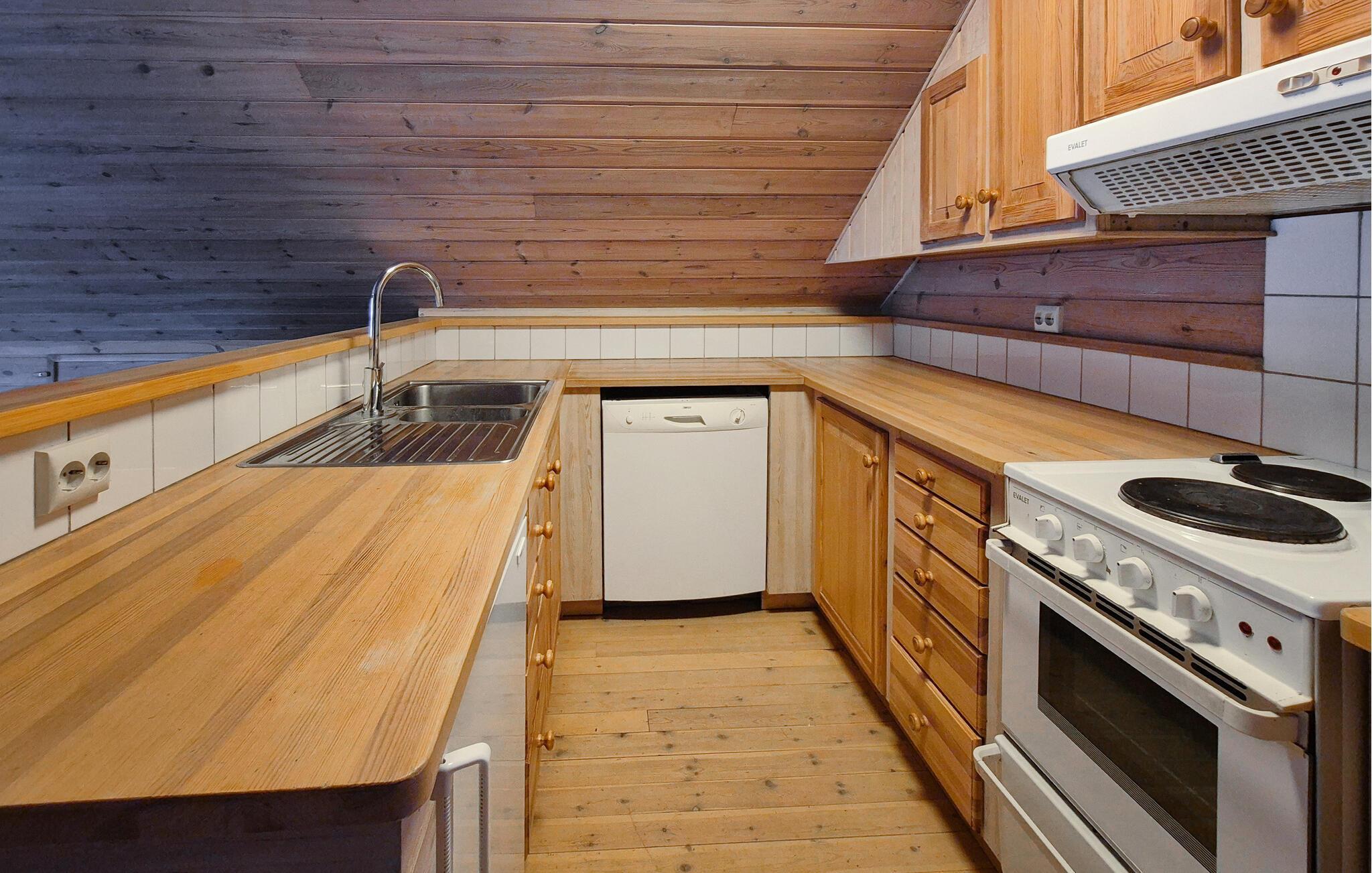 Nyd udsigten over fjorden og afslappende dage lige ved vandet. Tilbring jeres ferie i dette kompakte feriehus med bådgarage, anløbsbro og en fantastisk udsigt over de omkringliggende bjerge. Glæd jer til en hyggelig atmosfære indenfor med masser af træ og nordisk charme. Den åbne stue og spisestue under taget er enkelt, komfortabelt og funktionelt indrettet. Lav mad i det lille køkken i træstil, eller slap af på sofaen efter en aktiv dag. Spisebordet giver plads til fælles måltider med udsigt over fjorden. Gå ud på den store terrasse ved vandet. Sid på liggestolene og nyd roen og lysets spil på bølgerne. Lej en båd og tag på fisketure eller korte udforskninger på vandet. Og brug trampolinen i haven til sjov med hele familien. Vandr i det omkringliggende bjerglandskab og oplev en spektakulær udsigt. Besøg den charmerende by Sand med dens butikker og restauranter. Tag dagsture til den berømte Preikestolen, Lysefjorden eller Kongeparken nær Stavanger. Nyd roen, vandet og den imponerende natur i Ryfylke.