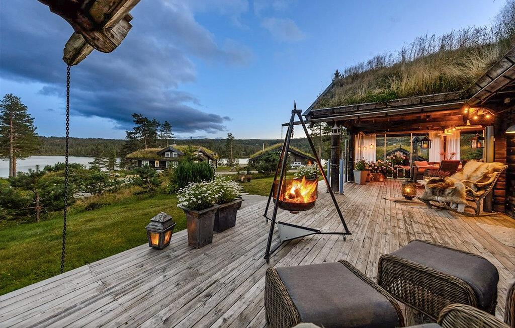 Denne rummelige og komfortable hytte byder jer velkommen ved bredden af ??den maleriske Sandvatnet-sø og er noget særligt med sit hyggelige, smukt udformede interiør. Store vinduer tilbyder udsigt over de charmerende omgivelser, og blød belysning skaber en hyggelig atmosfære. Glæd jer til hyggelige måltider, slap af i saunaen efter en lang dag udendørs og lad de to pejse give ekstra komfort under harmoniske spilleaftener eller stille læsestunder.