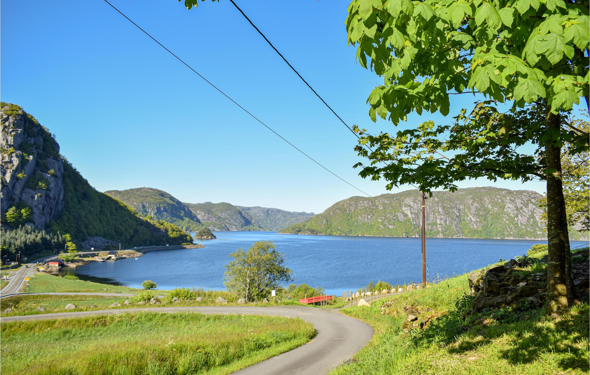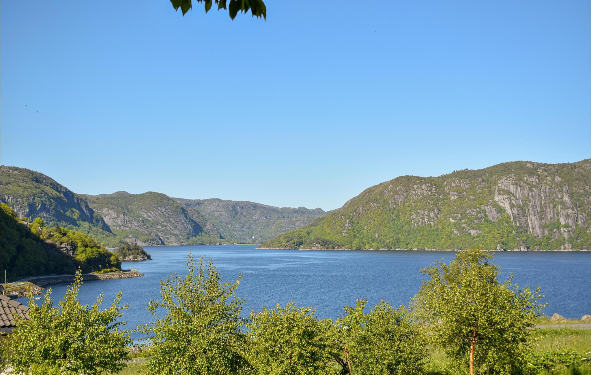 Her får I sol hele dagen om sommeren. Fra feriehuset kan I nyde den smukke udsigt over en del af den smukke fjord og de naturskønne bjerge, der omgiver den. I dette område er der gode fiskemuligheder både i fjorden og havet. Lige under feriehuset ligger en strand. Her er der også en gratis bådplads, hvor enhver lejet eller egen båd kan ligge sikkert. På regnvejrsdage er det godt at vide, at hytten har WiFi og Chromecast på fjernsynet.