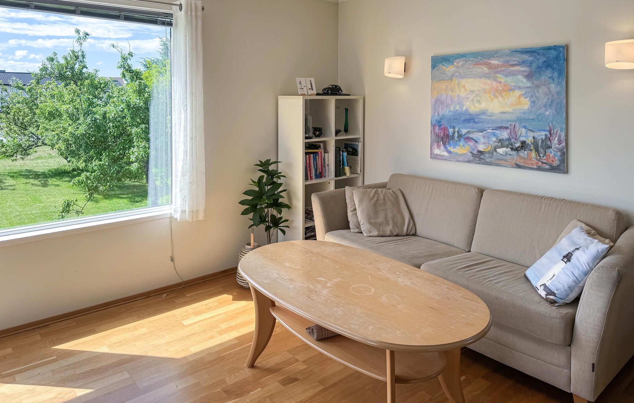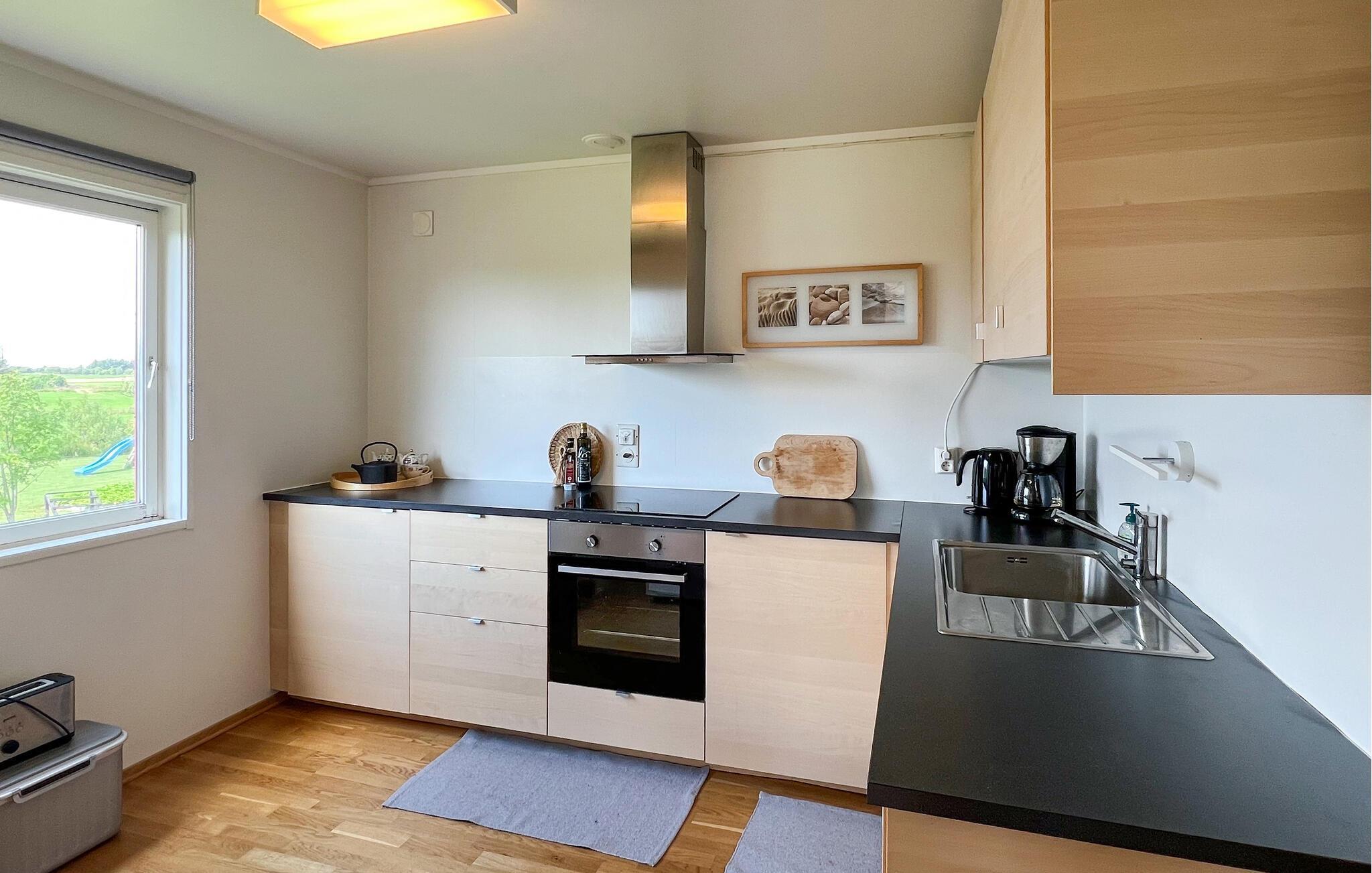 Glæd jer til rolige dage i dette hyggelige hus, der giver jer de ideelle rammer for en afslappende pause. Et varmt trælook, en komfortabel sofa og en brændeovn sørger for, at I straks føler jer hjemme. Start dagen med en duftende kop kaffe, lyt til jeres yndlingsmusik, eller tryl i fællesskab lækre retter frem til hele familien.