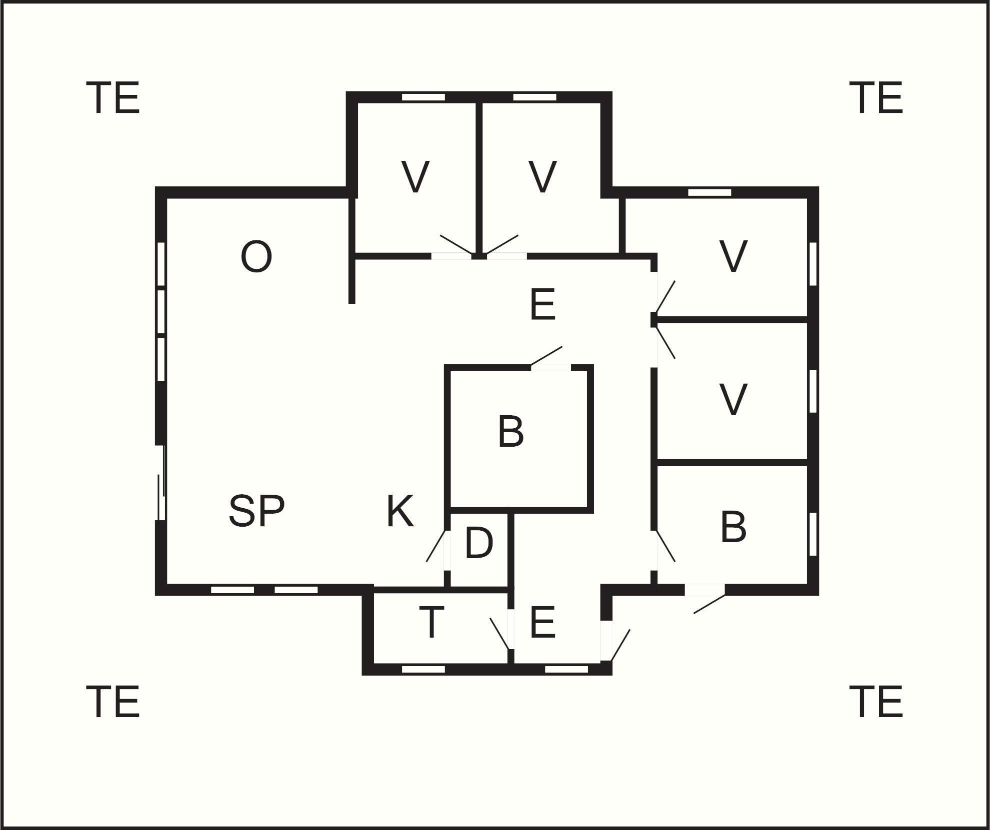4 Soveværelser: (2S)+(1DS)+(1S+2K)+(1DS)