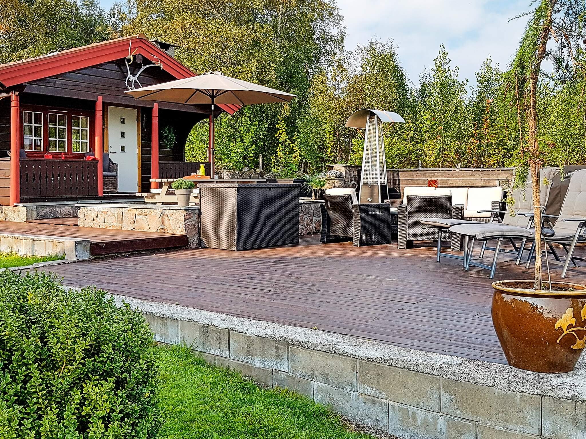 Utenfor er det til sammen 96 m2 åpen terrasse. Badeplass: Langgrunn sandstrand 100 m fra feriehuset. Freielva, 200m fra feriehuset, med små ørret. Nærmeste nabo er huseier, 11 m, uteplass til huseier er på motsatt side i forhold til feriehuset. Avstand til båt, 2 km til småbåthavn. Til leie: Øien530F med 40 HK Honda med GPS/kartplotter/ekkolodd. Flytevester er inkludert i båtleie. Turløyper 0-3 km fra feriehuset.
