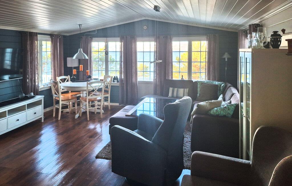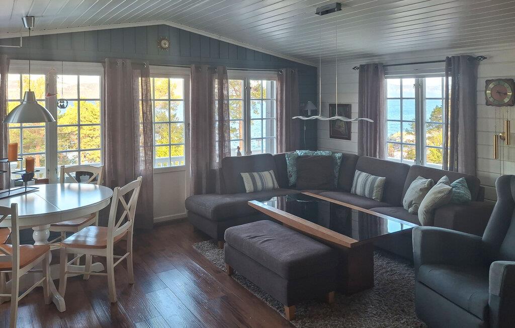 Det varme træ i vægge og lofter skaber en indbydende atmosfære, mens hjørnesofaen og de komfortable lænestole inviterer jer til at slappe af. Sæt jer foran brændeovnen og nyd den knitrende ild på køligere dage. Den åbne spiseplads ligger lige ved vinduet, så I kan nyde udsigten over Trondheimsfjorden, selv mens I spiser morgenmad. Brug fjernsynet til en rolig aften eller tilbring hyggelige timer med stimulerende samtaler. Forbered jeres måltider i det smukke køkken. Lav mad sammen og lad blikket vandre gennem vinduet over vandet og det omkringliggende landskab.