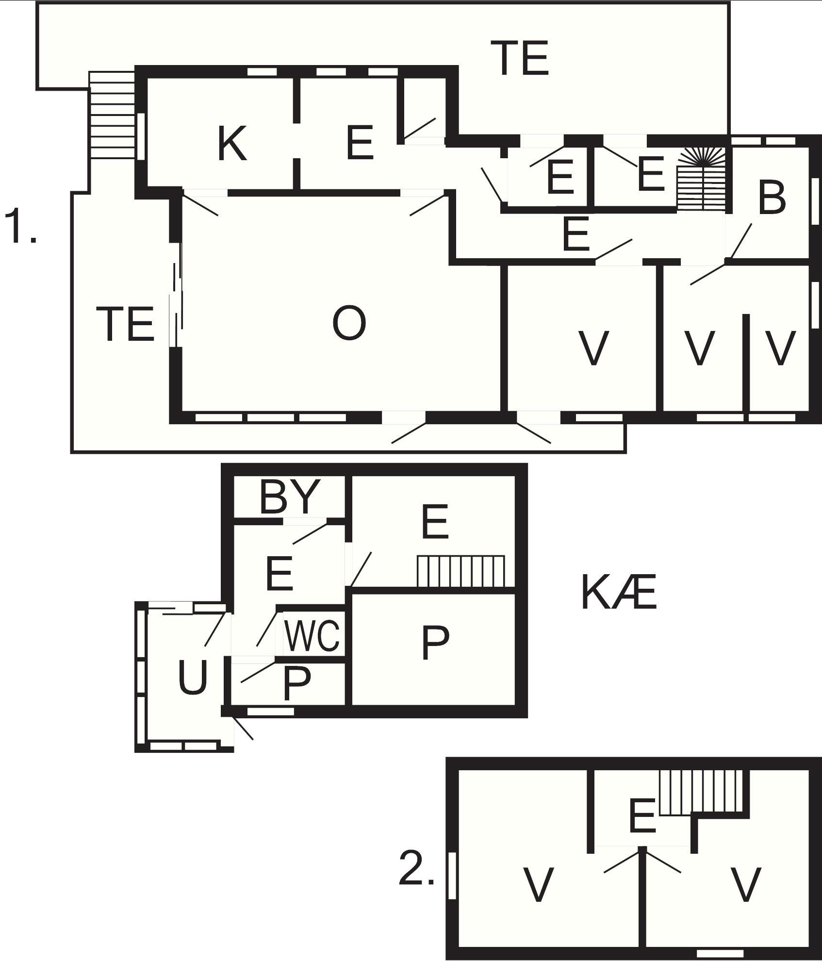 1 Opholdsstue: 45 m2, brændeovn, radio, stereoanlæg, dvd-afspiller, tv, parabol, høj stol