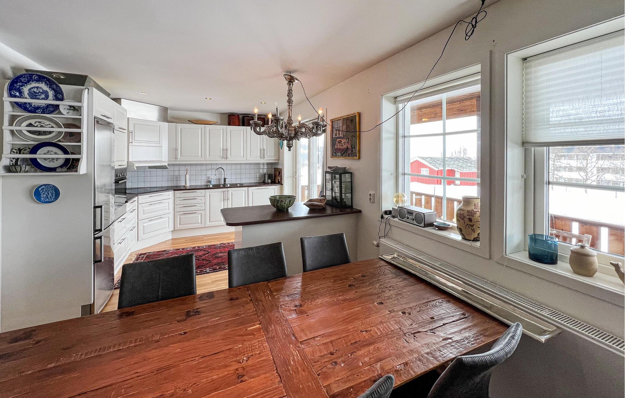 Velkommen til denne indbydende og hyggelige ferielejlighed. Efter aktive timer udendørs kan I og familien slappe af i stuen eller trylle lækre måltider frem til hele familien i køkkenet. Tænd pejsen og hold lange spilleaftener.