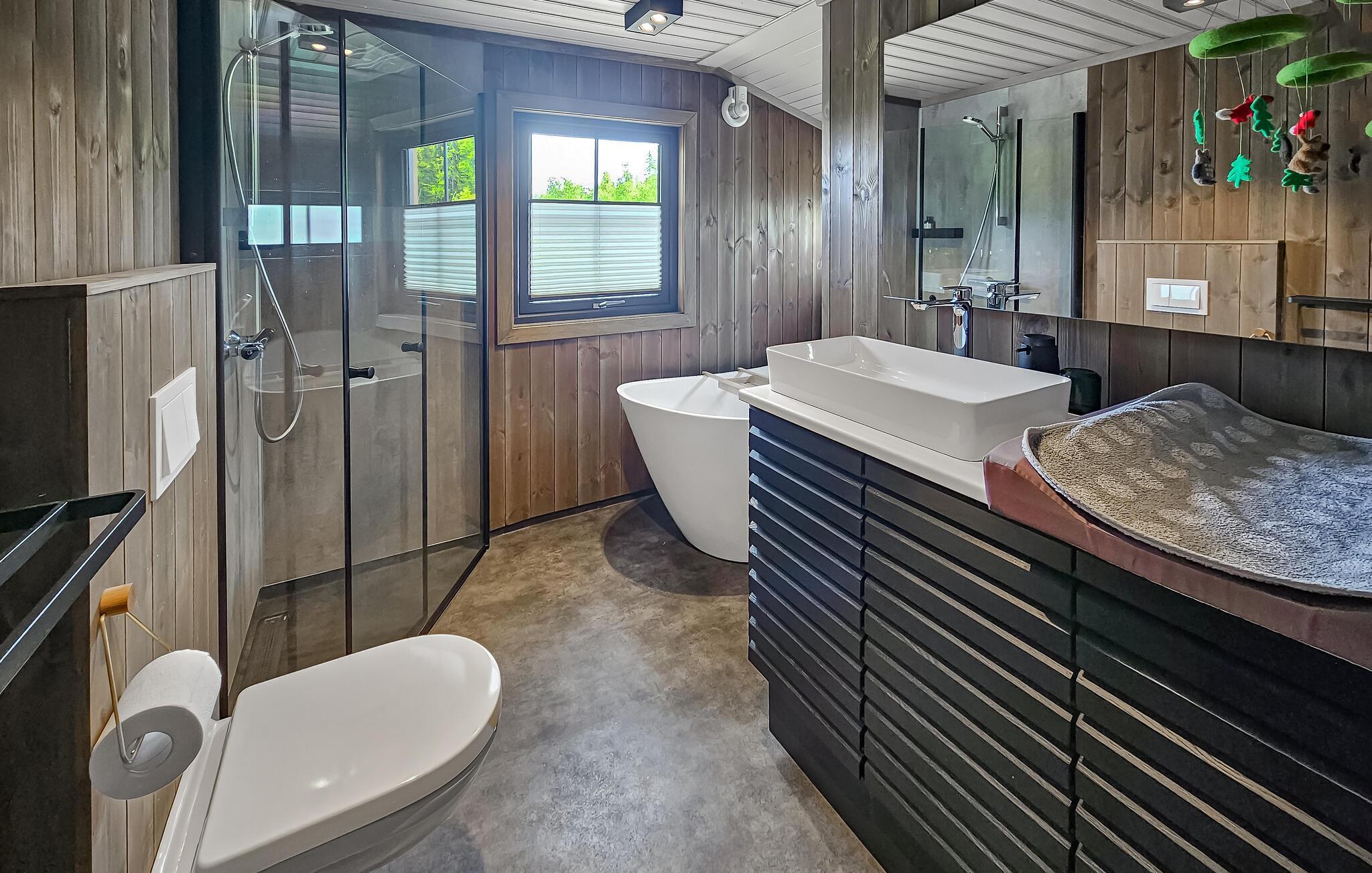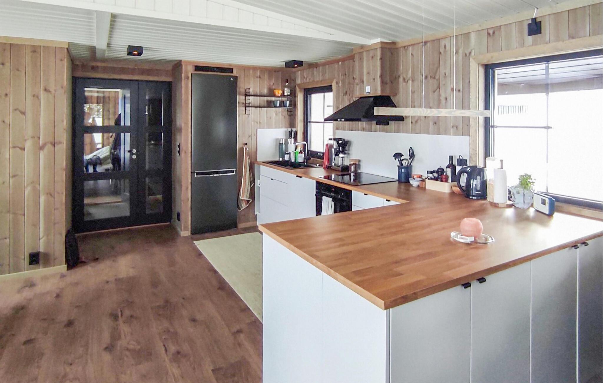 Tag en pause fra hverdagen og glæd jer til årets ferie med familien i dette charmerende træhus. Indretningen fremtræder varmt og rustikt med velholdte træpaneler, gode møbler og mange sprossede vinduer, der giver dejlige lysindfald og en mageløs udsigt til omgivelserne. Tænd op i pejsen, når vinden piber, og tilbered et lækkert måltid mad i det veludstyrede køkken. Efter aftensmaden kan I smide en god film på tv'et eller snuppe en tur i badekarret, mens I lægger planer for de kommende dage.