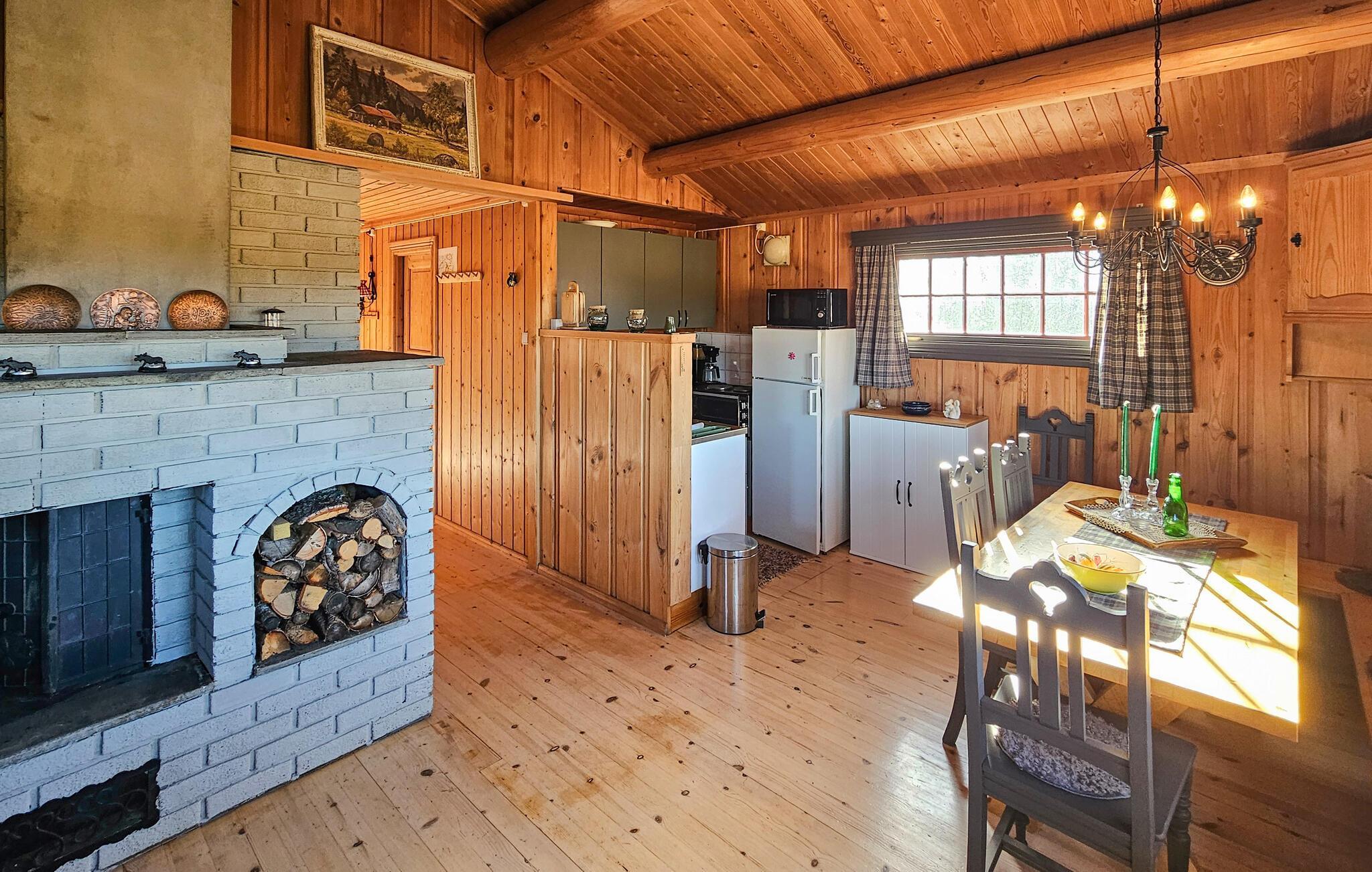 Den smagfuldt indrettede stue, udstyret med en komfortabel sofakrog, lover hyggelige aftener. Slap af med en god bog eller et brætspil, mens brændeovnen spreder en behagelig varme. Den rustikke indretning skaber en indbydende atmosfære, der er ideel til at tilbringe fælles stunder med familien eller venner.