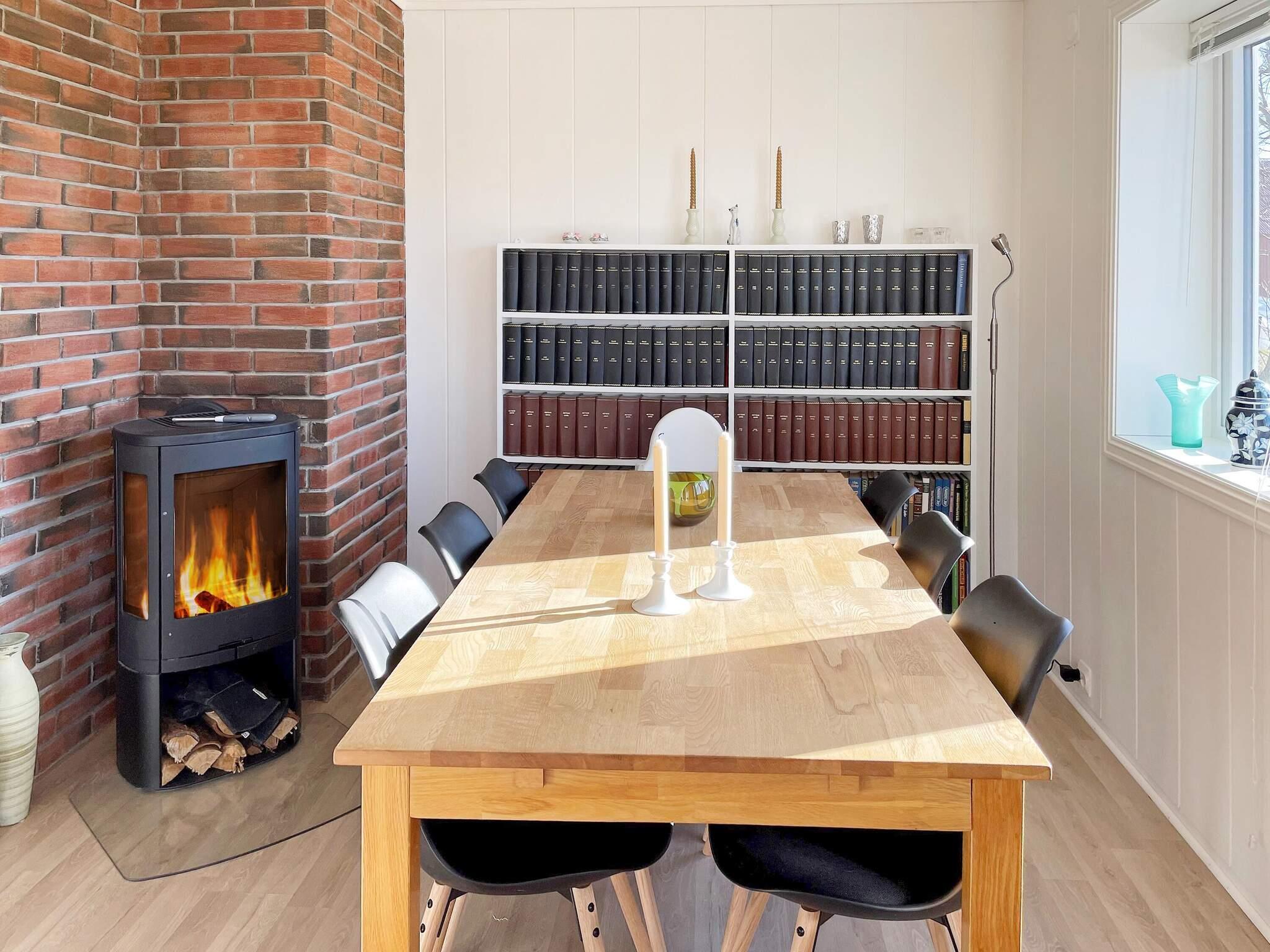 Ferieboligen går over 3 plan. På hovedplan er det et stort og lyst kjøkken, romslig stue med spisebord med utsikt mot havet. Peisovn og varmepumpe luft til luft. Ett stort soverom med dobbeltseng samt bad med WC, dusj, vaskemaskin og tørketrommel. Gratis internett fiber 100 MBits, TV via Apple-tv. TV-kanaler ARD, ZDF, TV2 og NRK. Fra stuen kommer man ut på en stor terrasse med hagemøbler og kullgrill.