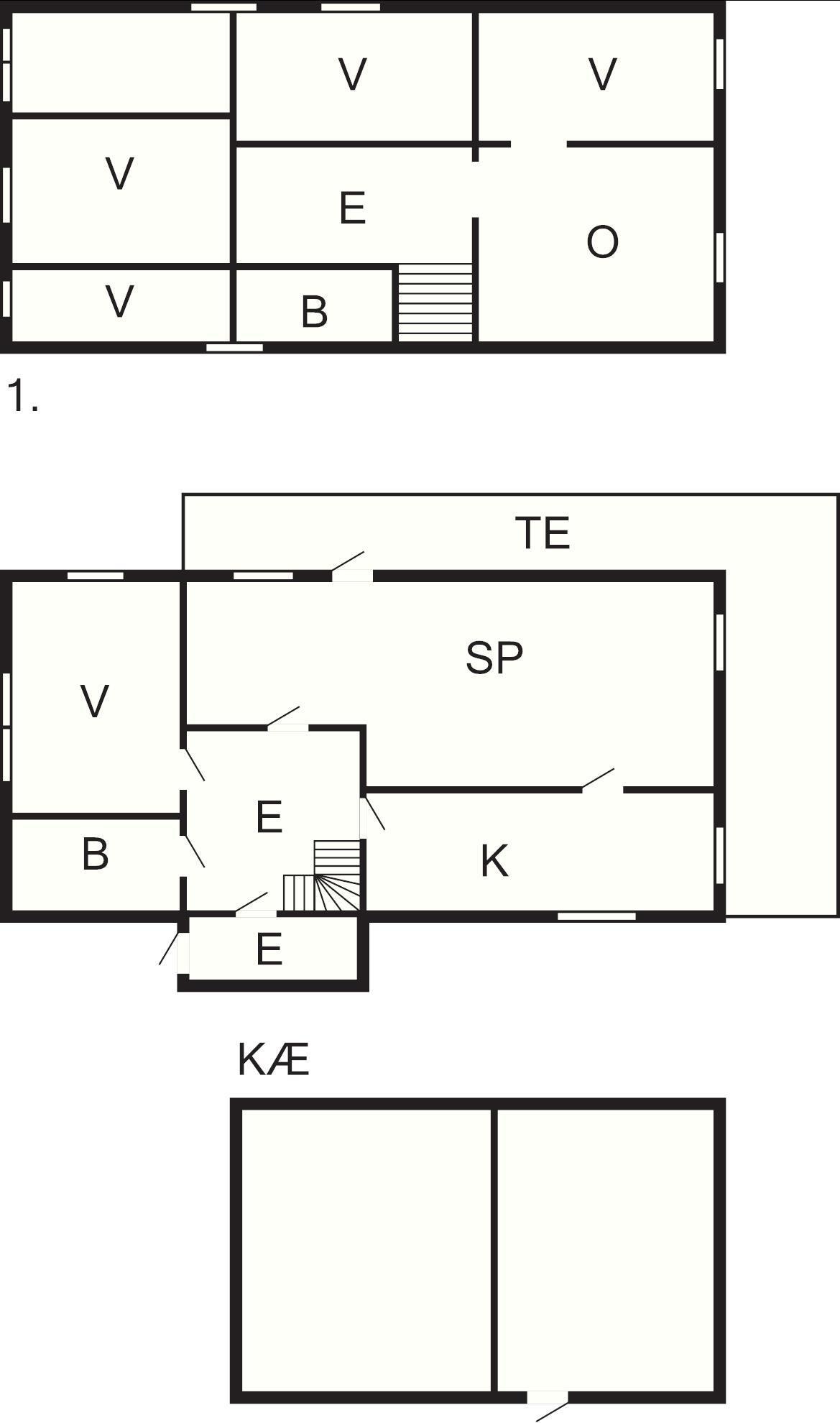 5 Soveværelser: (1DS)+(1DS)+(1DS)+(1S)+(2S)