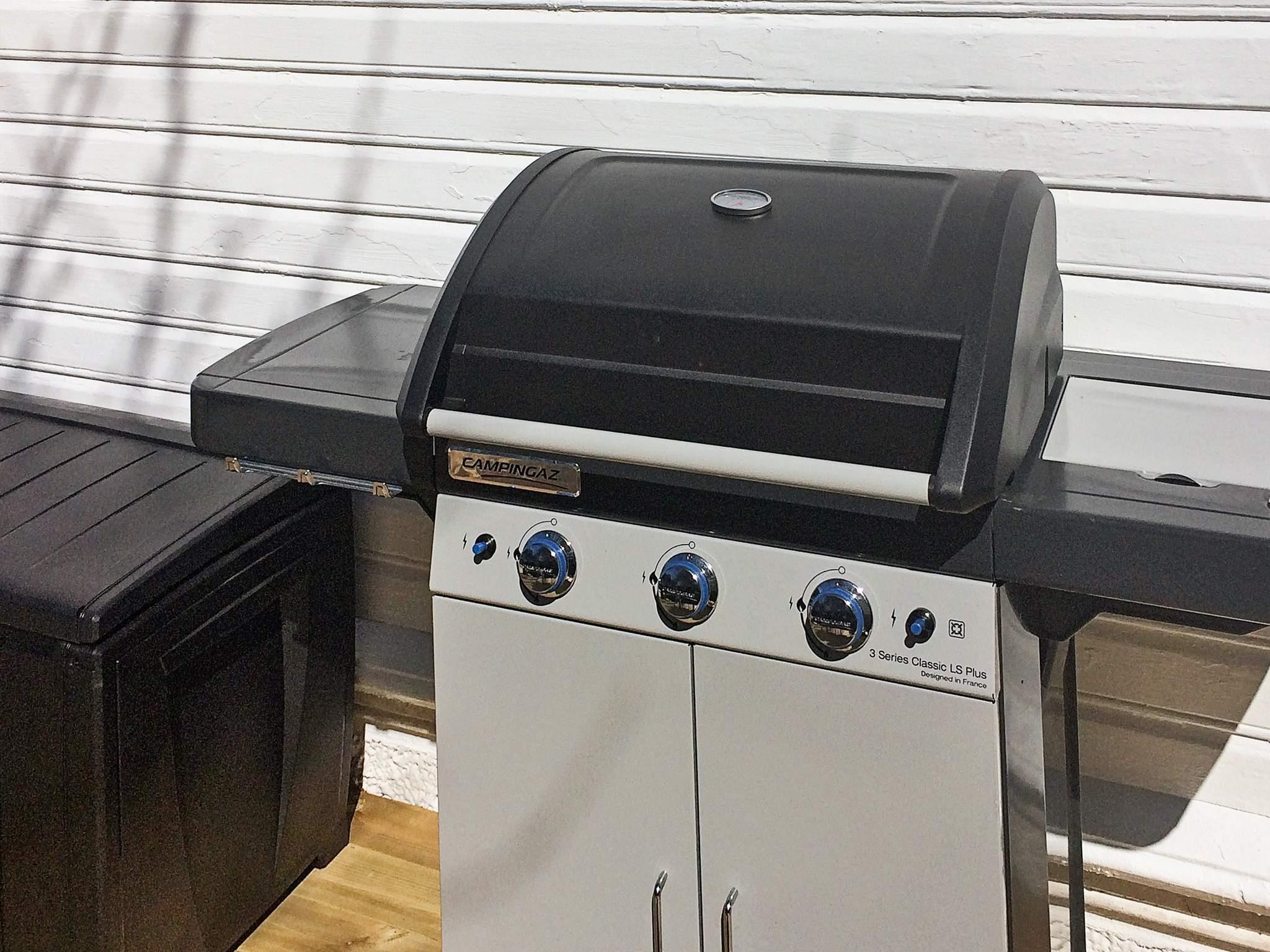 Feriehuset ligger idyllisk til ved fjorden på kupert naturtomt med en flott, rommelig terrasse på 200 m². Fantastisk utsikt over fjorden, skogkledte åser og holmer. Her kan du slappe av i solen eller tilberede dagens fangst på gassgrillen.