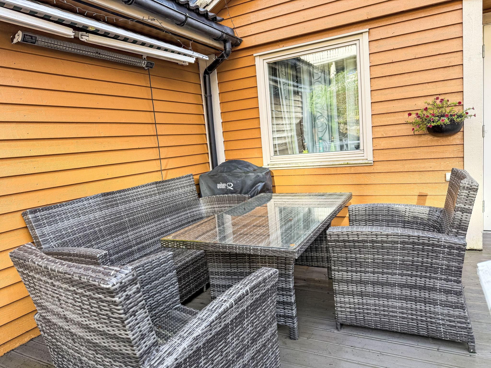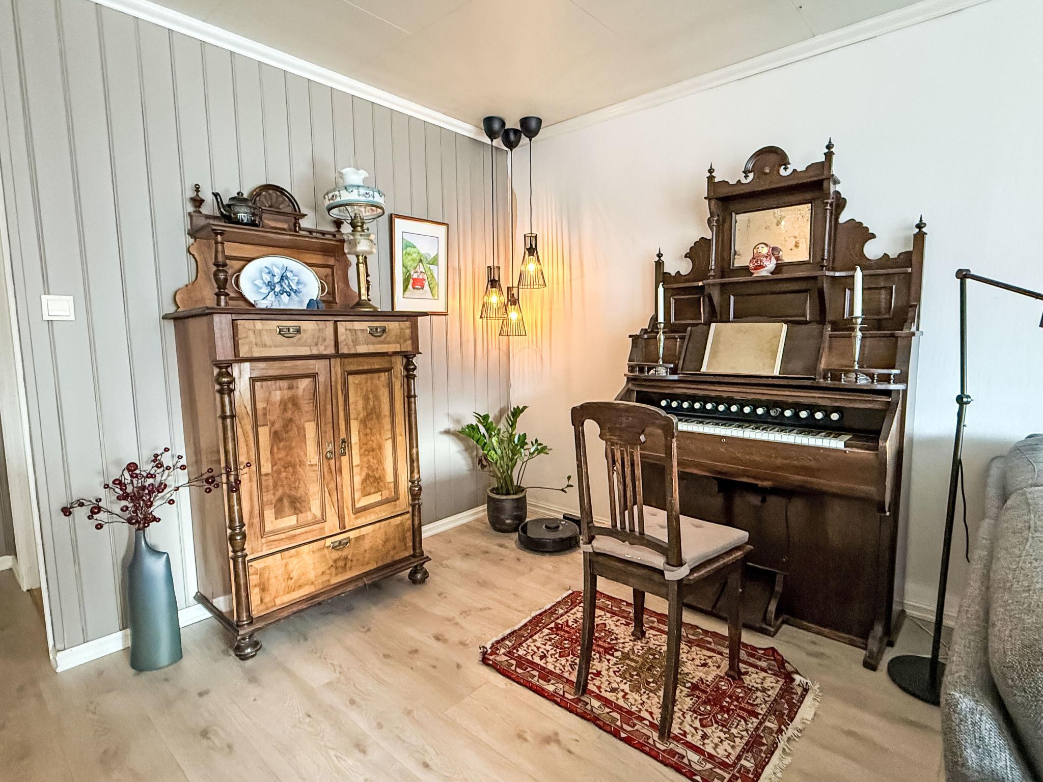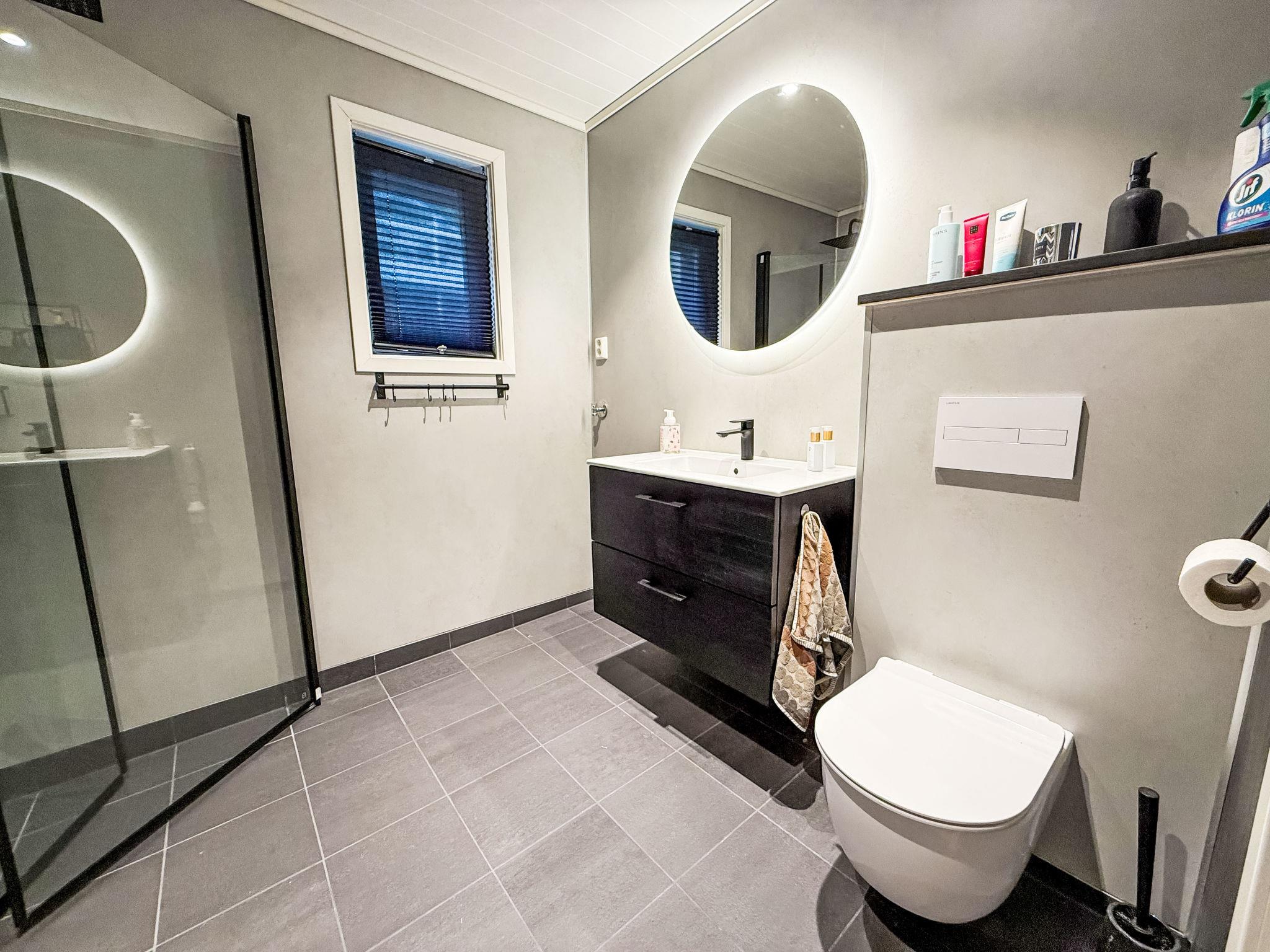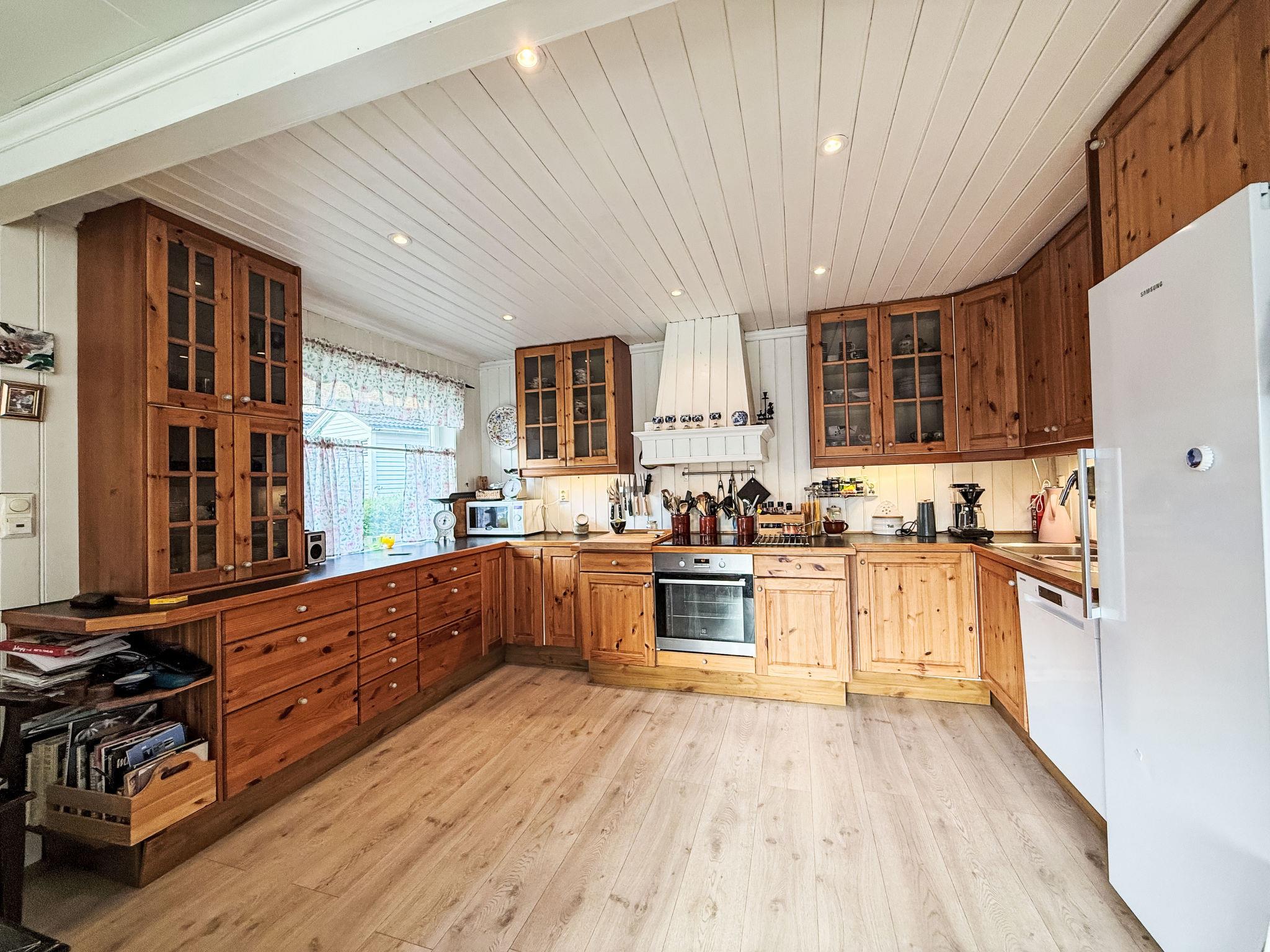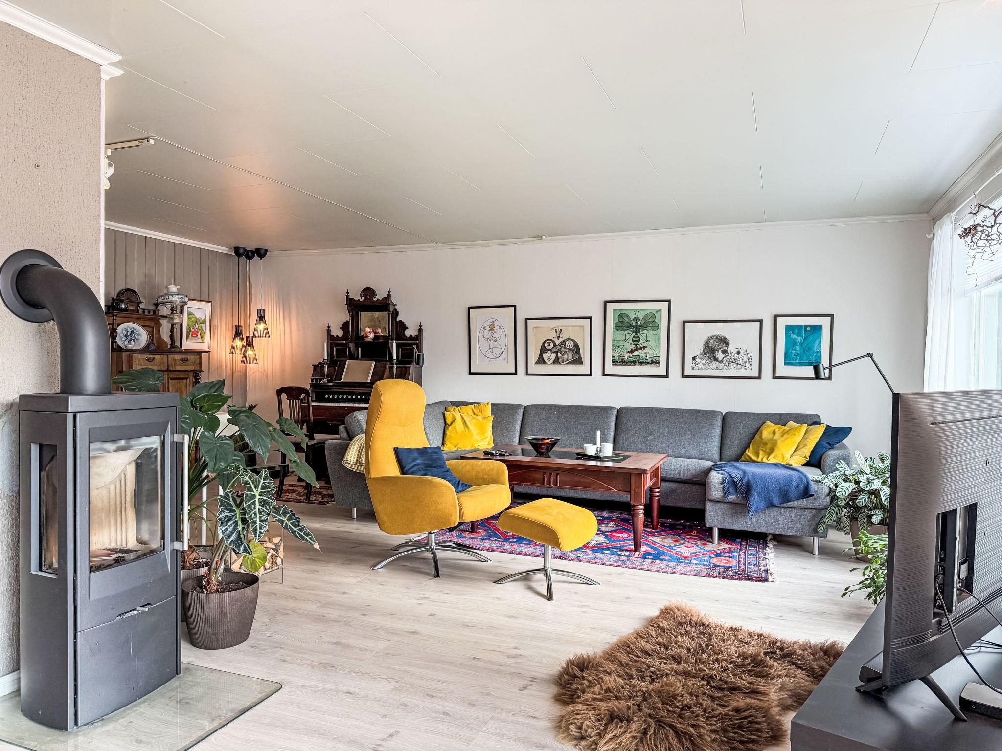 Beautiful, cosy semi-detached house "Høyanger Panorama", 2 storeys, built in 1980, renovated in 2021, surrounded by trees. 2 km from the centre of Høyanger, 35 km from the centre of Balestrand, 165 km from the centre of Bergen, in a quiet position on top of a hill, residential area (villas), traffic calmed area, 2 km from the sea, 2 km from the fijord. Private: small garden 40 m2, parking (for 2 cars) at the house, single garage. E-charging station. Grocery 2 km, supermarket 2 km, bus stop 2 km, sandy beach "Kvamsøy" 30 km, indoor swimming pool 1 km. Fishing possibilities 2 km. Please note: car recommended. Suitable for families.